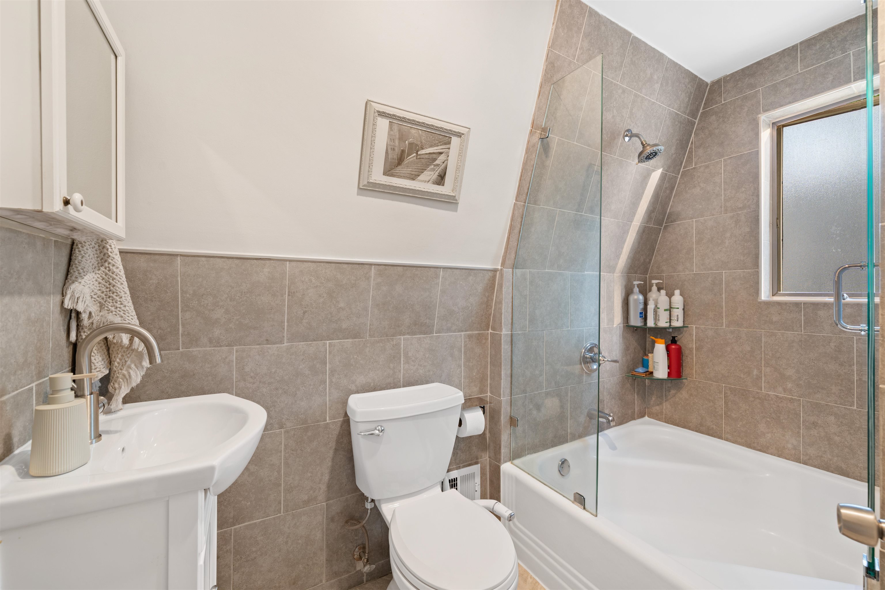 Welcome to this gorgeous one-family home, beautifully updated with attention to detail throughout! This move-in-ready gem features 3 bedrooms, 1 full bath, and 1 half bath. Enter through the charming sunroom into a warm and inviting space with beautiful hardwood floors and a seamless flow from the kitchen to the dining room. Sliding glass doors lead to the beautifully renovated maintenance-free yard featuring a brand-new patio and a storage shed, perfect for outdoor entertaining and extra storage. The second floor offers 3 bedrooms and a full bath, while the finished basement with a half bath provides additional living or recreational space. Driveway parking for one car. A perfect blend of charm, style, and modern updates—don’t miss this one!