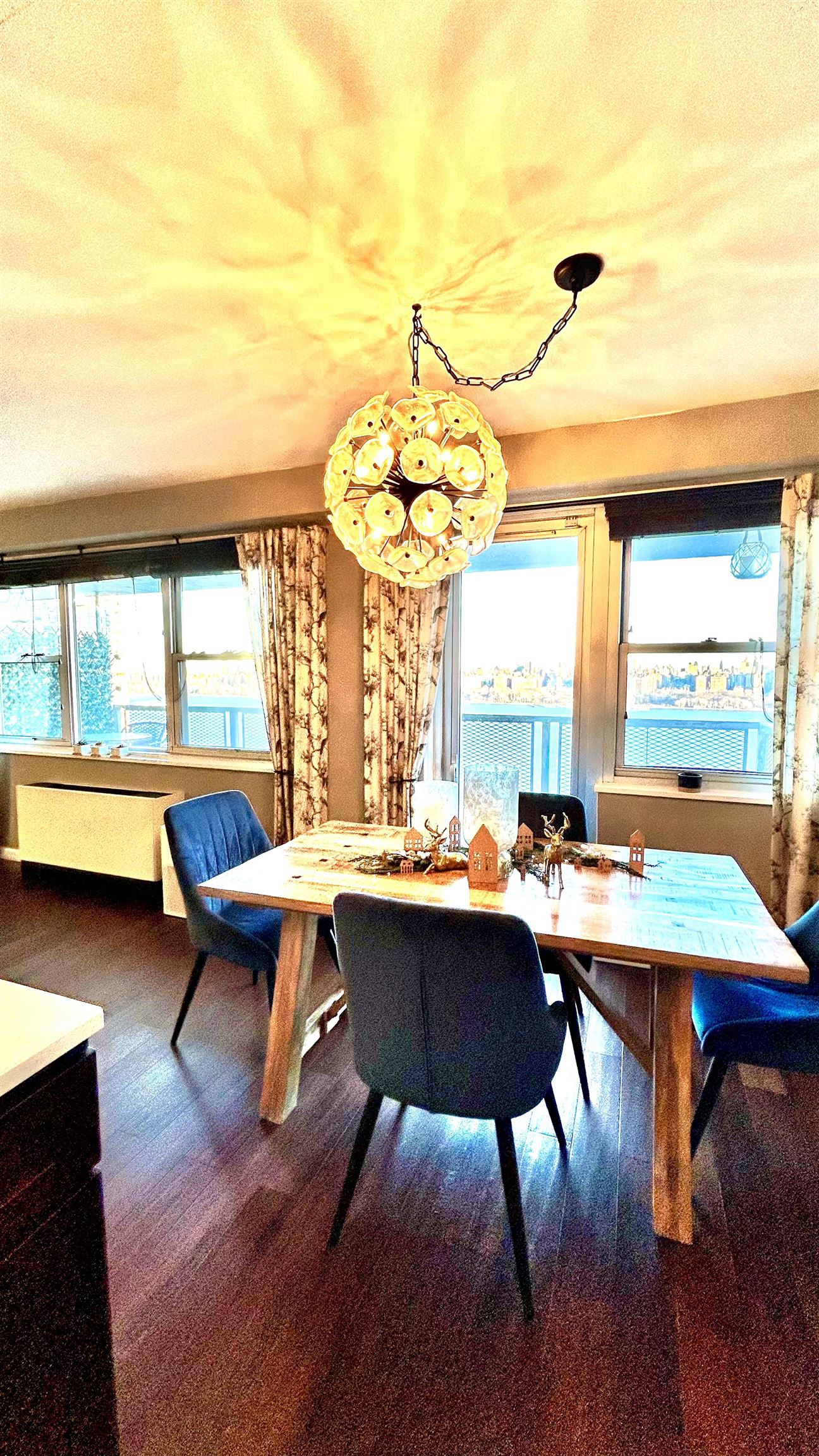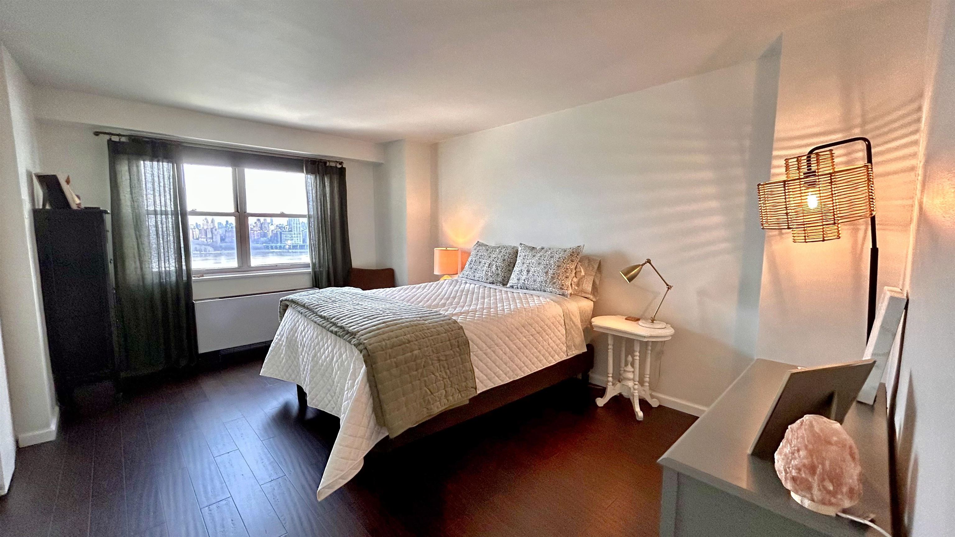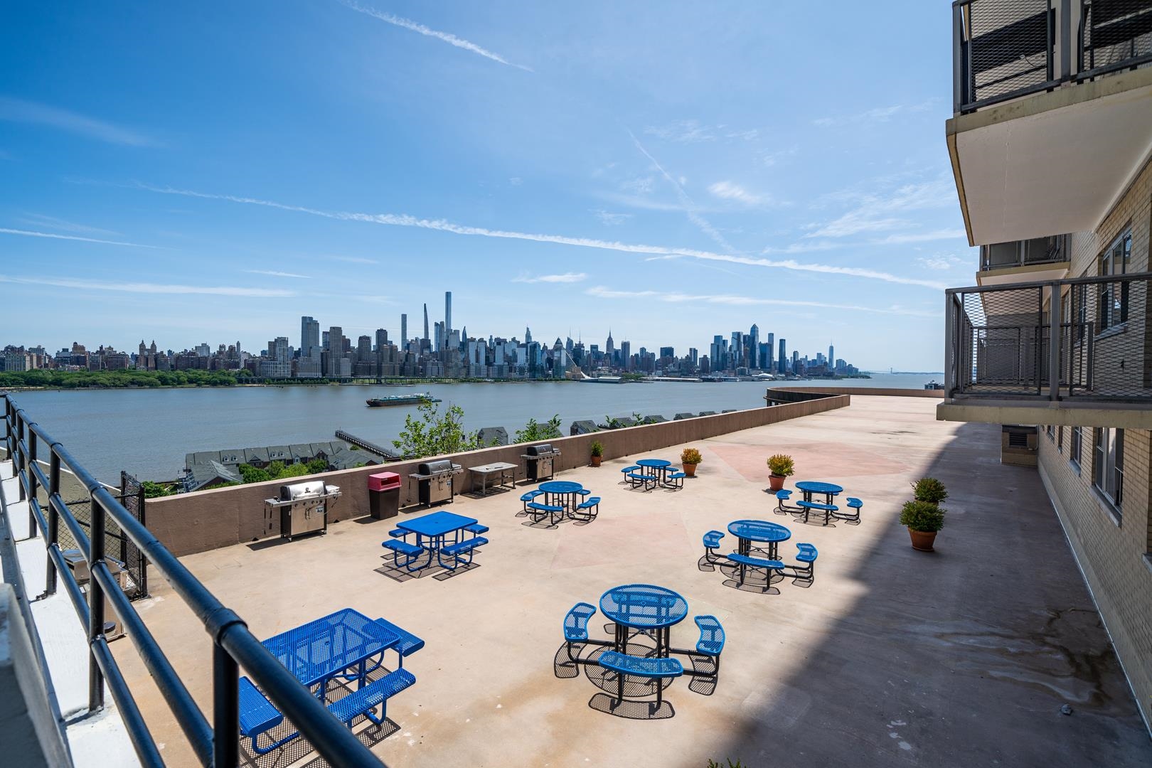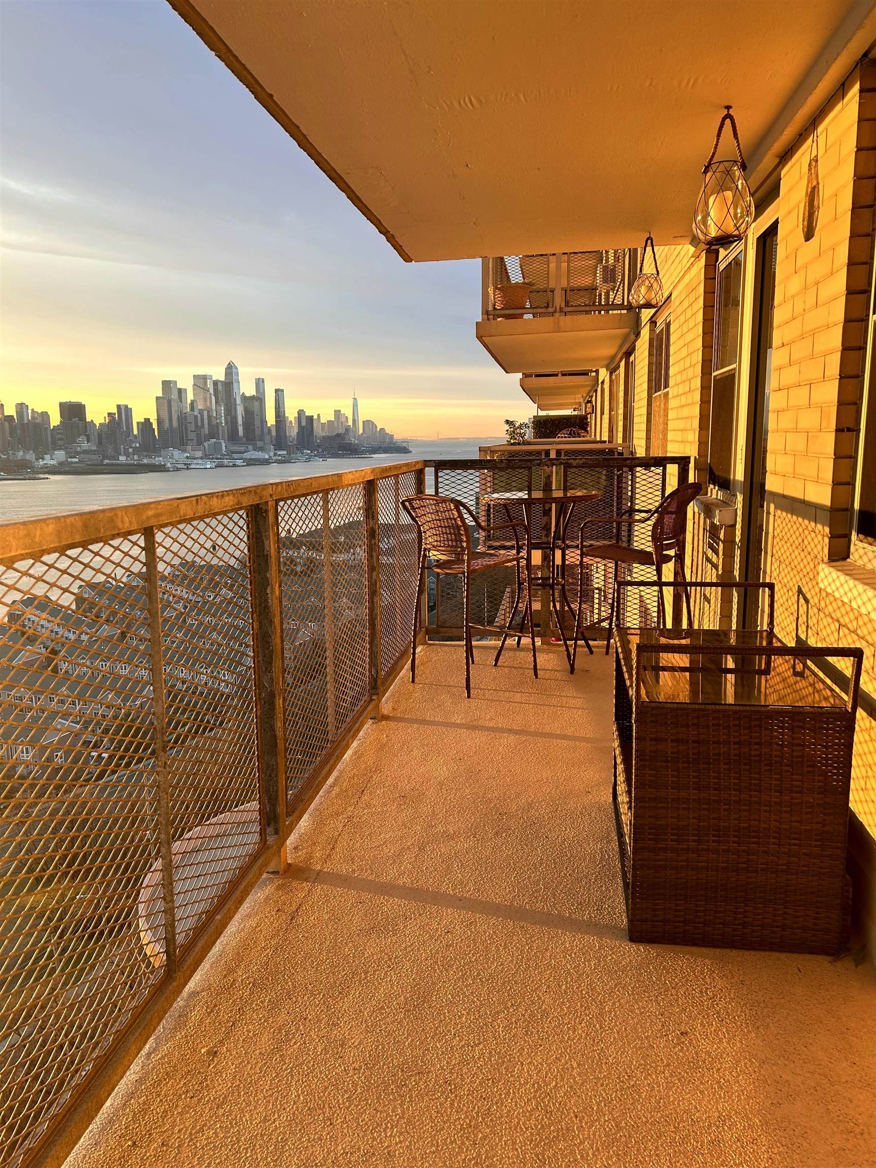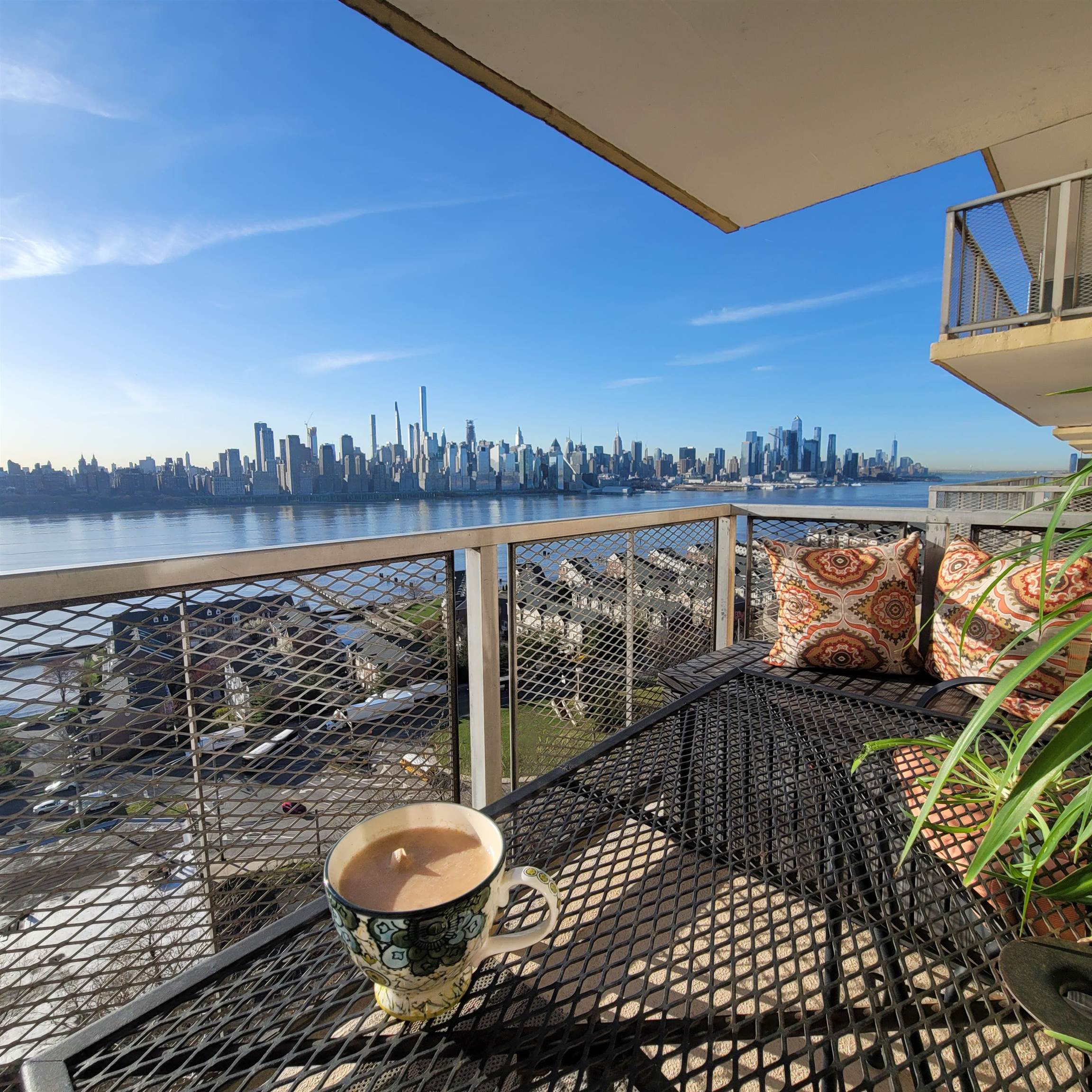 MOST DESIREABLE RENOVATED RIVERFRONT ONE BEDROOM WITH GORGEOUS HUDSON RIVER & NYC VIEWS FROM EVERY ROOM! LOW MAINTENANCE!!!! GORGEOUS SUNRISE, SOLID WOOD CABINETS, GRANITE COUNTER TOPS, SS APPLIANCES, FULLY RENOVATED, OPEN KITCHEN, CUSTOM CLOSETS. BALCONY DIVIDER IS ON NORTH ALLOWING FOR SWEEPING OPEN VIEWS OF NY & HUDSON RIVER LOCATED AT THE VERSAILLES, A FULL SERVICE BUILDING ON BOULEVARD EAST ON THE BANKS OF THE HUDSON RIVER. QUICK & EASY COMMUTE TO NYC, TRANSPORTATION AT YOUR DOORSTEP! HOA INCLUDES UTILITIES; TAX, ELECTRIC, WATER, HEAT, AIR & GAS AS WELL AS BUILDING UNDERLYING MORTGAGE, POOL, PROMENADE/BBQ AREA.