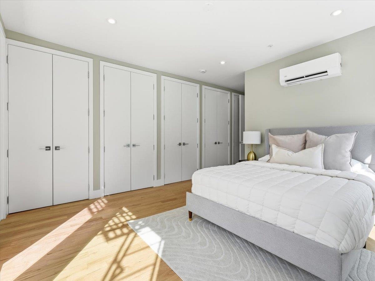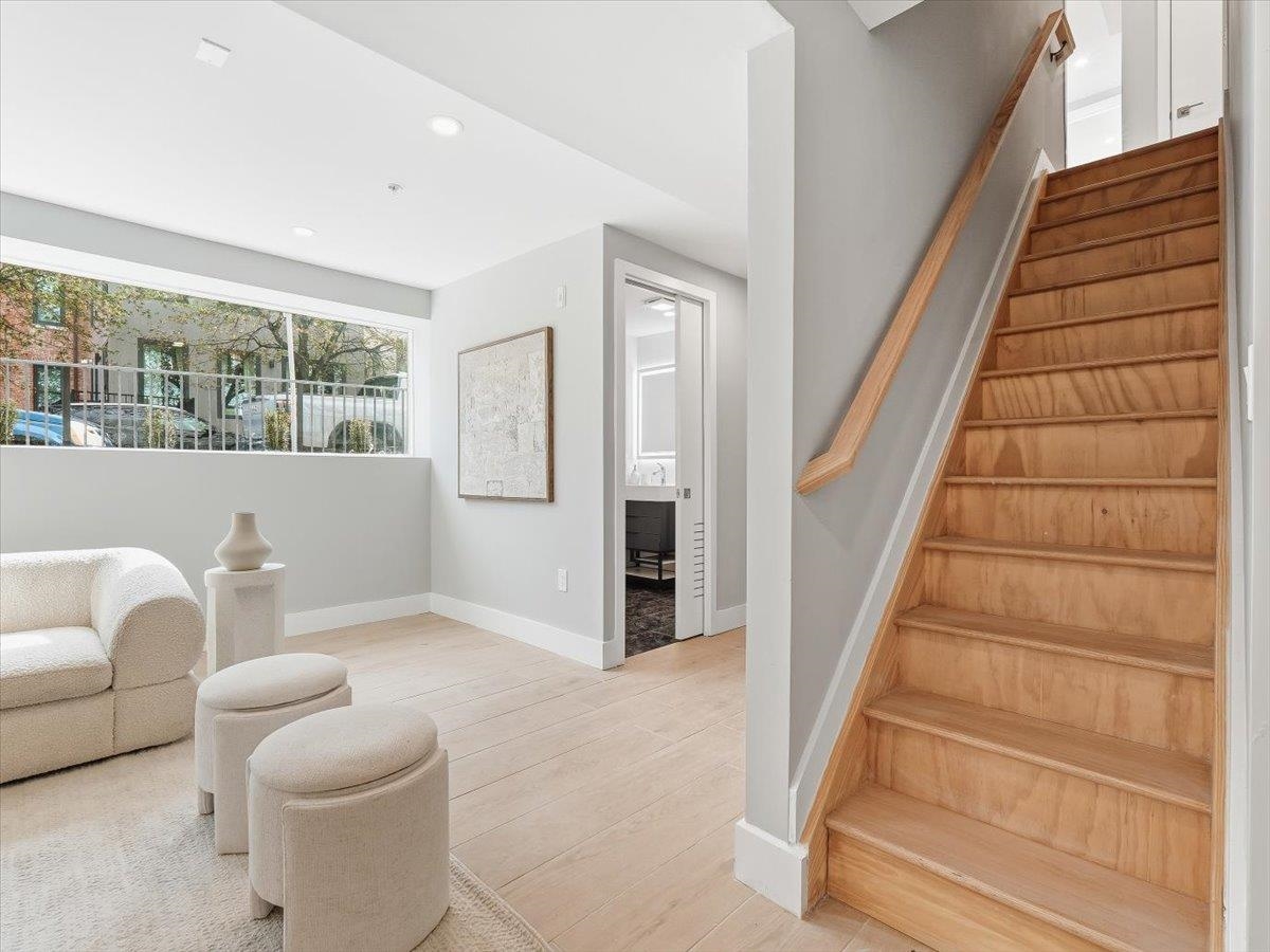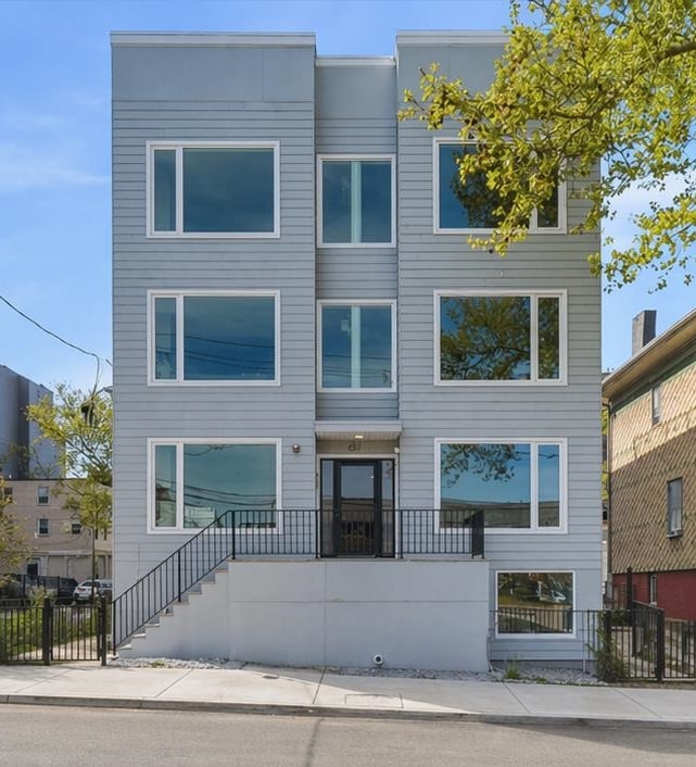Introducing a boutique collection of six beautifully finished residences set on one of Jersey City Heights’ most coveted tree-lined streets. These bright and airy homes echo urban-chic design with soaring 10 foot ceilings, spacious layouts and beautiful light oak hardwood floors throughout. Offering 2-bedroom layouts, each home offers unique extras, from the two-story floorplan on the ground floor, to the NYC skyline views available from the top floor, including the panoramic private rooftop. A beautiful private backyard & 4 parking spaces are also available at an additional cost. Blending fresh finishes with bold contrast, the interiors strike a polished balance between modern edge and everyday ease, setting the stage for thoughtfully designed living. Kitchens pair deep blue lower custom cabinetry with crisp white uppers carried to the ceiling, accented with bright quartz counters, tile backsplash, Bosch stainless steel appliances and warm brass fixtures. Living rooms offer excellent light with oversized windows, plus select units offering stunning glass-and-wire stairwells. Bedrooms boast plenty of closet space, with up to 5 closets in the primary ensuite. Bathrooms echo the bold design with floor-to-ceiling tile, herringbone floors, smart mirrors, rainhead showers, and striking high-contrast design. Perfectly positioned just 1 block to the 9th Street Elevator and Light Rail, as well as Washington Park with farmers markets, sports facilities, playgrounds, and community events, this address brings a balance between urban access and community living. Also mere moments from Riverview-Fisk Park with iconic skyline views, this Jersey City Heights jewel is just another reason this neighborhood has become the one to watch on this side of the Hudson.