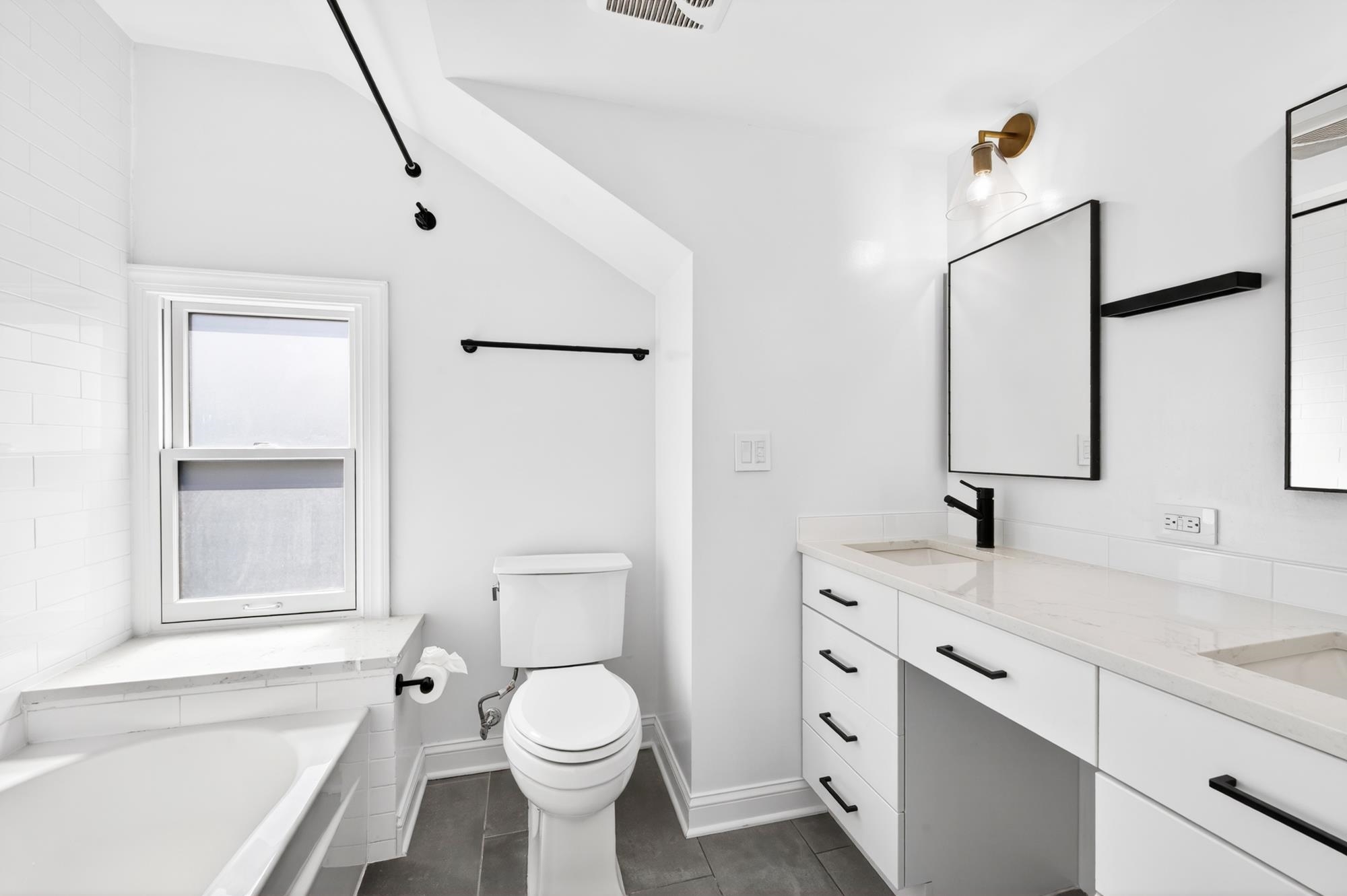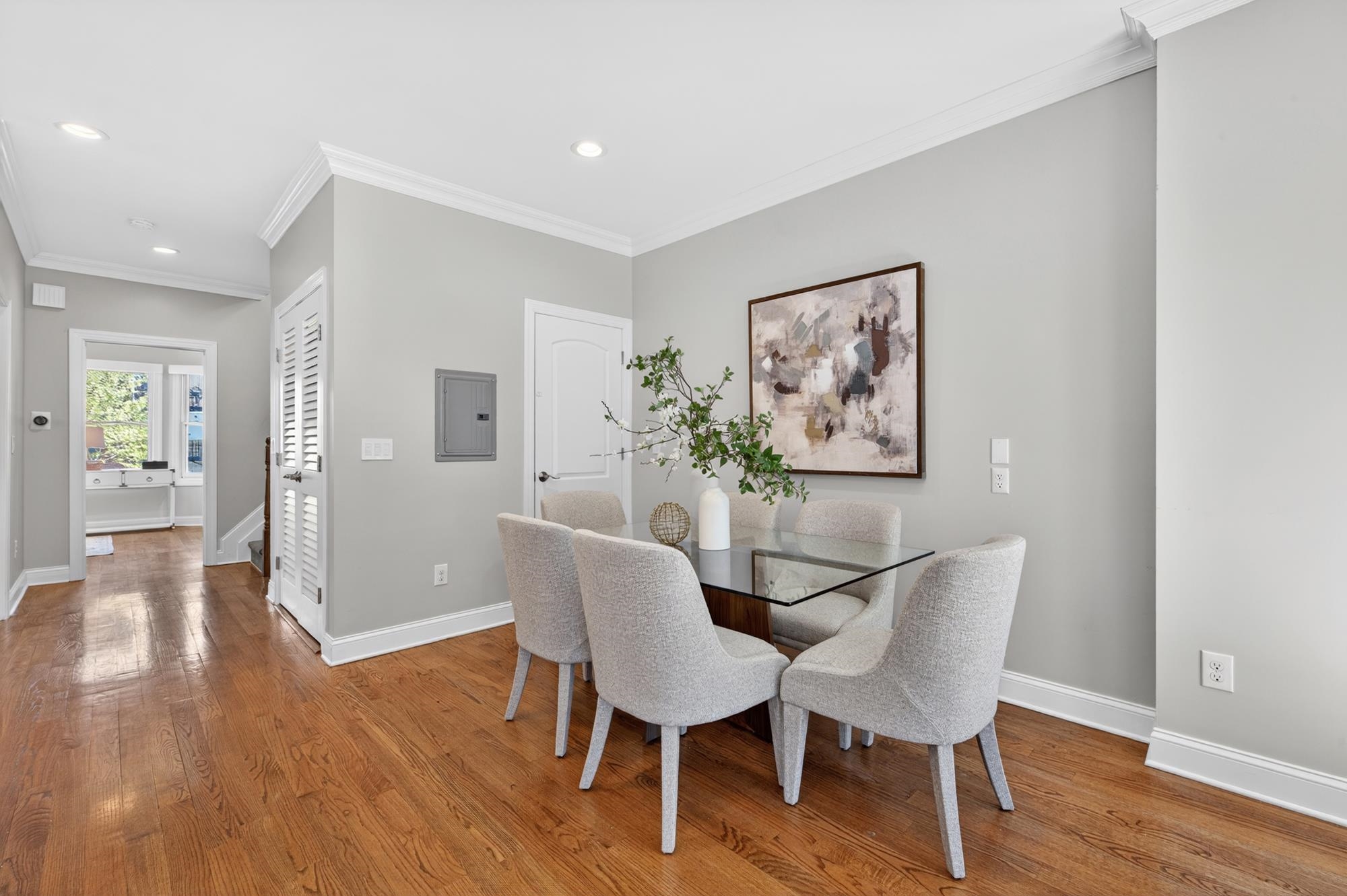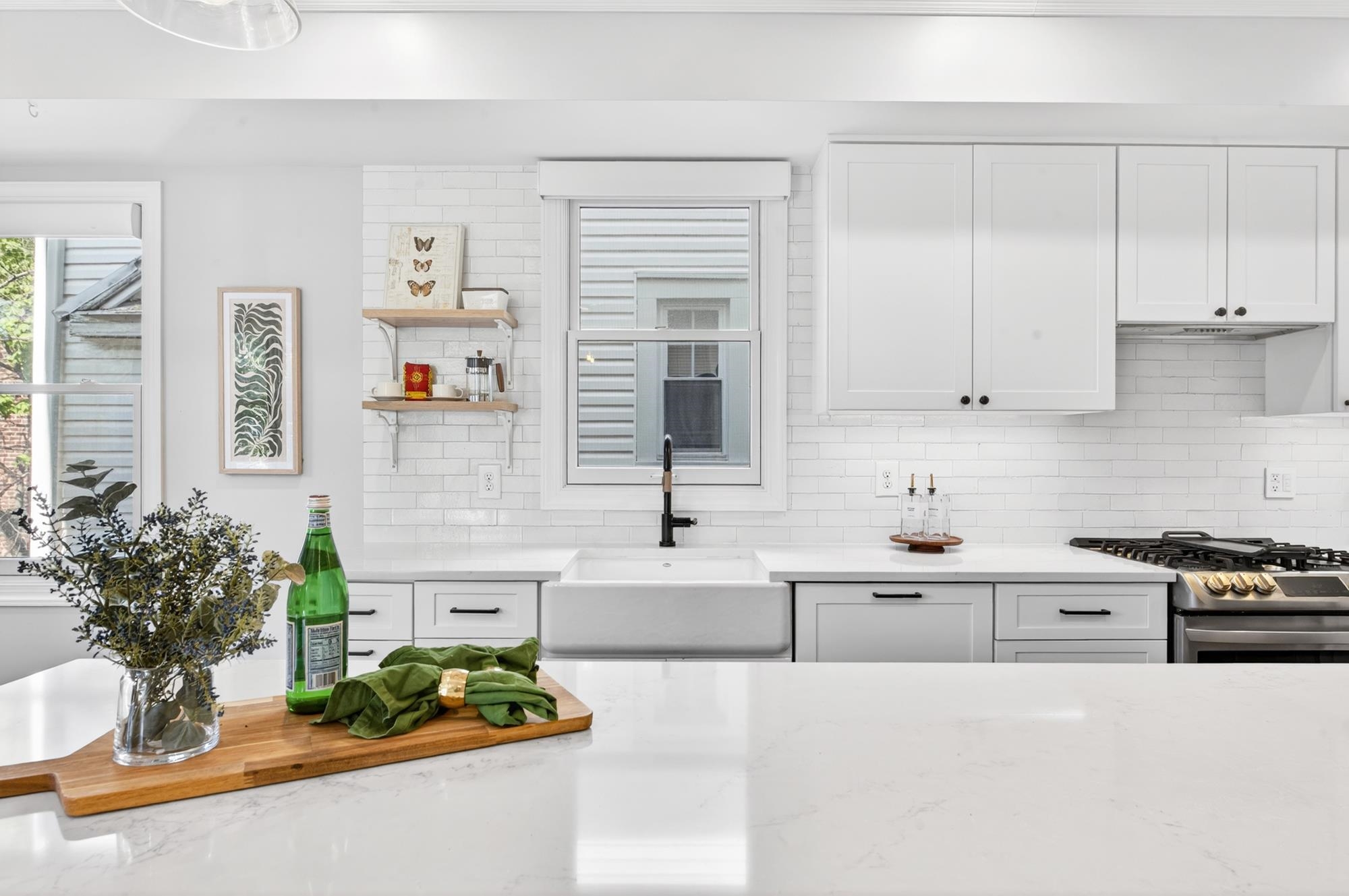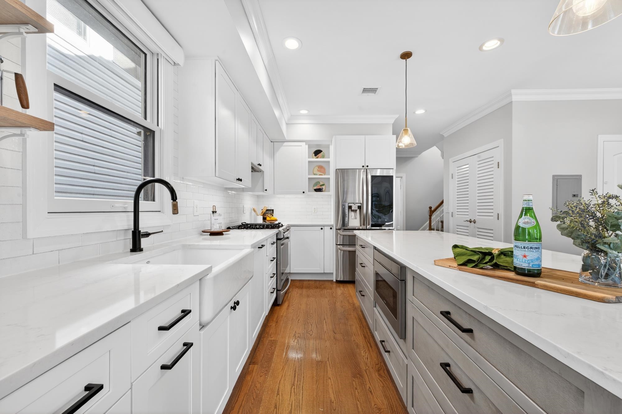 Stunning, recently renovated 3 bedroom duplex condo near Lincoln Park offering an expansive living space, with 1430+ square feet, three spacious bedrooms, two full bathrooms, and a bonus study. This home is a tasteful blend of modern renovations combined with original details, such as the restored facade, striking stained glass windows, blue stone pavers and columns. The kitchen is equipped with stainless steel appliances, a spacious island, custom cabinetry, quartz countertops, and touch-activated sink faucet, and is open to the living / dining area, framed by windows on three sides. The lavish primary suite, with views of trees on three sides, includes an en-suite bathroom and walk in closet. This sunny home has central air & heat, 9ft ceilings, four exposures, in-unit washer & dryer, hardwood floors, ample storage and is fully smart-home enabled. Situated in the coveted Lincoln Park section of Journal Square, with its 21 tennis courts, 9-hole golf course, historic fountain, sports fields, playgrounds, farmer's market, and summer concerts. Convenient access to public transportation/PATH, schools, and shopping, makes this condominium a rare gem in a highly sought-after location.