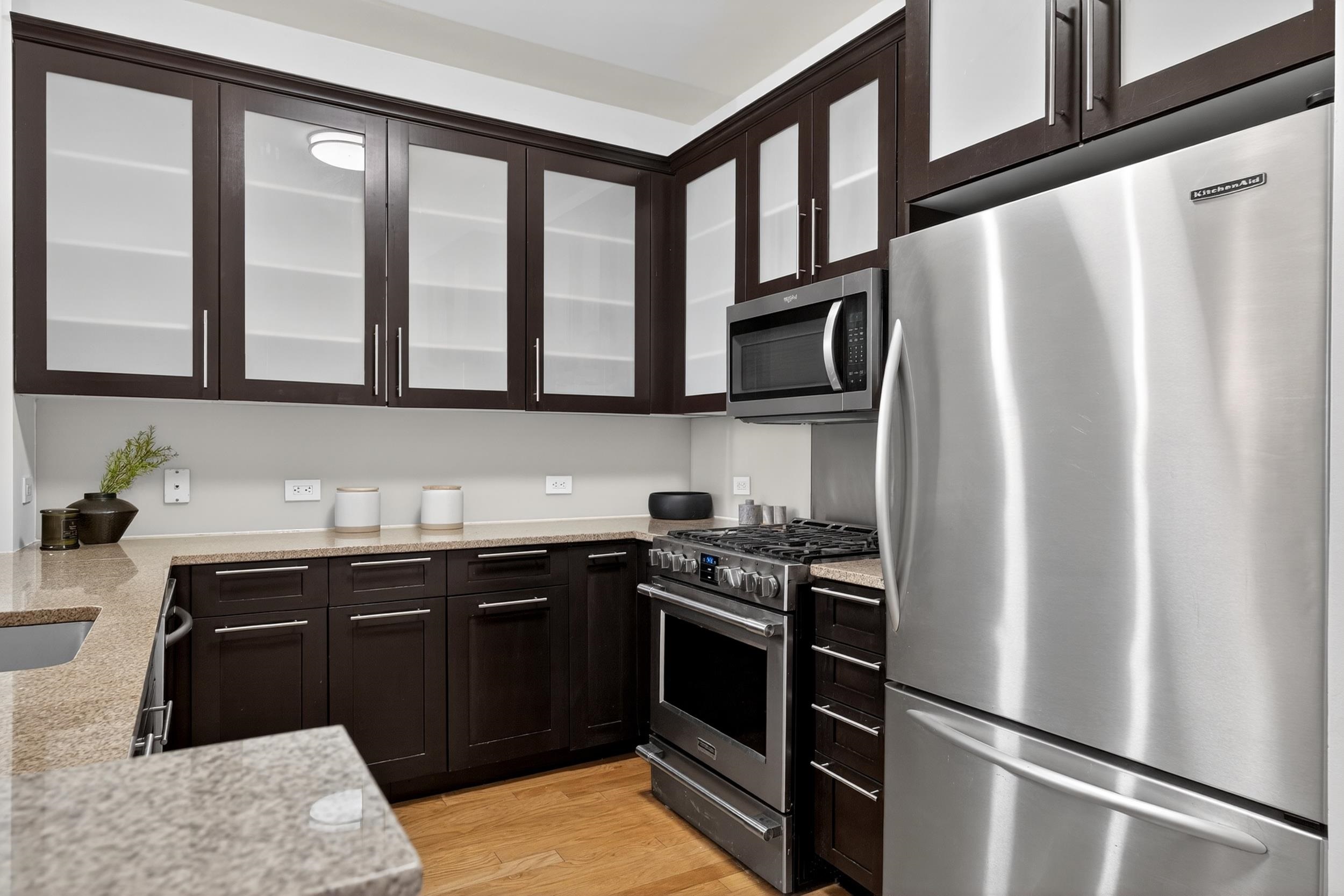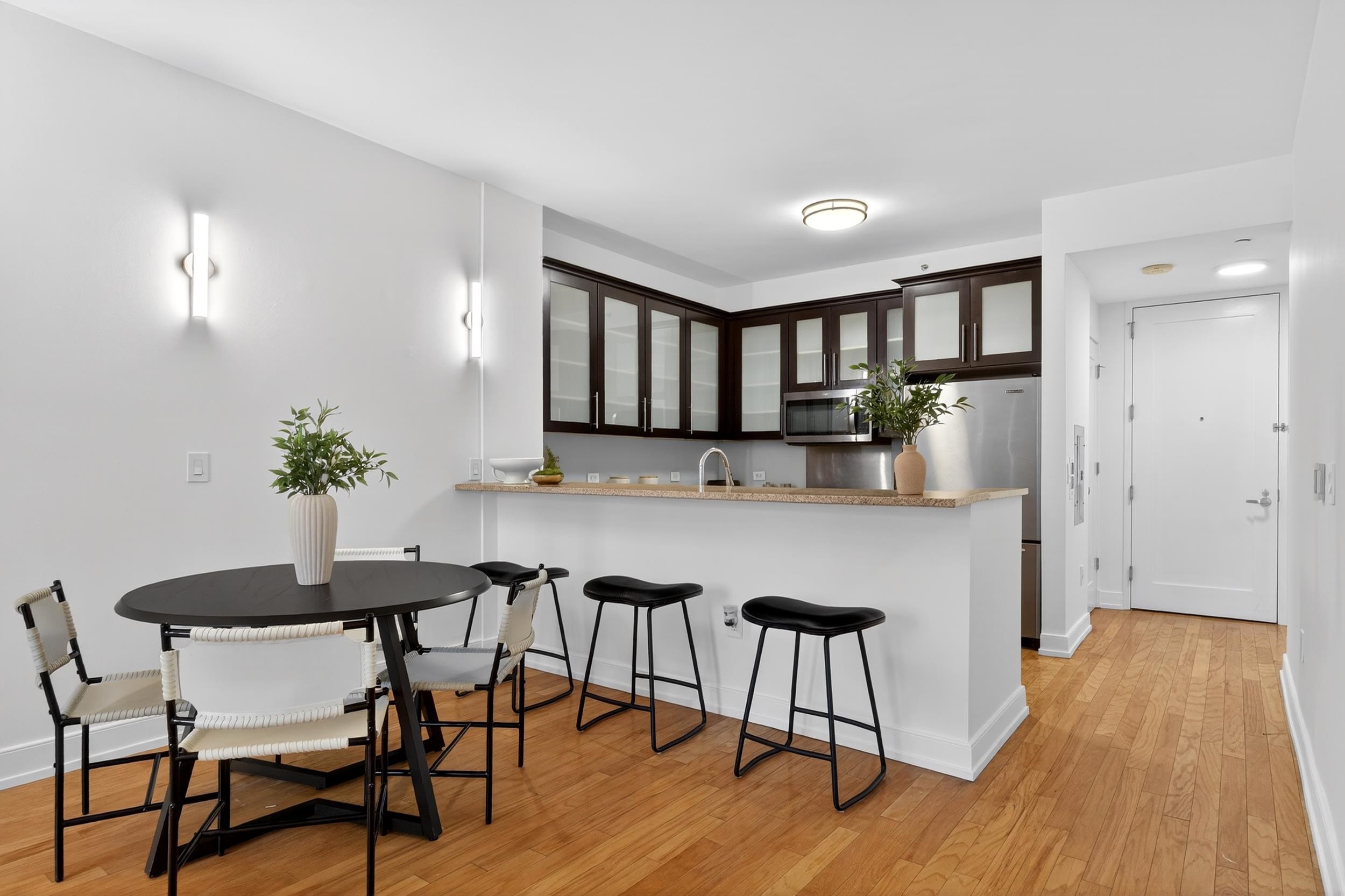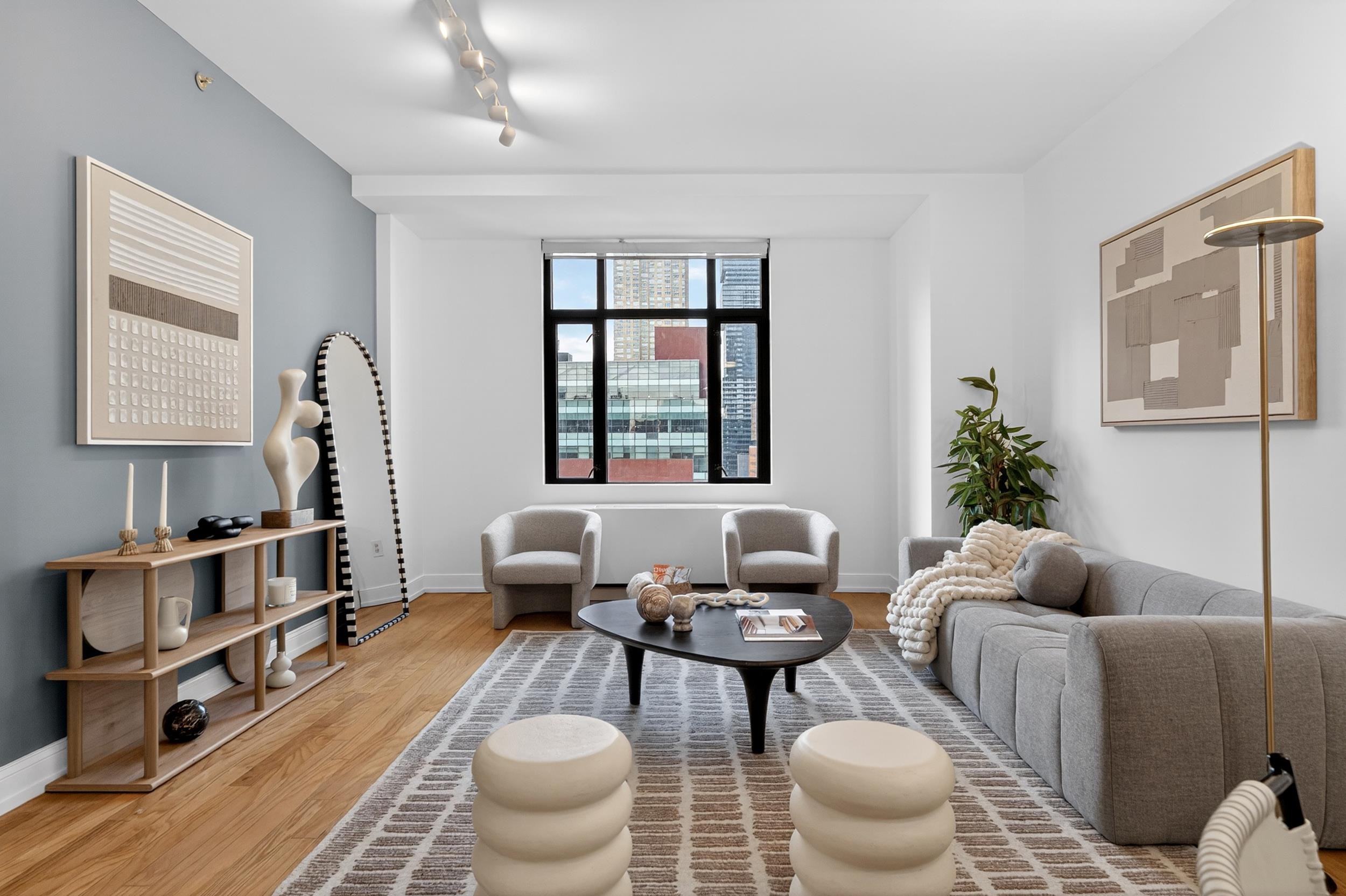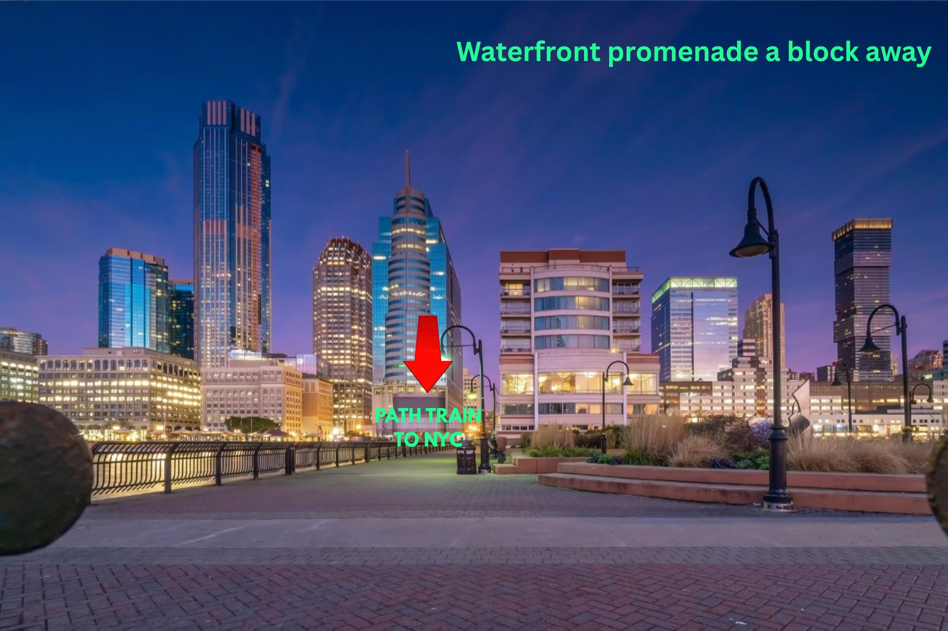 4 minutes train ride Manhattan. One block to the PATH. Hard to beat. Live where getting into NYC is faster than deciding what to wear. From this perfectly positioned Paulus Hook address, the Exchange Place PATH is just one block away, with the ferry two blocks away—giving you multiple effortless options into NYC. Craving skyline views? You’re a block from the waterfront promenade with a full, breathtaking sweep of iconic NYC landmarks—and the building’s rooftop terrace delivers the same wow factor, day or night. Inside, this rarely available 912 sq ft one-bedroom stands out immediately. The wide layout easily accommodates separate living and dining areas, plus flexible space for a home office (or two, if needed). The oversized kitchen is built for people who actually cook—not just reheat—while the apartment itself is filled with natural light from an expansive window with open sky and Jersey City skyline views. Additional highlights include high ceilings, a king-sized bedroom, a massive walk-in closet off the foyer, double vanity, and a deep soaking tub. The full-service Montgomery Greene offers a 24-hour concierge, fitness center, bike storage, and a standout rooftop sky terrace complete with outdoor kitchen, BBQ stations, wet bar, cabanas, and outdoor shower—all set against sweeping Manhattan and Hudson River views. Monthly HOA includes heat, hot water, cold water, and gas—keeping utility costs and noise refreshingly low in this reinforced concrete building. On-site garage parking and private storage are available for an additional fee. Location-wise, it doesn’t get more convenient: Whole Foods is two blocks away, the Light Rail is one block away, and you’re surrounded by some of Jersey City’s best dining including DomoDomo, Porto Leggero, Maman, Satis Bistro, Edward’s steak house, The Lighthorse Tavern and many others. Whether you’re looking for an easy commute, high-quality place to live or a smart investment in one of Jersey City’s most sought-after waterfront neighborhoods, this checks every box.