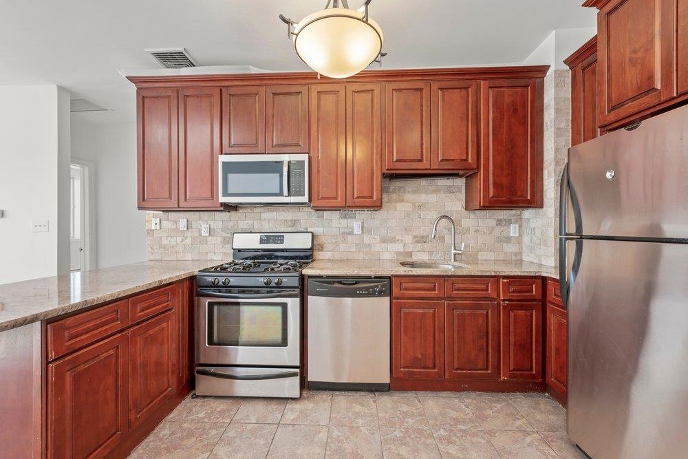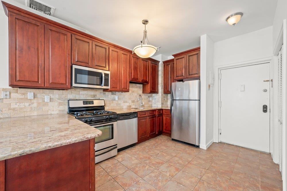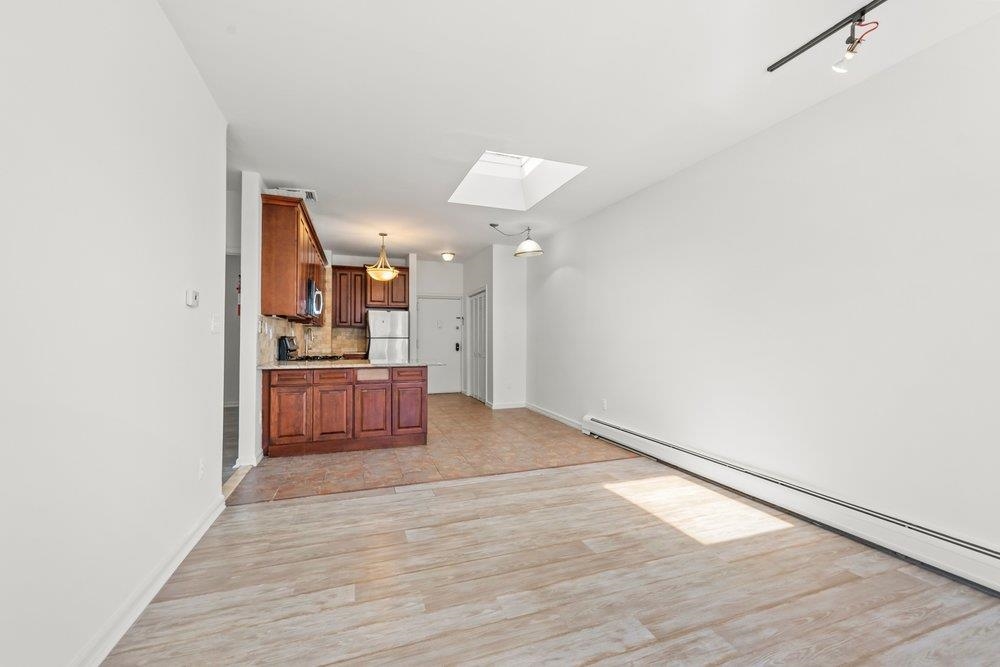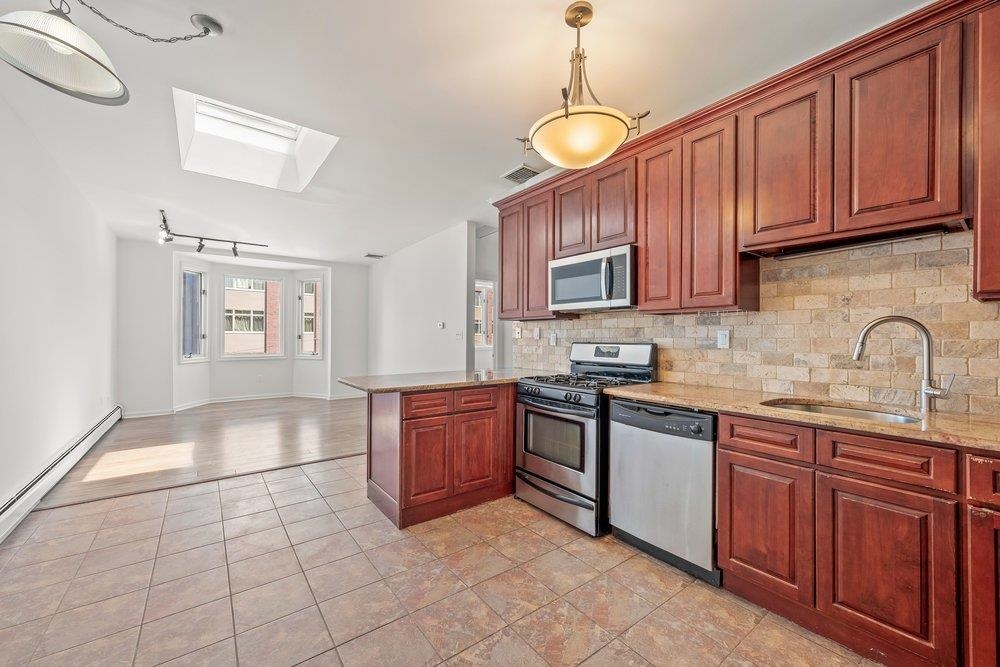 Ideally situated in the vibrant heart of Historic Downtown Jersey City, Unit C10 represents the most compelling value proposition currently available in the local market. This meticulously maintained two-bedroom, two-bathroom residence offers a rare refuge from rising costs, boasting the lowest combined HOA and tax profile in the neighborhood while benefiting from significant recent updates. The home’s mechanical integrity is exceptional, featuring a high-efficiency AC heating boiler replaced in 2024 with a 10-year warranty, a new hot water heater from 2023, and a brand-new microwave added in 2026. The interior architecture is defined by a south-facing orientation that invites consistent natural light throughout the day, accentuating the durability of the hardwood and natural stone flooring. The heart of the home is a super-efficient U-shaped kitchen, thoughtfully designed with solid hardwood cabinetry and granite countertops to maximize both form and function. While the floor plan is technically optimized, the intelligent layout and soaring ceilings create a sense of volume and scale that feels significantly larger than its deeded square footage suggests. This airy atmosphere is further enhanced by a signature skylight and oversized bay windows that frame the historic surroundings. Practicality is a hallmark of this property, with abundant in-unit storage and the highly coveted inclusion of private, on-site parking—a premium asset in this high-demand district. Beyond the front door, the building provides a functional suite of amenities, including elevator access and a communal rooftop deck that serves as an urban oasis for unwinding above the city. The location is an absolute commuter’s dream, positioned just an eight-minute stroll from the Grove Street PATH and within steps of Newark Avenue’s "Restaurant Row" and the serene greenery of Van Vorst Park. Whether viewed as a solid starter home or a strategic investment, this residence offers an unparalleled entry point into Jersey City’s most sought-after neighborhood with the security of modern, updated systems.