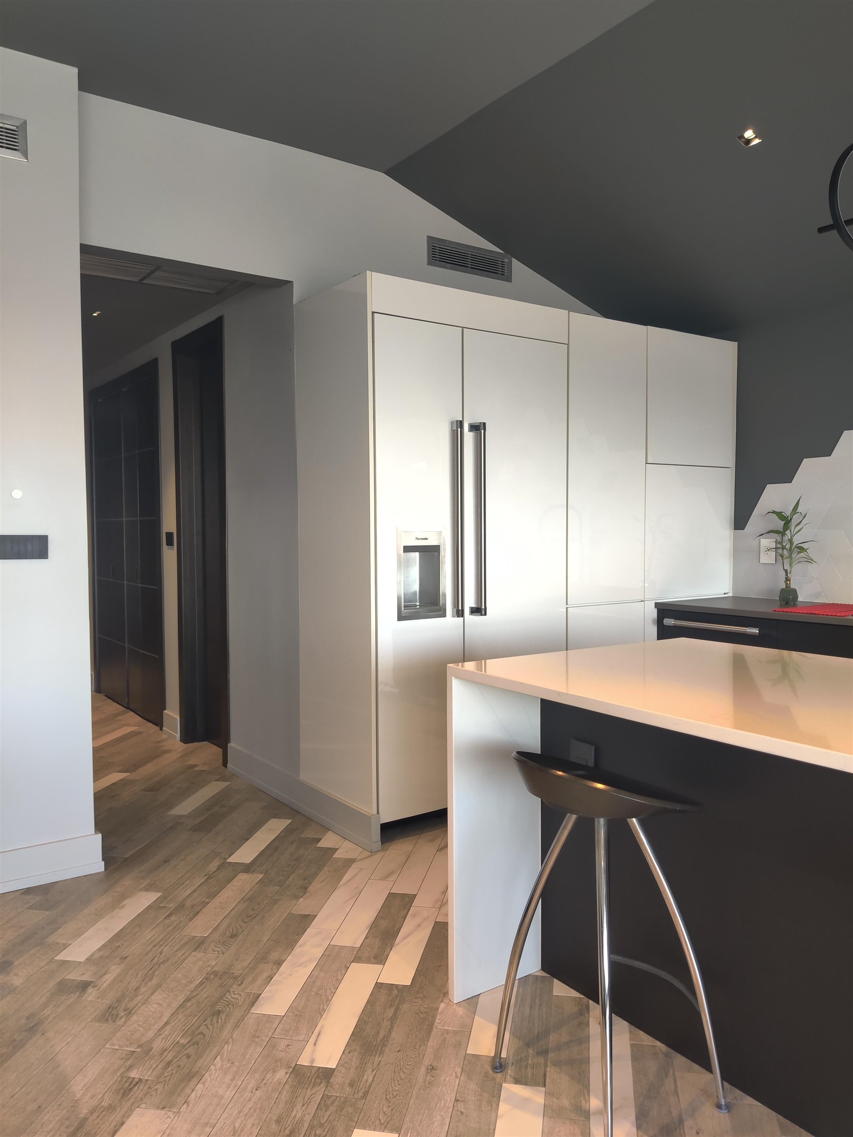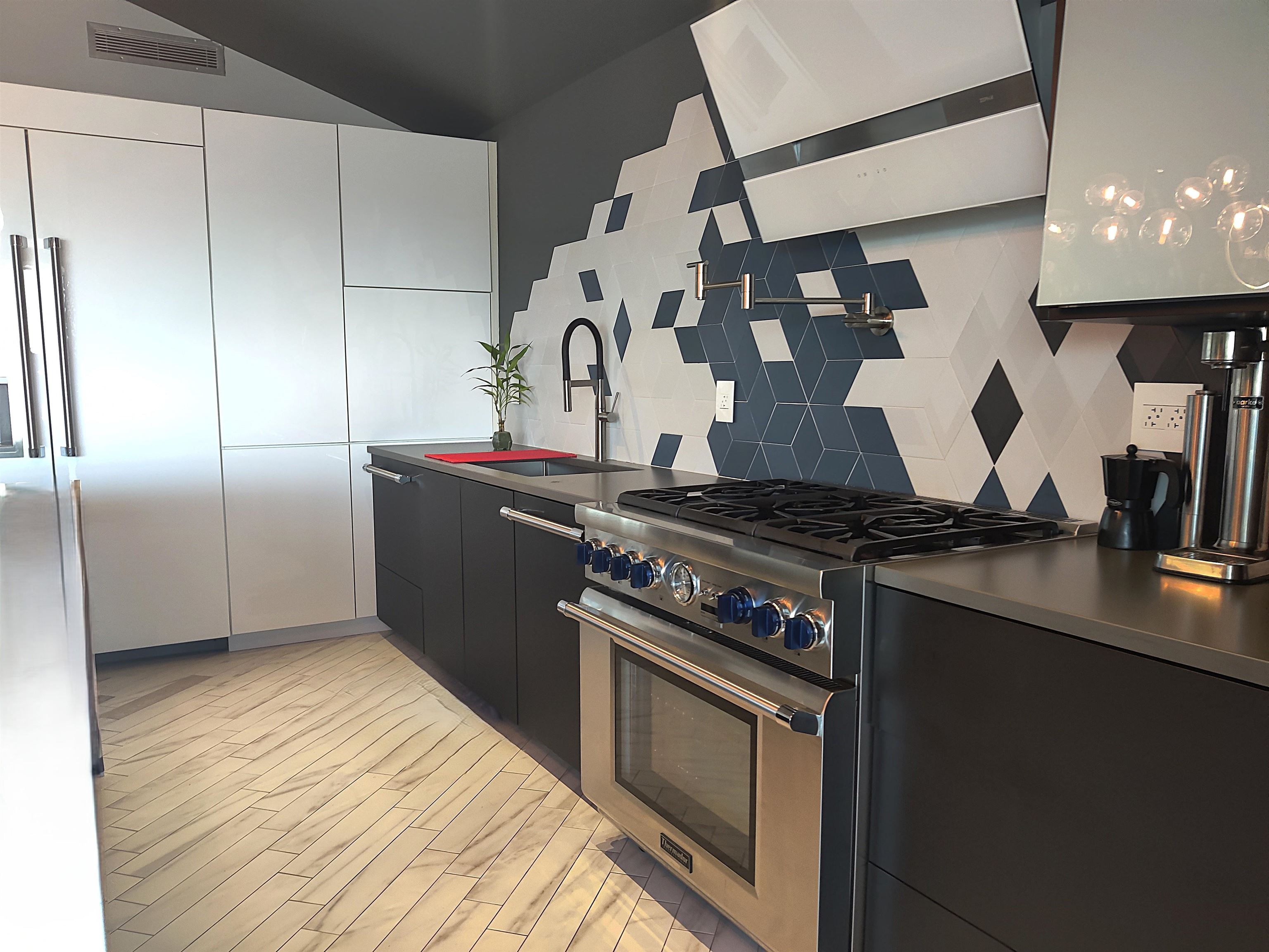 A rare penthouse residence with DIRECT PRIVATE ELEVATOR entry or staircase access and unobstructed NYC skyline views designed for buyers who expect exceptional detail and elevated living. Welcome to The PENTHOUSE at 344 Paterson Plank Road, in the heart of Jersey City Heights. Spanning approximately 1,528 square feet, this top floor home offers 3 bedrooms, a den, and 2 full bathrooms with a standout blend of custom craftsmanship, modern design, everyday comfort, and enhanced privacy. Flooded with natural light, the expansive open concept living, dining, and kitchen area is designed for both effortless entertaining and comfortable daily living. The layout feels bright, open, and sophisticated, with dramatic skyline views creating a stunning backdrop. Custom ordered European fixtures and finishes define the interior, while Spanish porcelain tile flooring, radiant underfloor heating with individual room thermostats, and sound attenuated walls create a home that feels both luxurious and serene. Smart Wi-Fi enabled controls add convenience and efficiency. The chef’s kitchen is a true showpiece, featuring premium Thermador appliances, including a Pro Grand 6 burner gas range, 2 dishwashers, custom German cabinetry with Fenix finishes, and push to open cabinets throughout, including the integrated refrigerator, all with soft close features. Sleek, functional, and beautifully executed, this space was built to impress. The primary suite offers a refined private retreat with a walk-in closet and a beautifully finished ensuite bath. Both bathrooms feature large format tile, floor channel drains, heated towel rails, and exceptional fixtures. Private elevator access directly into the unit adds a true sense of exclusivity. Additional highlights include iGuzzini low voltage LED lighting throughout, custom Italian millwork and doors, recessed hinges, imported hardware, custom two-piece baseboard molding, a 2-zone Carrier Infinity HVAC system, Zephyr exhaust fan, SimpliSafe alarm system, and a Navien combi water heater. Set in one of Jersey City Heights’ most sought-after areas, this exceptional home is steps from the Congress Street Light Rail and bus service to NYC, with quick access to Hoboken, Downtown Jersey City, the Lincoln Tunnel, neighborhood parks, cafés, restaurants, and fitness studios. Don’t miss this rare opportunity to own a one-of-a-kind penthouse that delivers design, privacy, views, and location in one remarkable residence!