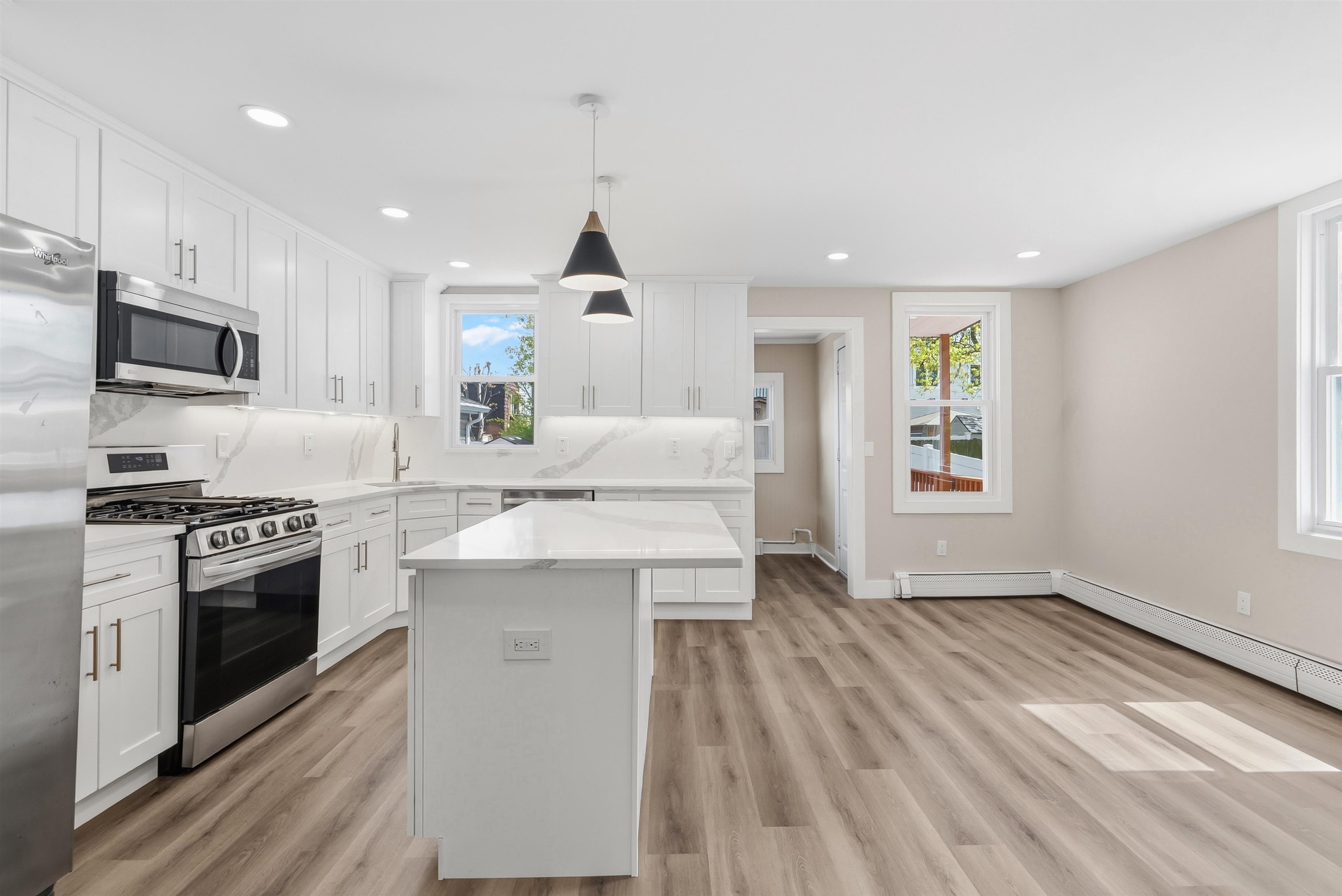 Welcome to this beautifully renovated 4 bedroom, 2 bathroom home in desirable Secaucus. This property offers a modern open-concept layout seamlessly connecting the kitchen, dining, and living areas perfect for both everyday living and entertaining. The updated kitchen features sleek finishes and flows effortlessly into the main living space, creating a bright and inviting atmosphere. Upstairs, you’ll find three generously sized bedrooms offering comfort and flexibility for a variety of living arrangements. Step outside to a spacious backyard complete with a large shed, providing ample storage or potential for a workshop or creative space. Conveniently located near major highways, public transportation, shopping, and parks, this home offers the perfect blend of suburban comfort and commuter convenience. Don’t miss the opportunity to make this move-in-ready home yours!