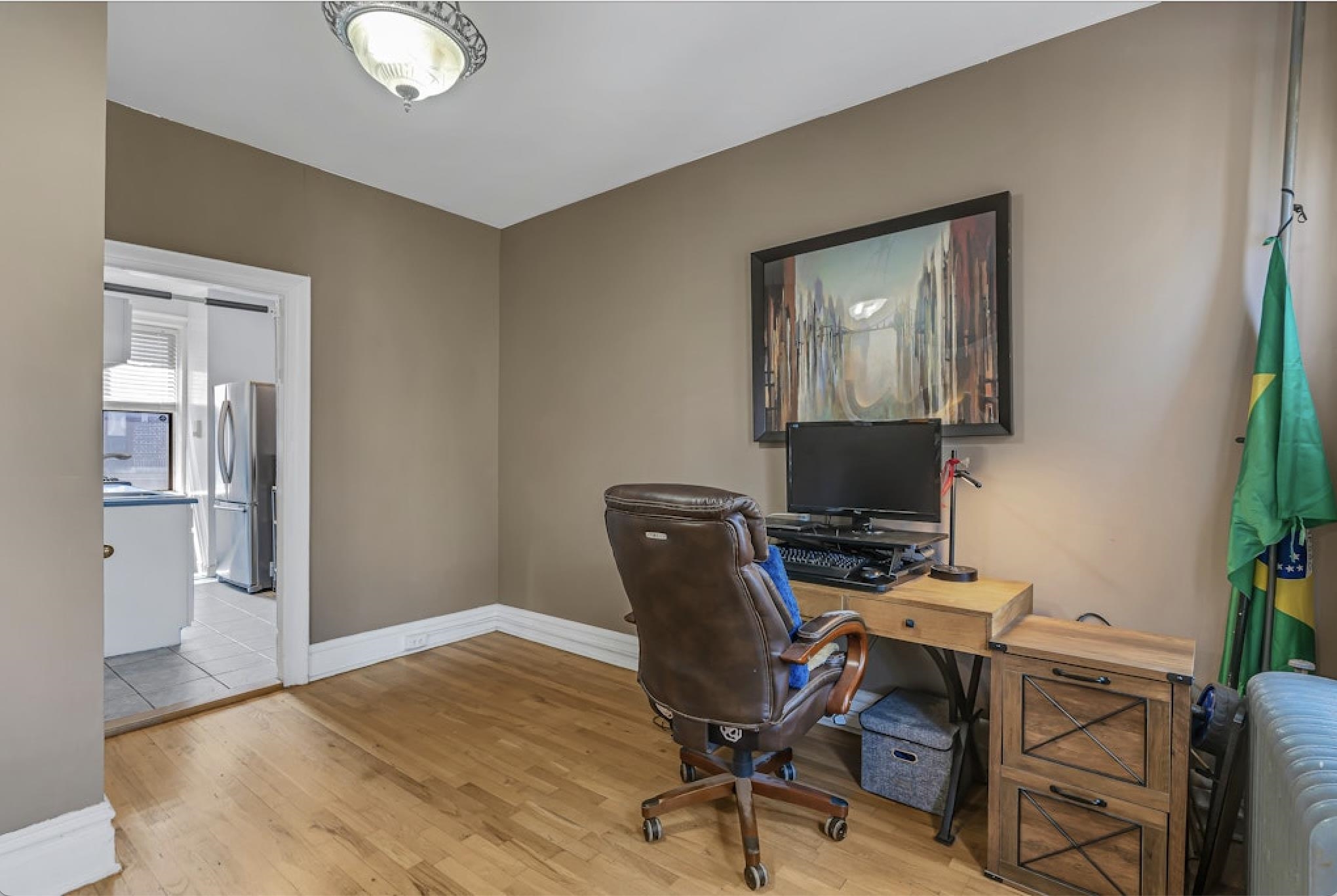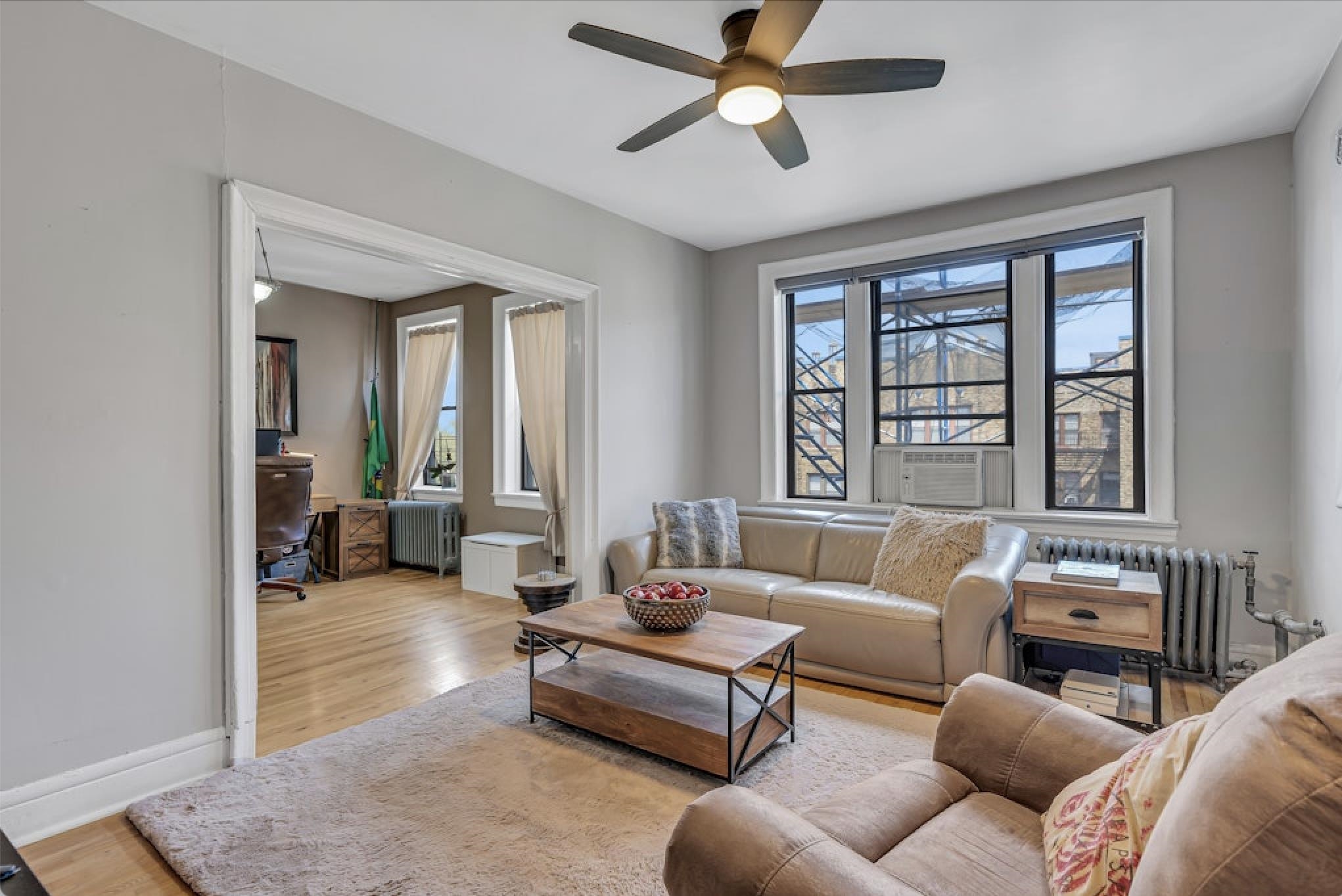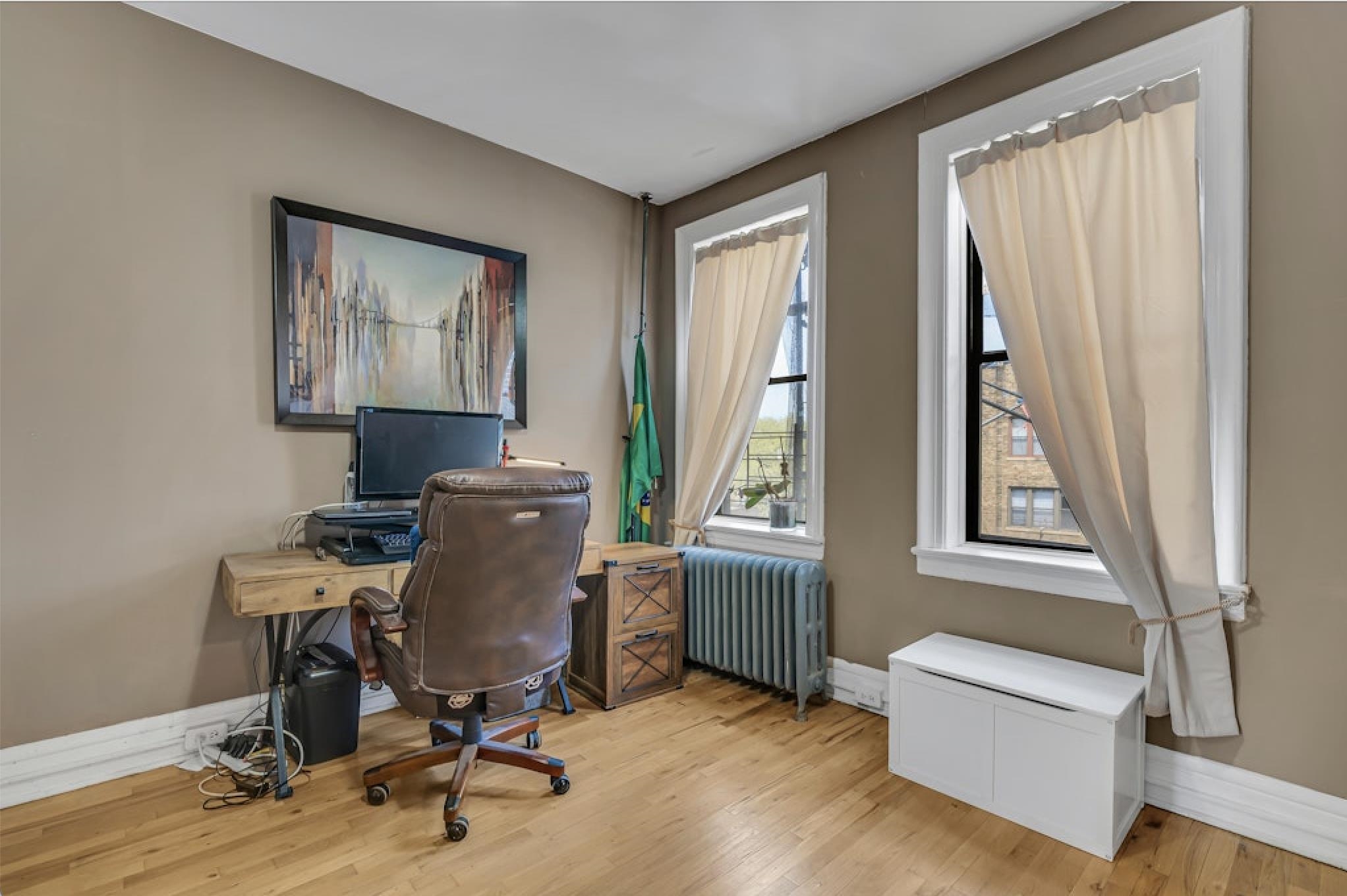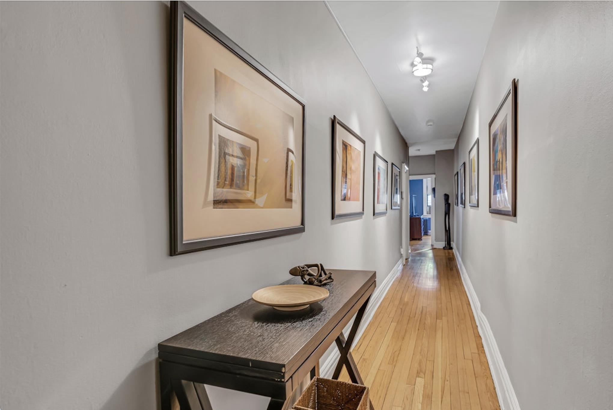 Pre-war elegance meets contemporary refinement in this beautifully appointed two-bedroom condo. Beyond a gracious entry foyer, the home unfolds into a spacious living room designed for both relaxed living and stylish entertaining, complemented by a rarely available formal dining room—equally suited for hosting or a sophisticated work-from-home space. The double-windowed kitchen is thoughtfully arranged, offering an inviting space to craft everyday meals or more elaborate fare. Tucked privately to the back of the home, both generously sized bedrooms are accessed through a gallery-style hallway, creating a quiet and serene retreat. The bathroom has been tastefully updated with a custom vanity offering abundant storage and an illuminated mirror. Timeless details—including beautifully inlaid hardwood floors and windows in every room—enhance the home’s character. On-site laundry is just downstairs in this elevator building, and HOA inclusions for heat and hot water ensure ease of living. Set within the historic Lincoln Park district, this residence places you at the center of a vibrant neighborhood. Moments from the lush expanses of Lincoln Park, a nearby golf course, and an exciting mix of acclaimed restaurants, arts destinations, and cultural landmarks, the area offers a dynamic lifestyle with effortless access to 24-hour PATH trains—bringing the energy of New York City within easy reach while preserving a distinct sense of community at home.