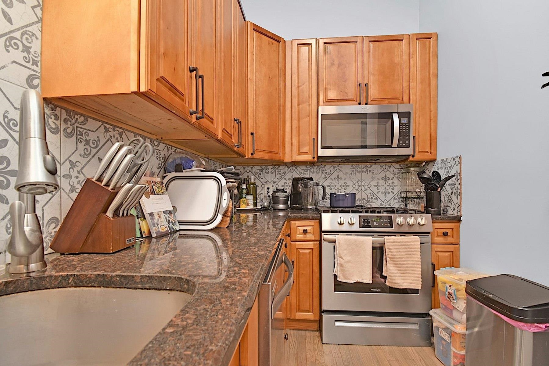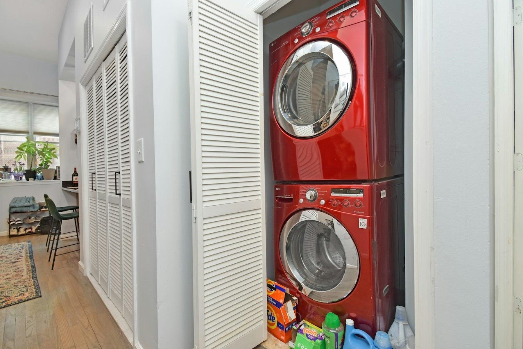 Recently updated 2br/1bath apartment with garage parking for two cars. This first-floor unit features impressive 12-foot ceilings, central A/C, and hardwood floors, all within a boutique building offering just four corner units. This great apartment provides ample storage and a dedicated workspace in the kitchen, complete with granite countertops, stainless steel appliances, and a breakfast bar with seating. Enjoy the convenience of a full-size, in-unit stackable washer and dryer, as well as a private storage area in the basement. Ideally located for commuters, this property offers quick access to NYC via buses on Boulevard East and Park Avenue, the Port Imperial ferry, and Routes 1, 9, and 495. The express bus on Boulevard East reaches Midtown Manhattan in under 20 minutes. Conveniently situated near shopping and parks with stunning NYC views, this home combines comfort, style, and accessibility—plus the rare benefit of garage parking for two cars.