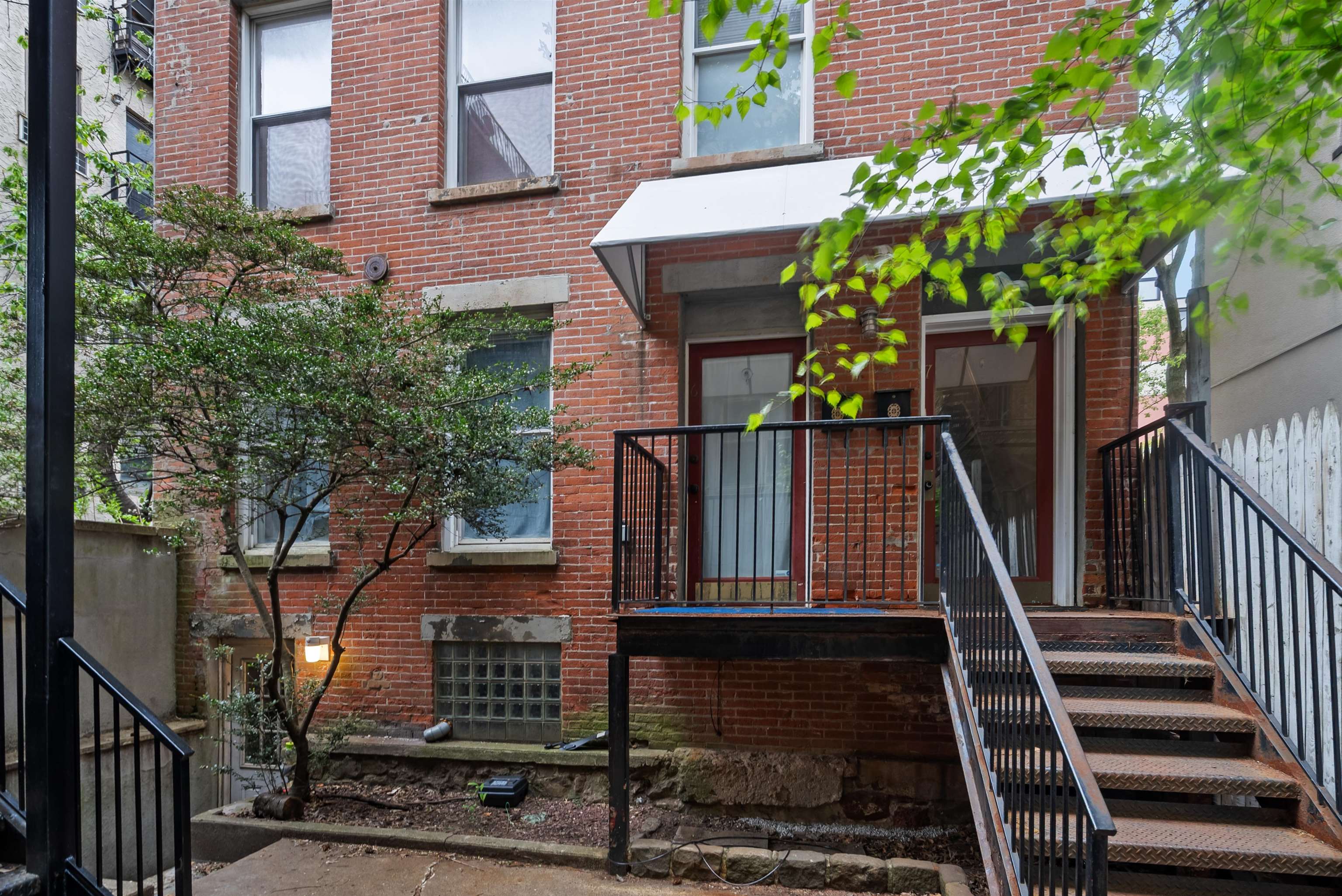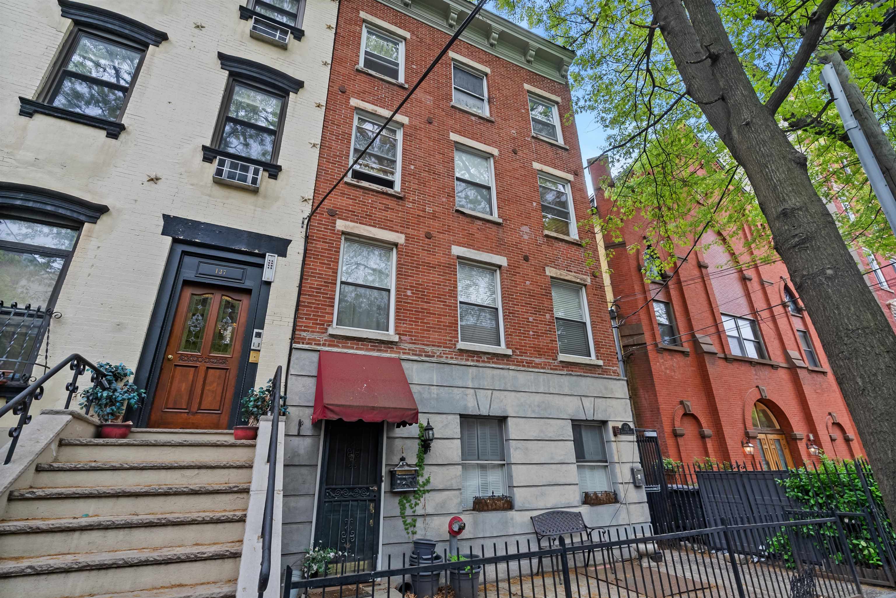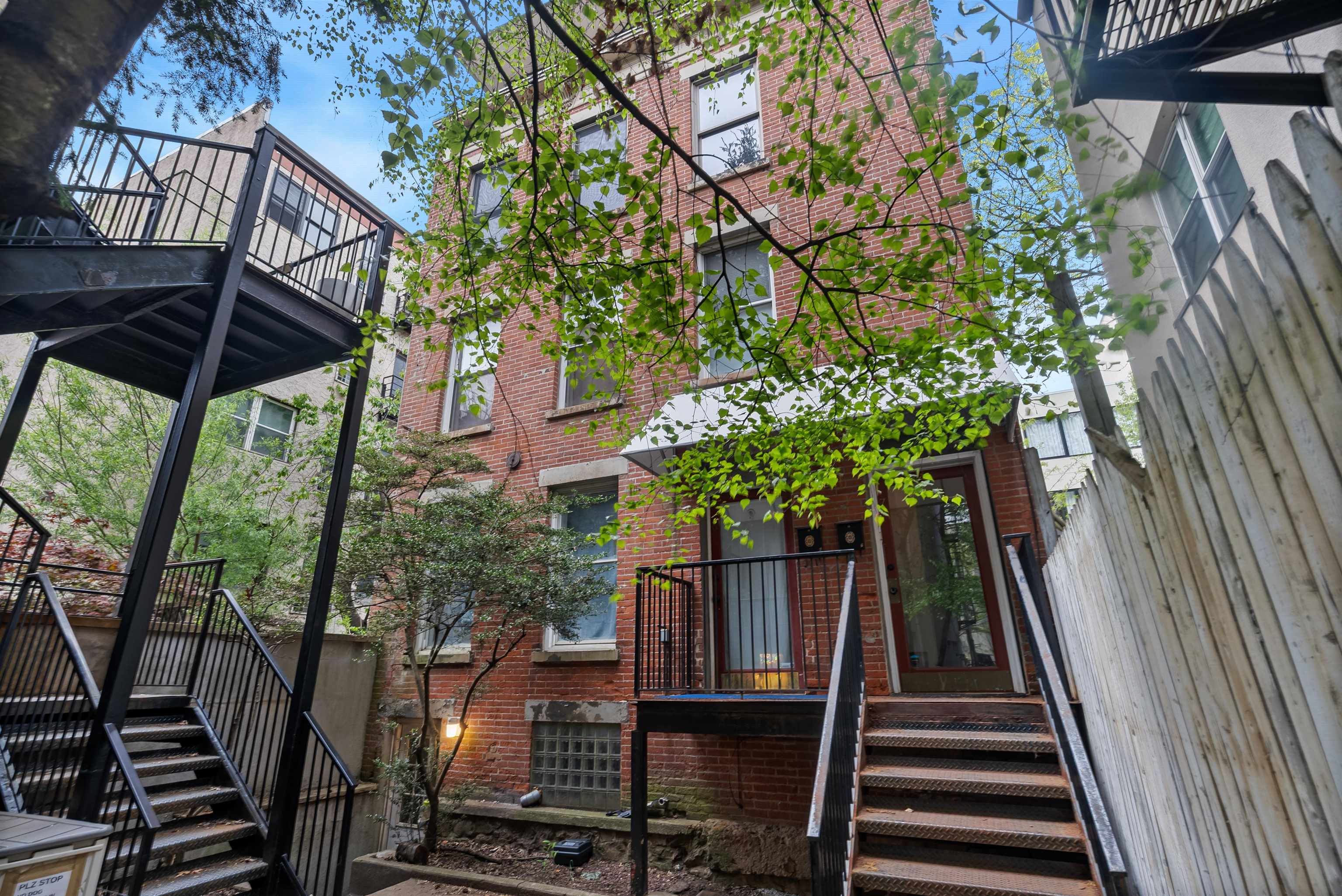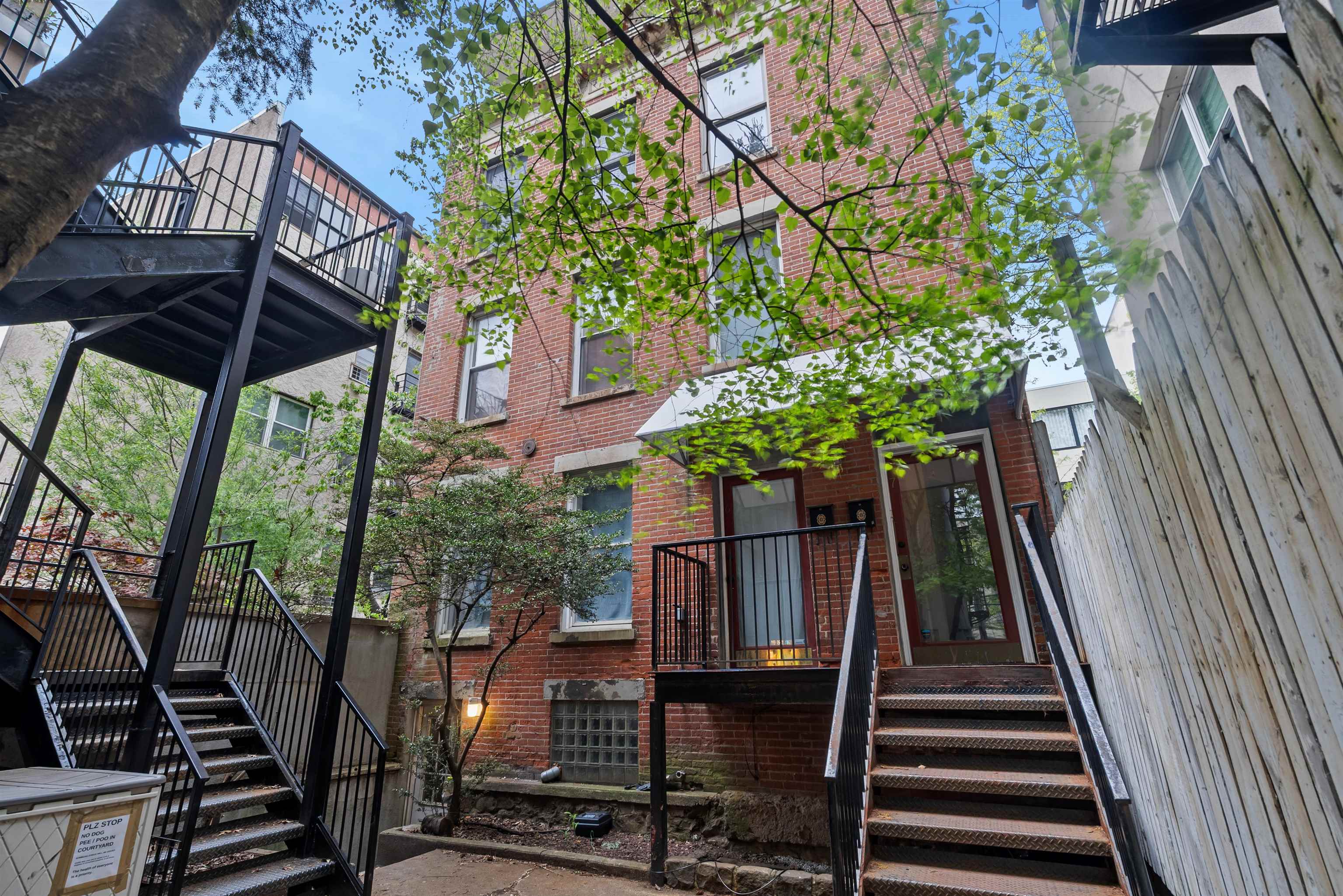 Located in the highly sought after downtown neighborhood of Hoboken on one of the most beautiful tree-lined streets, discover this hidden historic carriage house. Quietly situated down a private walkway, enter the peaceful common courtyard surrounded by greenery. The home is a perfect and rare combination of urban living in a suburban-style duplex. The open concept living room is ideal for entertaining, featuring a woodburning fireplace and plenty of sunshine beaming through many windows. Modern kitchen includes ample cabinetry, wine cooler bar, and dining area, excellent for entertaining. The upper level features 2 large bedrooms and a serene, private balcony. Master bedroom features a walk in closet. You will also love the convenience of a recently upgraded Central A/C, a new ensuite washer/dryer, additional storage and common courtyard. Feel right at home while steps away from shopping, restaurants, nightlife and easy access to NYC via PATH. Several parking garages near by.