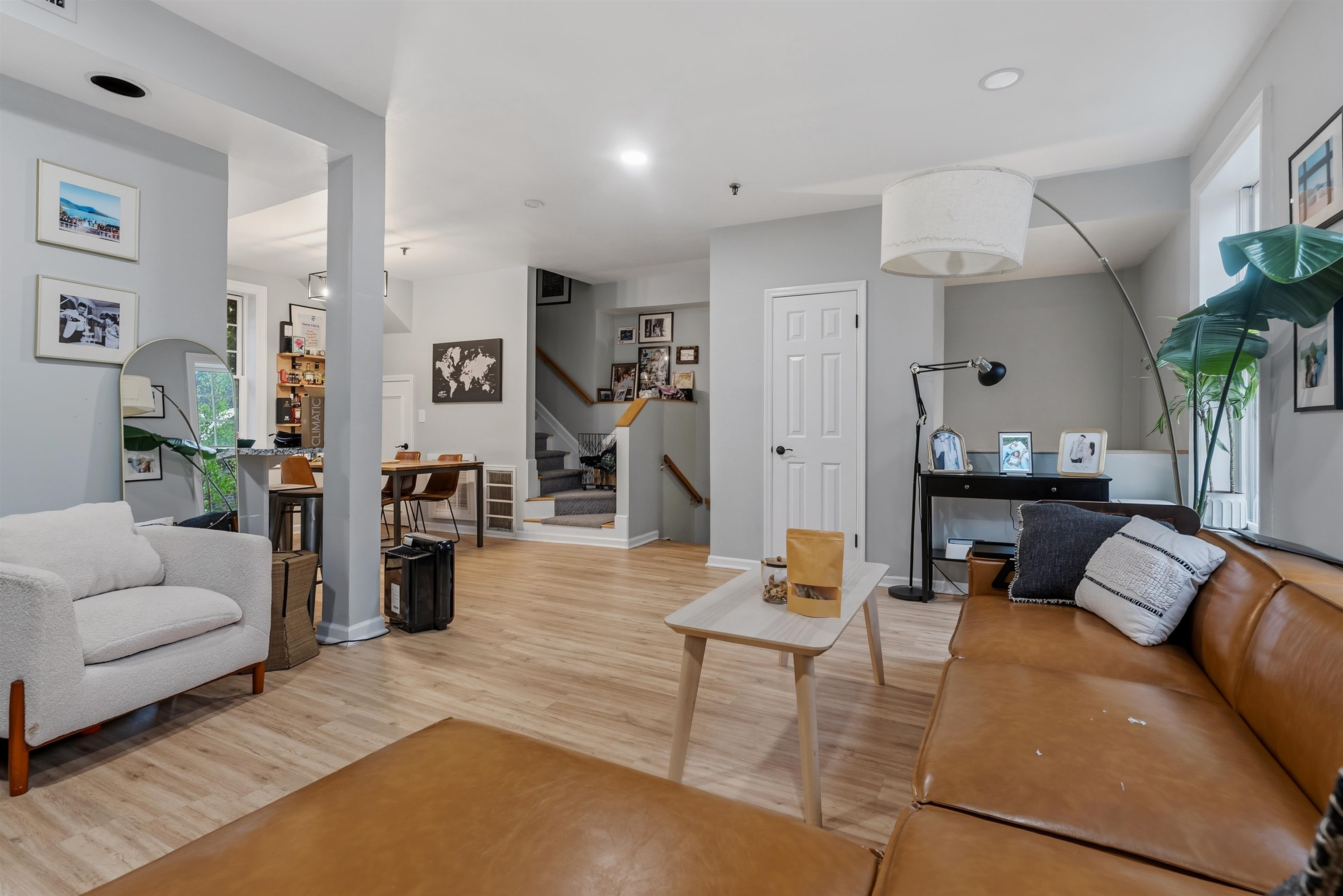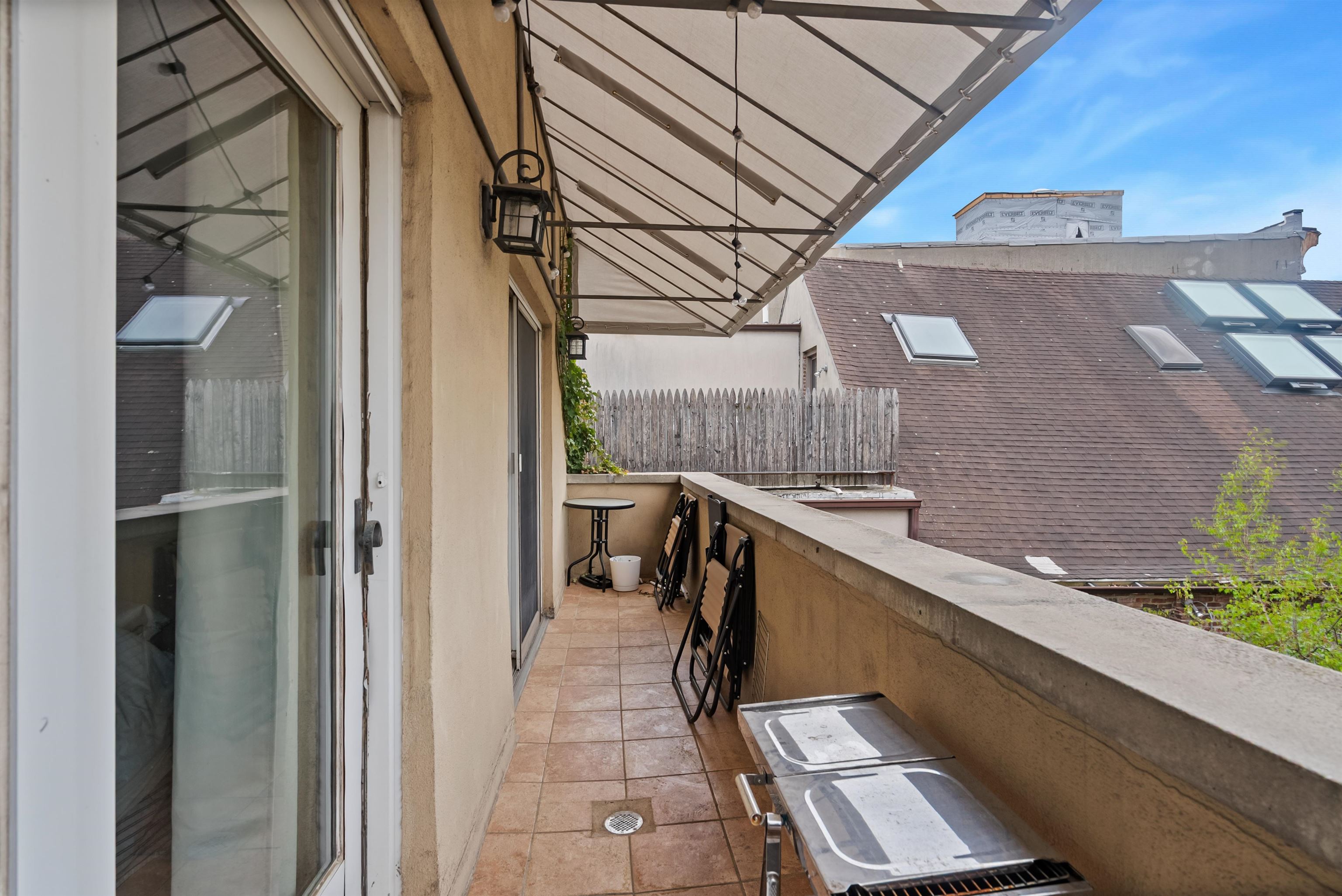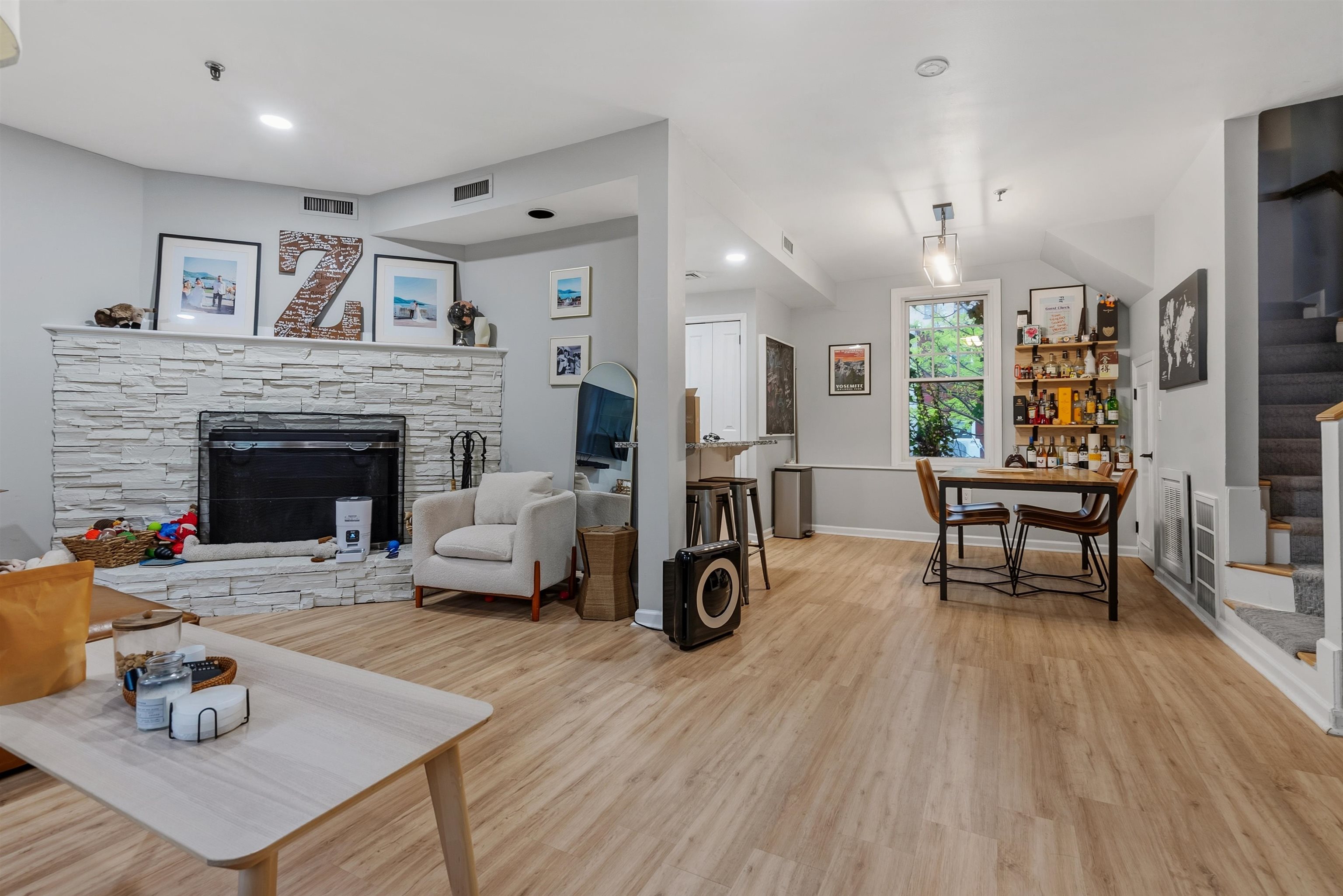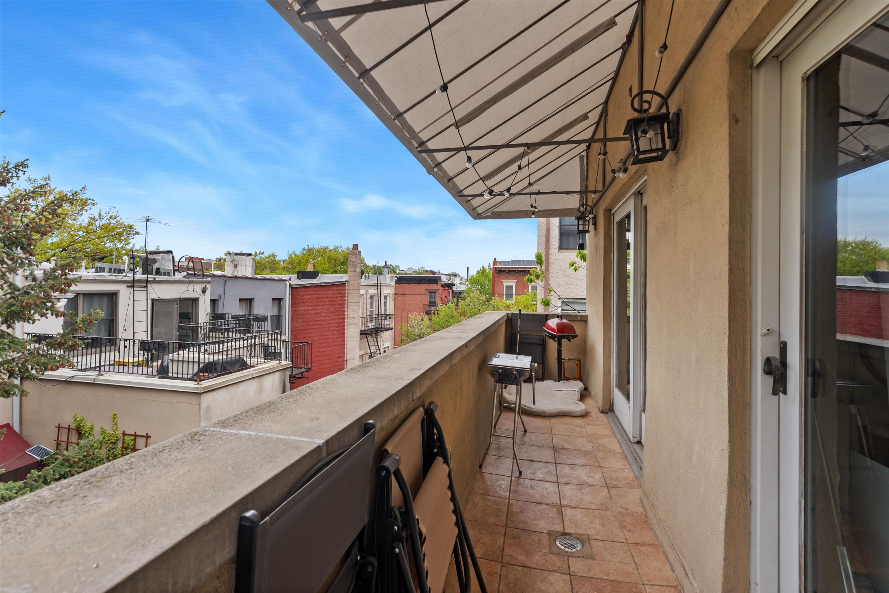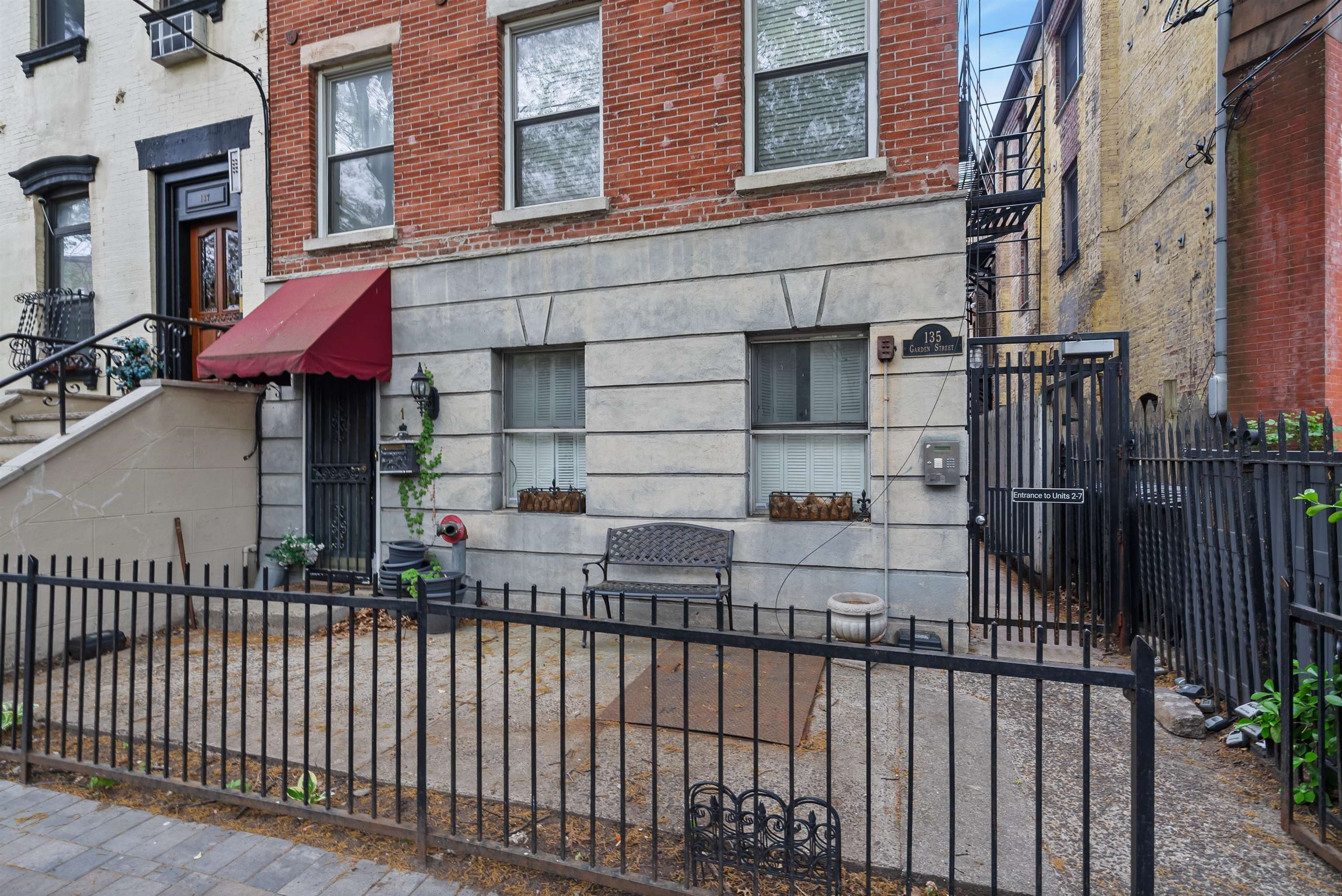 Located in the highly sought after downtown neighborhood of Hoboken on one of the most beautiful tree-lined streets, discover this hidden historic carriage house. Quietly situated down a private walkway, enter the peaceful common courtyard surrounded by greenery. The home is a perfect and rare combination of urban living in a suburban-style duplex. The open concept living room is ideal for entertaining, featuring a woodburning fireplace and plenty of sunshine beaming through many windows. Modern kitchen includes ample cabinetry, wine cooler bar, and dining area, excellent for entertaining. The upper level features 2 large bedrooms and a serene, private balcony. Master bedroom features a walk in closet. You will also love the convenience of a recently upgraded Central A/C, a new ensuite washer/dryer, additional storage and common courtyard. Feel right at home while steps away from shopping, restaurants, nightlife and easy access to NYC via PATH. Several parking garages near by.
