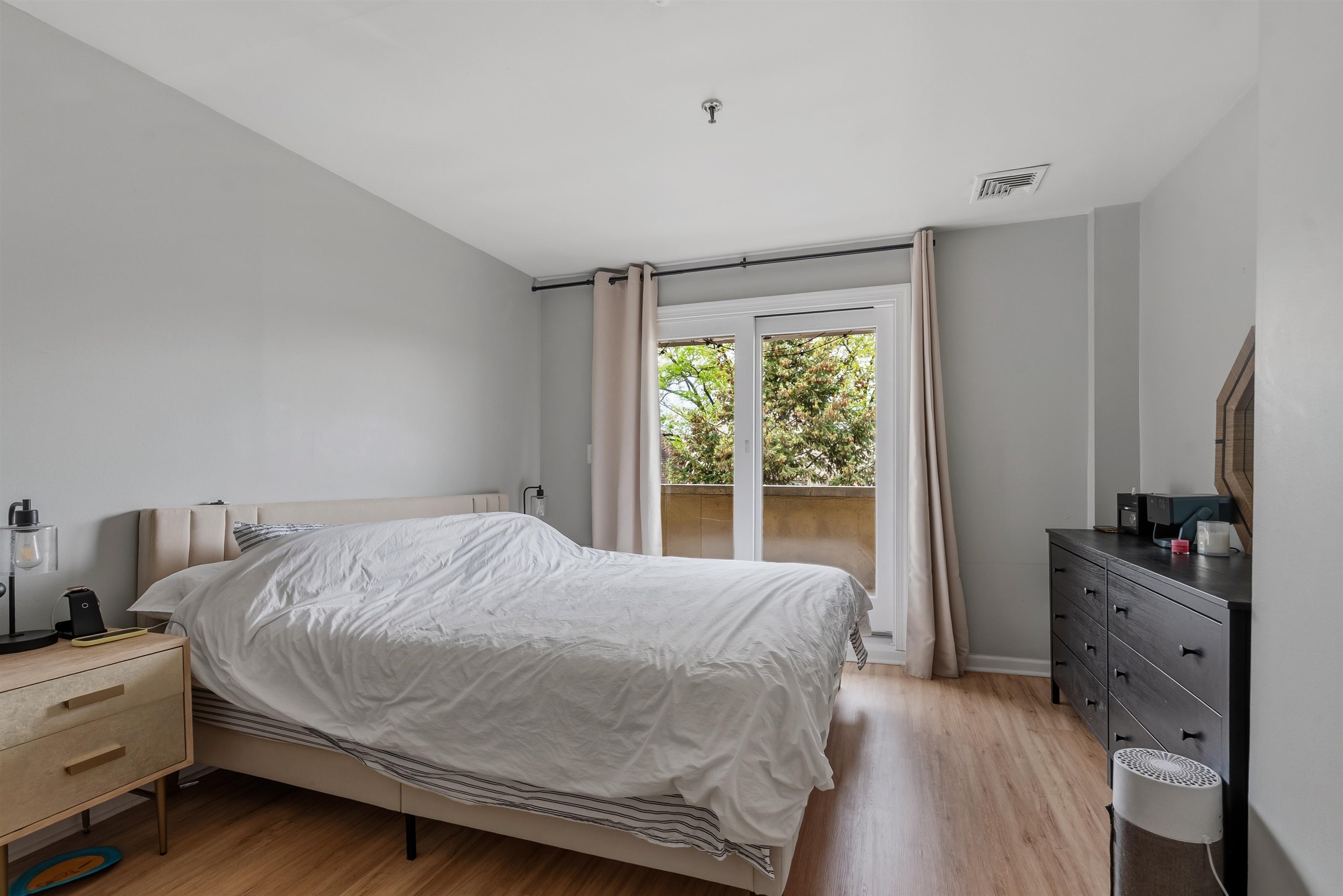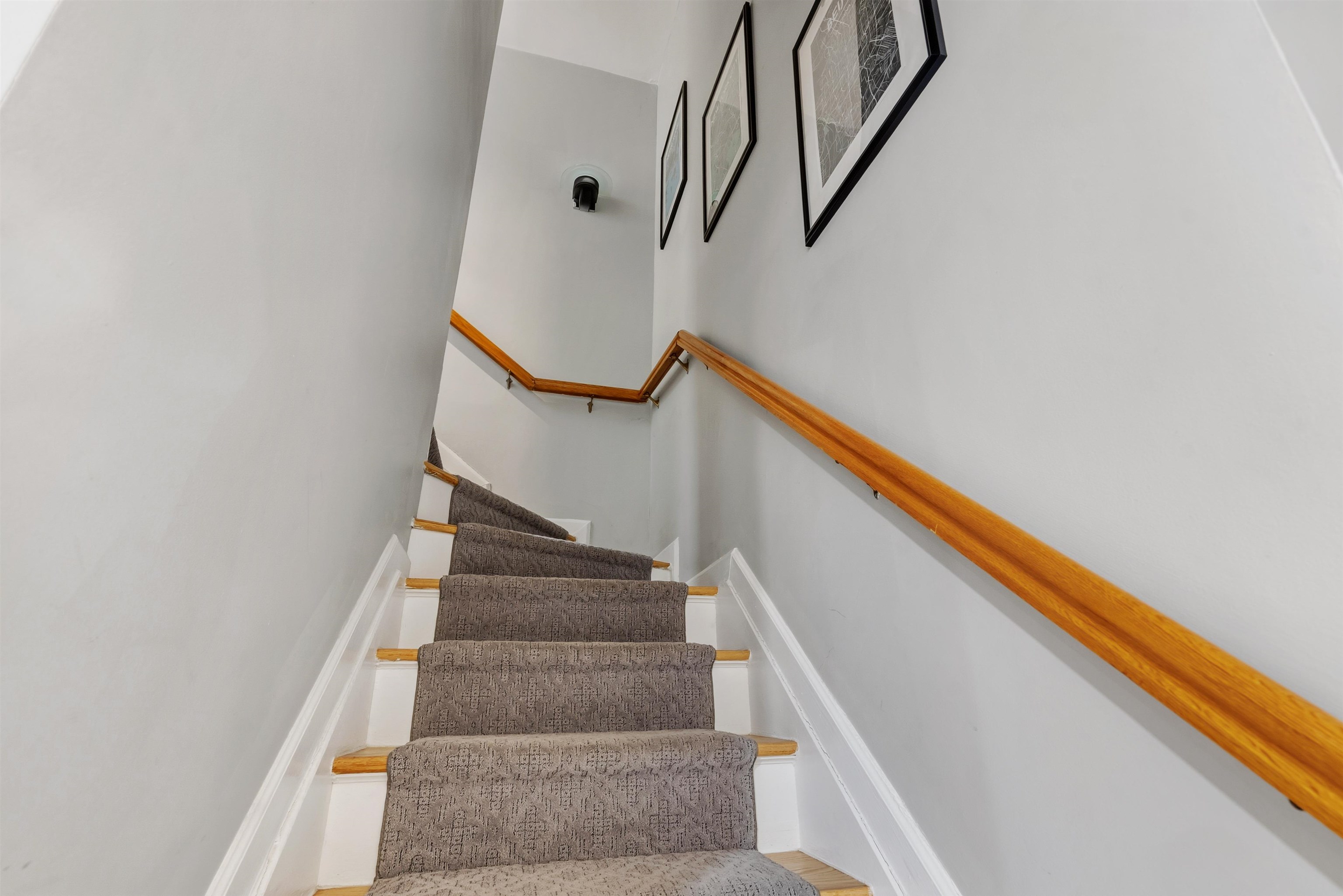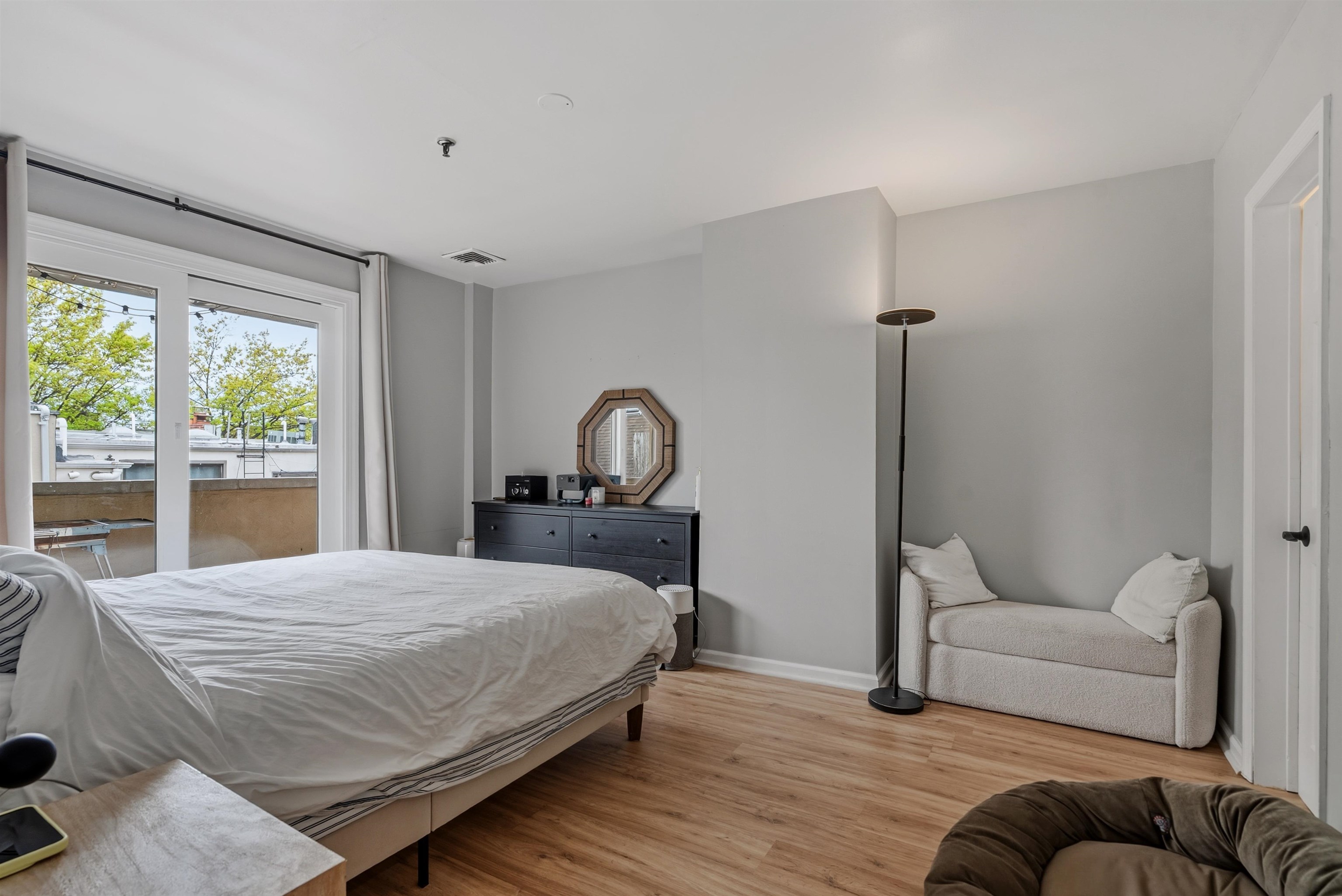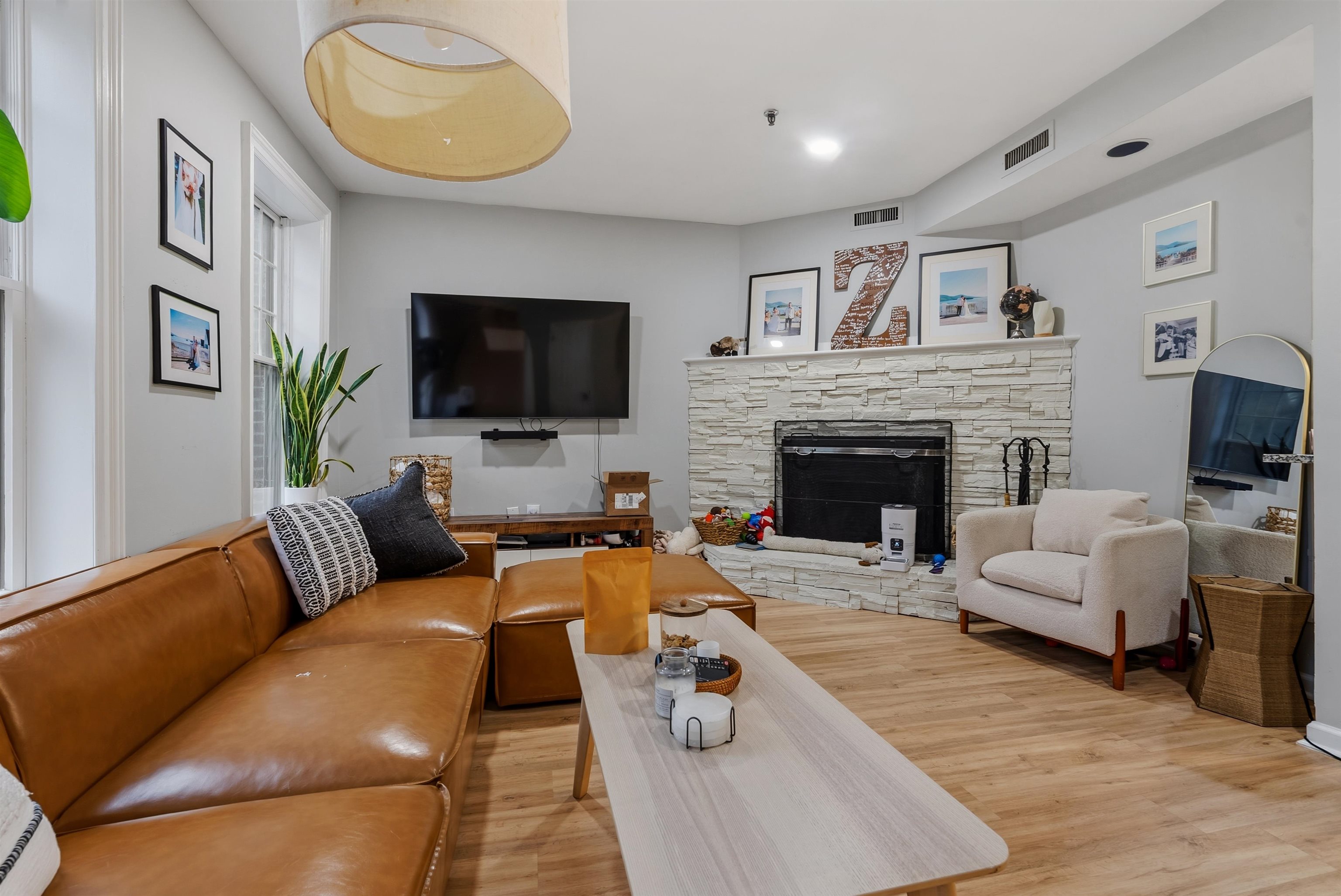 Located in the highly sought after downtown neighborhood of Hoboken on one of the most beautiful tree-lined streets, discover this hidden historic carriage house. Quietly situated down a private walkway, enter the peaceful common courtyard surrounded by greenery. The home is a perfect and rare combination of urban living in a suburban-style duplex. The open concept living room is ideal for entertaining, featuring a woodburning fireplace and plenty of sunshine beaming through many windows. Modern kitchen includes ample cabinetry, wine cooler bar, and dining area, excellent for entertaining. The upper level features 2 large bedrooms and a serene, private balcony. Master bedroom features a walk in closet. You will also love the convenience of a recently upgraded Central A/C, a new ensuite washer/dryer, additional storage and common courtyard. Feel right at home while steps away from shopping, restaurants, nightlife and easy access to NYC via PATH. Several parking garages near by.