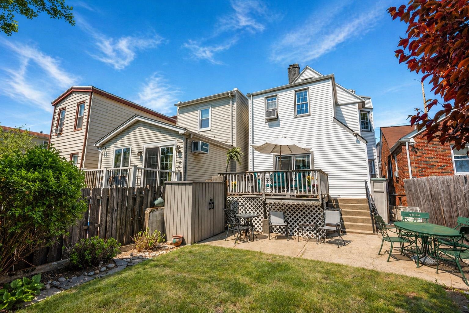 If you’ve been searching for character, space, and a home that truly feels different, you’ve found it. There’s a certain character here that you don’t come across often. From the original hardwood floors to the archways that shape the main living spaces, to the original staircase that anchors the home with timeless detail, this space feels warm, inviting, and thoughtfully layered. Located in Uptown Bayonne on Avenue E, just one block from Broadway’s shops and restaurants, you’re right in the middle of an active, convenient neighborhood. Parking in this area is a luxury, which makes the carport an incredibly valuable feature, especially for commuters. You’re also just a few blocks from the 45th Street Light Rail, making commuting into NYC simple, with quick access to the Turnpike for travel throughout North Jersey. Nearby, Hudson County Park offers over 100 acres of green space, walking paths, and waterfront views. Inside, the layout is built for both everyday living and hosting. The living and dining areas feel substantial yet comfortable, with a dining room large enough to accommodate a full formal setup with additional space for gatherings. Natural light shifts throughout the day, with the front sunroom filling with softer evening light, creating a cozy place to unwind. The kitchen offers generous space, complete with an adorable island and a bright breakfast nook, with sliding doors that lead directly to the deck. It’s an ideal entertaining setup, with easy indoor-outdoor flow and plenty of room for a table and grill. Step outside and you’ll find a fully fenced backyard that feels more private than you’d expect. With both a deck and patio area, plus a backdrop of trees, the space offers flexibility whether you’re hosting or just enjoying a quieter morning with natural light filling the yard. Upstairs, the second floor offers versatility. A spacious front bedroom, full bath with jetted tub and separate shower, and an additional bedroom connected in a railroad-style layout to a third room give you options. Keep them as separate bedrooms, or reimagine the layout into a larger suite with a sitting area or office. The top floor expands the home even further. A finished attic, accessed through a single French door, offers a large open loft-style space with true usability, whether as a primary suite, additional rooms, or a dedicated retreat. Bayonne is in the middle of a real shift. With the planned ferry service to Manhattan, major development projects taking shape throughout the city, and the upcoming 1888 Studios bringing a new level of attention and investment, the trajectory here is hard to ignore. For buyers paying attention, the appreciation happening in Bayonne is becoming increasingly difficult to match in surrounding areas, making this not just a place to live, but a place to get ahead of what’s next. Take a tour today!