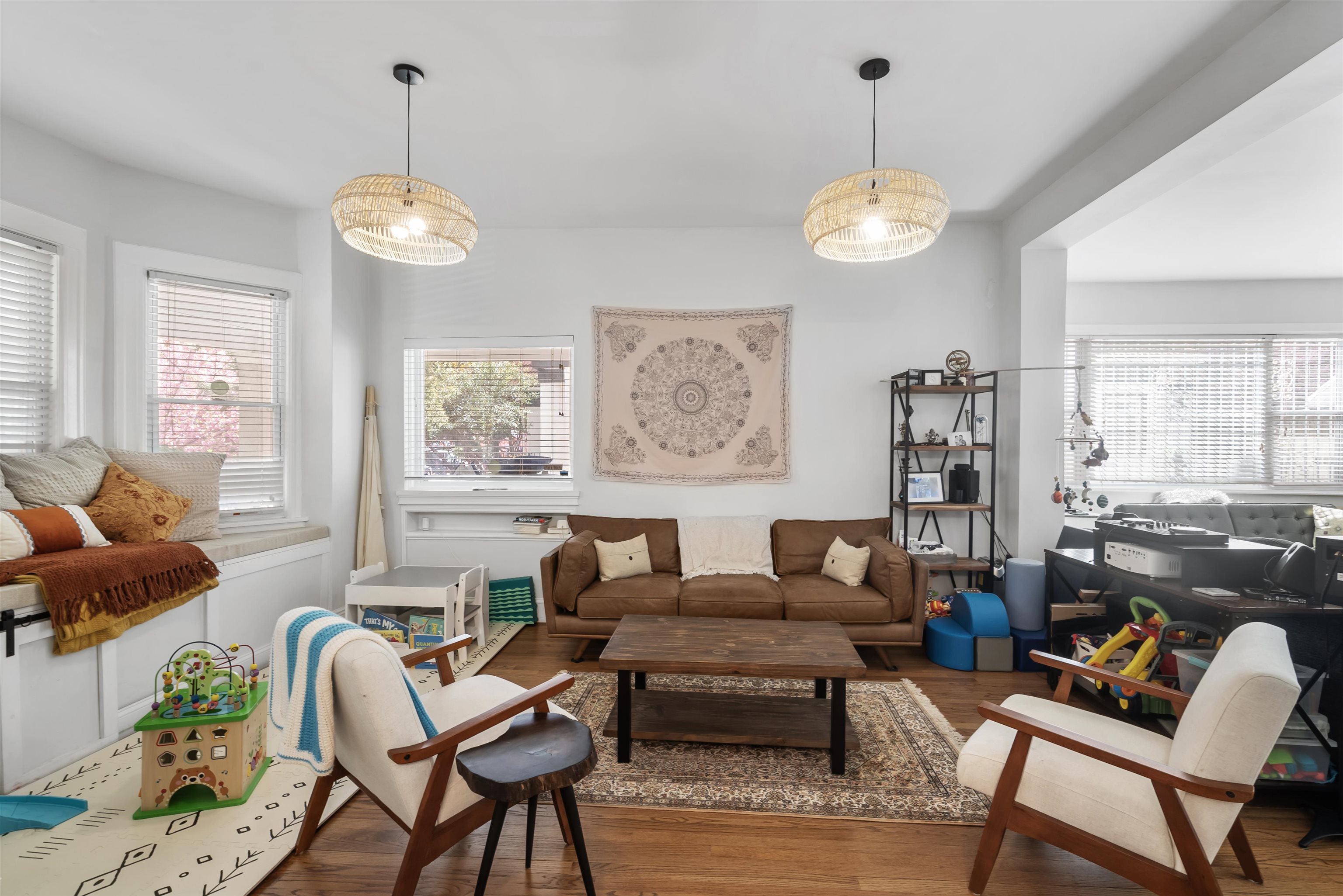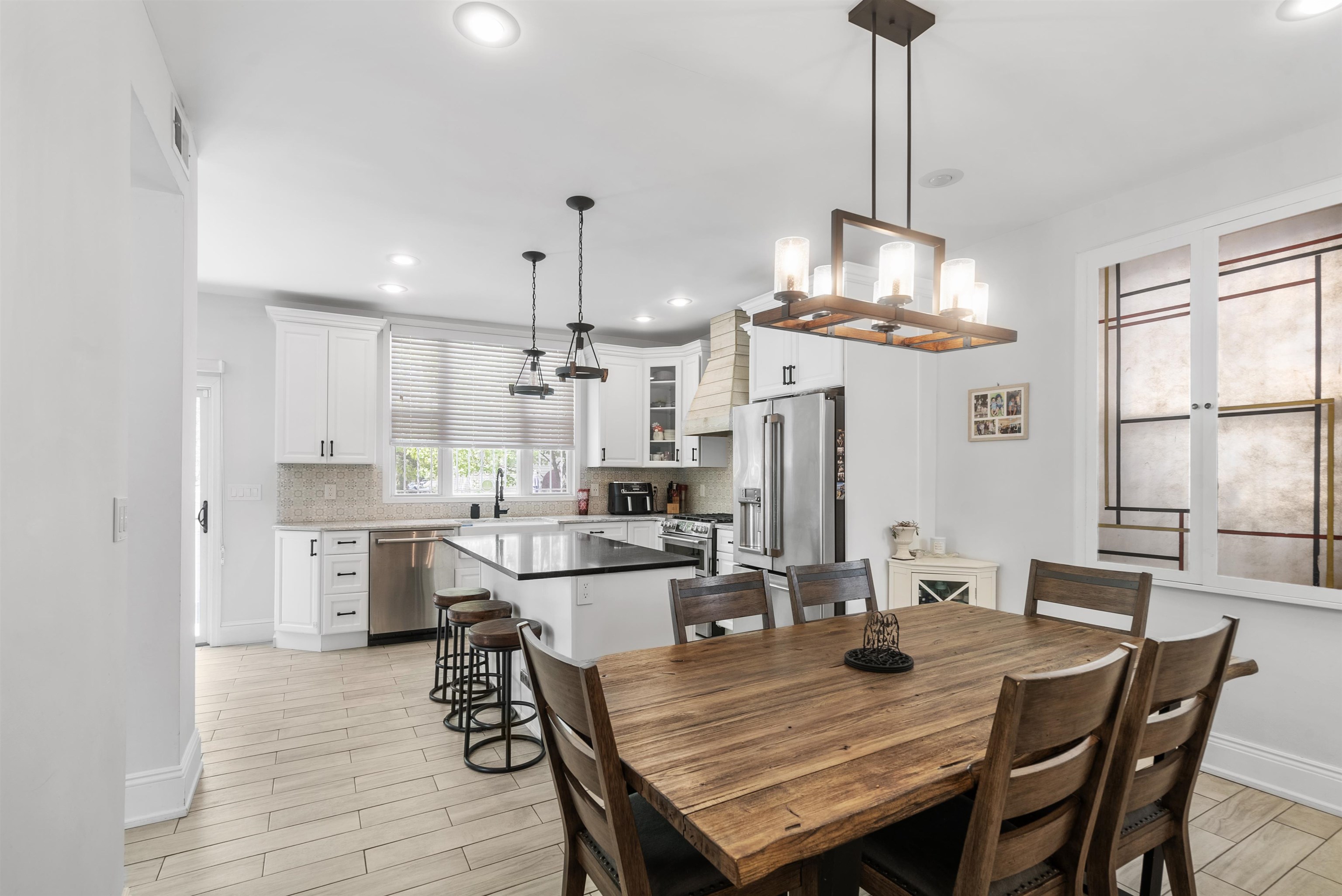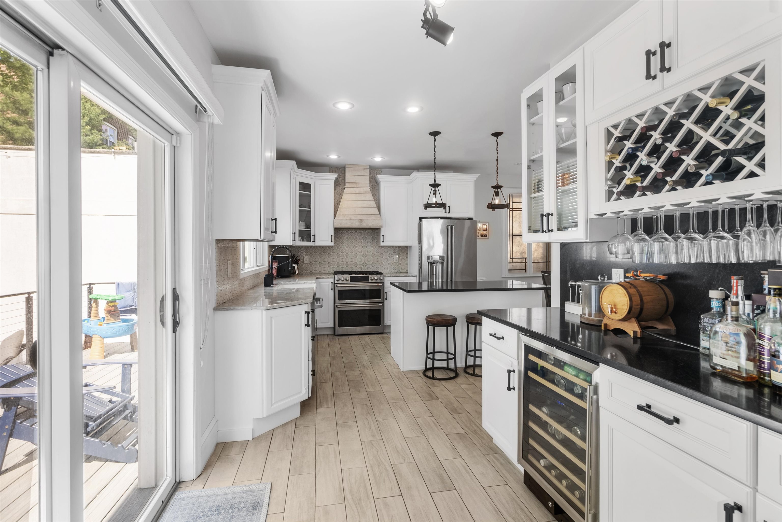 Beautifully renovated in 2020, this expansive 5-bedroom, 4.5-bath residence with a finished attic offers a rare blend of space, character, and functionality across multiple levels, ideally located just moments from Boulevard East with stunning NYC skyline views nearby. The first floor features a thoughtfully designed layout with a formal living room, dining area, and a well-appointed kitchen complete with a farmhouse sink and custom wine bar perfect for both everyday living and entertaining. A full bathroom adds convenience to this level. The lower level offers exceptional versatility, including a sauna, half bath, washer and dryer, water softener, and abundant storage with potential for a wine cellar. On the second floor, you’ll find multiple spacious bedrooms, including a primary suite with a standing shower, an additional full bathroom with double sinks and a tub, and flexible rooms ideal for a nursery, home office, or guest accommodations. A standout oversized room with wraparound windows fills the space with natural light. The finished attic provides a unique retreat, featuring rustic character, a Moroccan-inspired space, and a full bathroom with a clawfoot bathtub perfect for relaxation. Perfectly positioned for commuters, this home offers direct access to NJ Transit bus lines along Boulevard East with service to Port Authority Bus Terminal, providing an approximate 20-minute commute to Midtown Manhattan. Additional accessibility includes close proximity to the Lincoln Tunnel, Route 495, and the New Jersey Turnpike, as well as nearby Hudson-Bergen Light Rail connections. A unique opportunity to own a spacious, thoughtfully updated home offering both lifestyle and practicality in one of North Bergen’s most desirable locations.