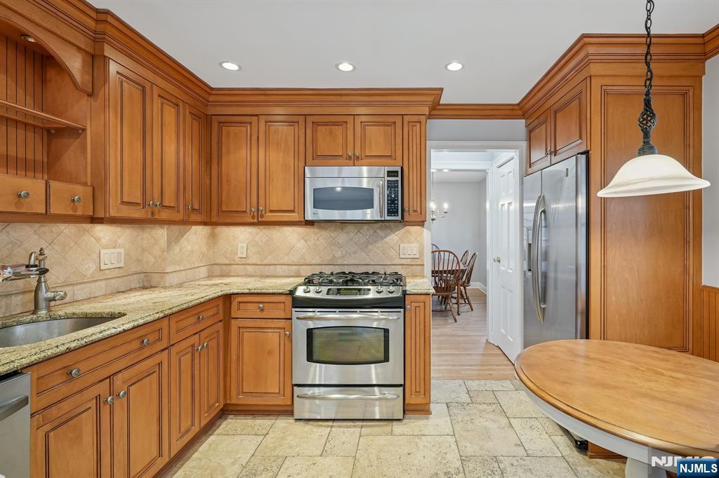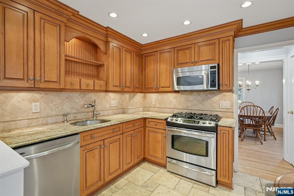 Recently renovated, this exceptional three-bedroom, two-bath single-family rental truly checks all the boxes. Features include refinished hardwood floors, the entire freshly painted, two brand-new bathrooms, updated windows, a Google Nest thermostat, a newer roof, and central air conditioning. The modern kitchen is appointed with granite countertops and stainless steel appliances and opens to a spacious, sunlit family room with a fireplace and sliders leading to the rear yard. The finished basement includes a recreation room and a laundry center with a washer/dryer. With mature landscaping, the spacious back yard includes a paver patio, a gas barbeque, and outdoor furniture for tenant use. Located in a sought-after Blue Ribbon School neighborhood, this home also offers easy access to Routes 208, 4, and 17, the GSP, and is just minutes from the Radburn Train Station. Welcome home!