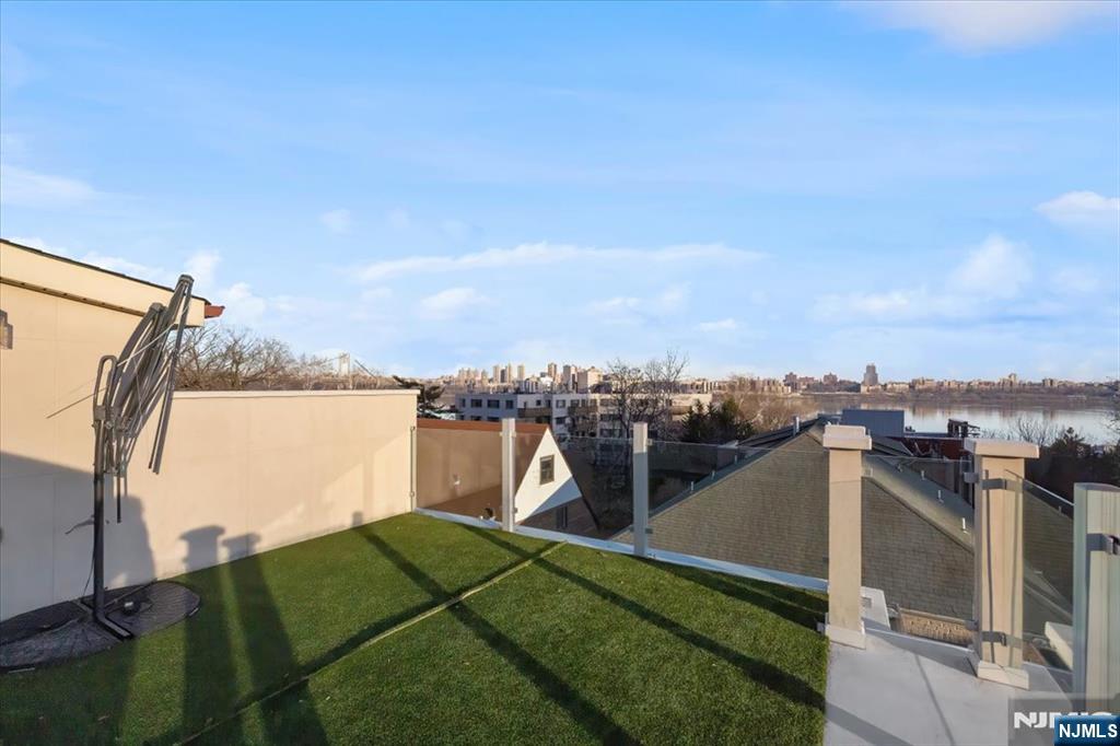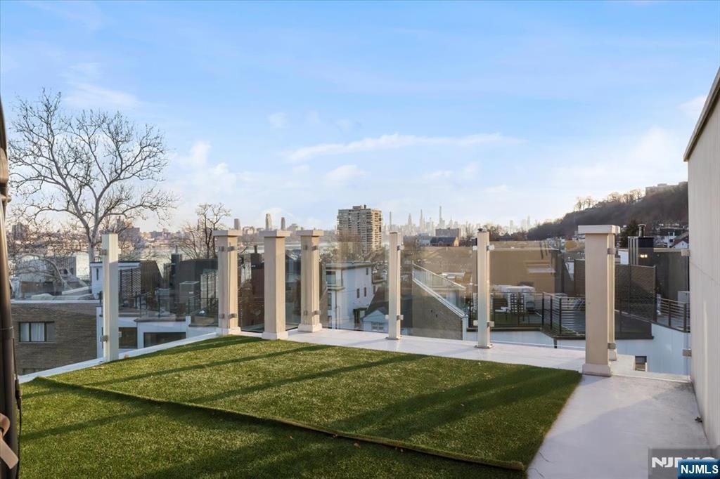 Welcome to 12 Orchard St, Edgewater, NJ, a custom duplex that epitomizes contemporary sophistication and luxury. Situated at the corner of River Rd, offers convenient access to NYC buses, making it an ideal location for commuters. Upon entering, you are greeted by a welcoming marble foyer that sets the tone for the rest of the home. The open floor plan features 9' ceilings, enhancing the sense of space and light throughout. The first floor features a stunning gourmet kitchen, equipped with custom cabinetry, quartz countertops, and top-notch appliances, making it perfect for culinary enthusiasts. The living room, complete with a fireplace, and the dining area provide elegant spaces for entertaining guests. Gleaming hardwood floors and sun-drenched windows further enhance the home's appeal. The second floor features a luxurious master suite with an en-suite bath and four closets, providing ample storage space. Two additional bedrooms with high ceilings and a hallway bathroom complete this level. A spectacular rooftop deck provides breathtaking views of the Hudson River and NYC, offering a serene retreat for relaxation or entertaining. Additional features include a fully finished basement with a full bath, providing versatile space for various needs, and an oversized one-car garage. The property is conveniently located near Veterans Field and GW School, with an easy commute to NYC and all highways