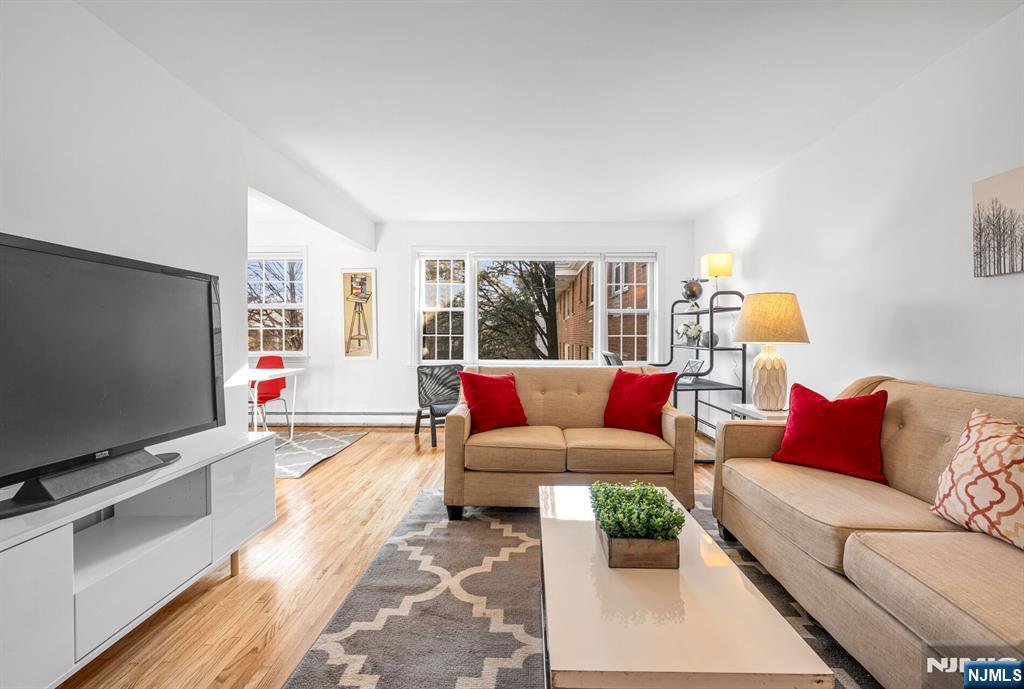 Discover this beautifully updated 1-bedroom, 1-bathroom condominium in the desirable Williamsburg South community of Clifton. Featuring a bright, open layout, the home offers a spacious living room with large windows that fill the space with natural light. The modern kitchen boasts spacious countertops, updated cabinetry, and newer appliances, perfect for everyday living or entertaining. The generous bedroom includes ample closet space, while the bathroom offers a new, large vanity and medicine cabinet for storage. Enjoy the convenience of in-building laundry, a separate, private storage space in the basement plus access to community amenities like a pool, gazebo and landscaped grounds. Ideally located near shopping, dining, and major commuting routes, this move-in-ready condo combines comfort, style, and convenience in Montclair Heights, one of Clifton's most sought-after neighborhoods. Perfect for first-time buyers or downsizers for a turnkey property. Abundant parking and steps to NYC bus on Grove St. and Rt.3. Minutes from Uptown Montclair shopping and restaurants, Montclair State University, NJ Transit train at MSU and Routes 3 + 46, GS Parkway. Maintenance includes heat/hot water. Occupant only pays elec., cable/WiFi. There is no smoking anywhere inside or outside the buildings. Rental allowed after two years of ownership and subject to a wait list.