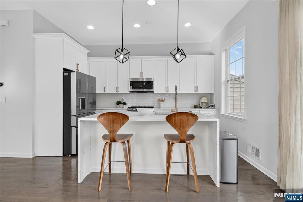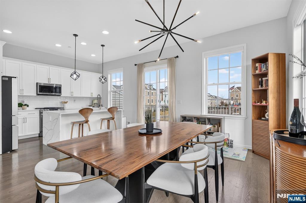 Premium Location, Corner Home & High-End Upgrades Perfectly Blended: Come Experience The Difference at 223 Bradley: An Ultra-Luxury townhome located in FINEST & highly sought-after Wright Place Community of Wood-Ridge. ONLY 4 YEARS YOUNG- a truly unique open floor layout - like no other New York model with TAX ABATEMENT. 30 mins from Manhattan, close to major turnpike/freeways, offers ease of commute to NYC, Hoboken, Jersey City, Secaucus, etc. Wood Ridge has its own train station at just 5 MIN stroll from this home & option of 2 buses going directly into Manhattan running every 10-15 mins. The home has front & rear entrance w/attached 2car garage & 2car driveway. 1st FL: 9ft high ceilings, half bath, Dedicated Work Space/Gym-can be easily converted to 4th BEDROOM. 2nd FL: Boasts super spacious open concept, 10ft ceilings, tall windows, CUSTOM KITCHEN & WATERFALL ISLAND, upgraded high-end appliances & kitchen hardware, Pantry, MASSIVE living room, Private outdoor deck with UNOBSTRUCTED views. 3rd FL: Main bed suite w/full bath, CUSTOM his&her closets, 2 add'l bedrms, full bath & laundry. More: 2 Zone, hardwood flr throughout, smart switches, automated window shades, full home WATER FILTERATION system, ADDITIONAL PARKING next to home. On-Site: Playgrounds, parks, MULTIPLE sports fields, coffee & liquor shop, pet grooming, salon, steps away from TOP RATED elementary schools, Train station, NJ bus close by. Perfect for buyers & a solid investment w/strong rental upside.