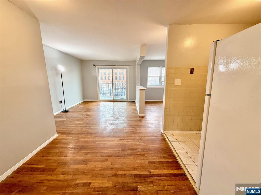 Freshly painted top floor apartment with balcony and 2 good-sized bedrooms Kitchen with Quartz countertops and oak cabinets. Refrigerator, Gas range & new range hood included. Available to occupy immediately. Maximum occupancy: 4 people. Tenant pays all utilities except cold water. No pets. Coin-operated washer & dryer a few houses down the street. 1.5 months security deposit. No pets, no loud music and no smoking in or near the apartment. Application, tenant credit & eviction check ($40 per working adult), and proof of ability to pay rent required. Short walk to Harrison Path Station, shopping, schools & buses. Convenient to NJIT, Rutgers, NJPAC, Prudential Center, parks, Turnpike, Parkway, Rt. 280 & Rt. 21.