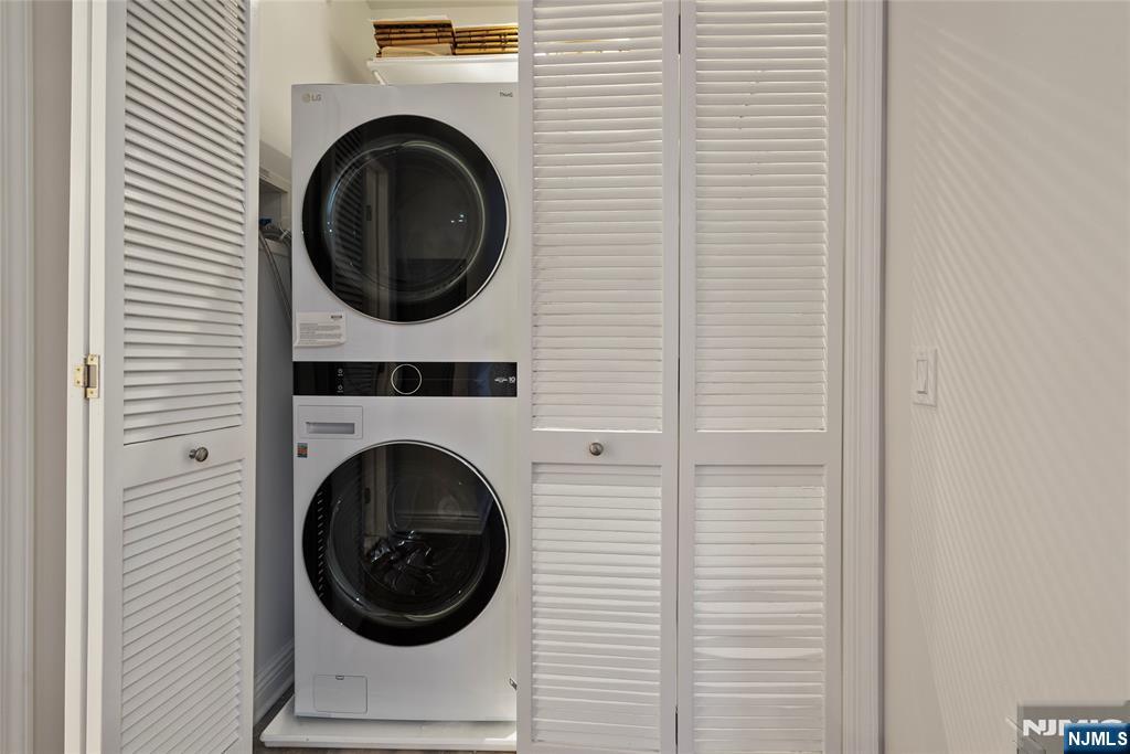 Discover this move in ready and beautifully maintained 2-bedroom, 2-bathroom residence located along the Hudson River in Hudson Pointe. Offering 1,075 sq ft, this home features an open layout with a kitchen equipped with stainless steel appliances, new GE refrigerator, LG dishwasher, granite countertops, and pull-out garbage bins, flowing into a spacious living and dining area with access to a private oversized balcony finished with interlocking wood tiles. The primary bedroom includes a walk-in closet with custom organizing shelves and drawers, an en-suite bathroom with a newly rebuilt shower stall and glass enclosure, and balcony access. The second bedroom is well sized with ample closet space. New ceiling lights with dimmer switches have been installed in the living room and both bedrooms. Additional upgrades include a new LG washer and dryer and fresh paint throughout the entire apartment, including walls, ceilings, and trim. Amenities include a 24-hour doorman, fitness center, outdoor pool, business center, and cinema room. The cinema room, community room, conference room, and lobby have all been fully renovated. Includes two garage parking spaces (one assigned and one floating) with easy access to NYC.