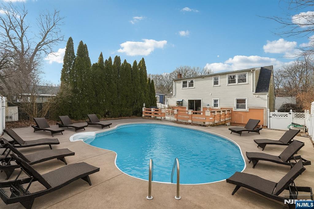 Welcome home to this charming 5 bedroom 1.5 bathroom Cape Cod, ideally set on a quiet residential street. Step into the inviting living room, offering a large picture window that fills the space with natural light, creating a comfortable setting for everyday living or casual entertaining. A wide cased opening leads into the eat-in kitchen, featuring custom cabinetry, ample counter space, and a dedicated dining area perfect for gathering over meals. Sliding glass doors extend the living space outdoors to a spacious rear deck, ideal for grilling, entertaining, or al fresco dining. The first level offers two bedrooms and a full bathroom, providing flexible space for guests or a home office. Upstairs, the primary bedroom serves as a private retreat with generous closet space. Two additional bedrooms and a powder room complete the second floor, providing room for everyone. The ground floor adds to the home's versatility with a comfortable family room well-suited for game nights, movie evenings, or unwinding at the end of the day, along with a laundry room and direct garage access. Outside, the deck leads to a fully fenced backyard with an in-ground pool an inviting setting for outdoor enjoyment. A 1-car attached garage offers added convenience and storage. Conveniently located near NYC transportation, shopping, and dining, this home offers space, flexibility, and an easy lifestyle both indoors and out offering a seamless balance of comfort and entertaining.
