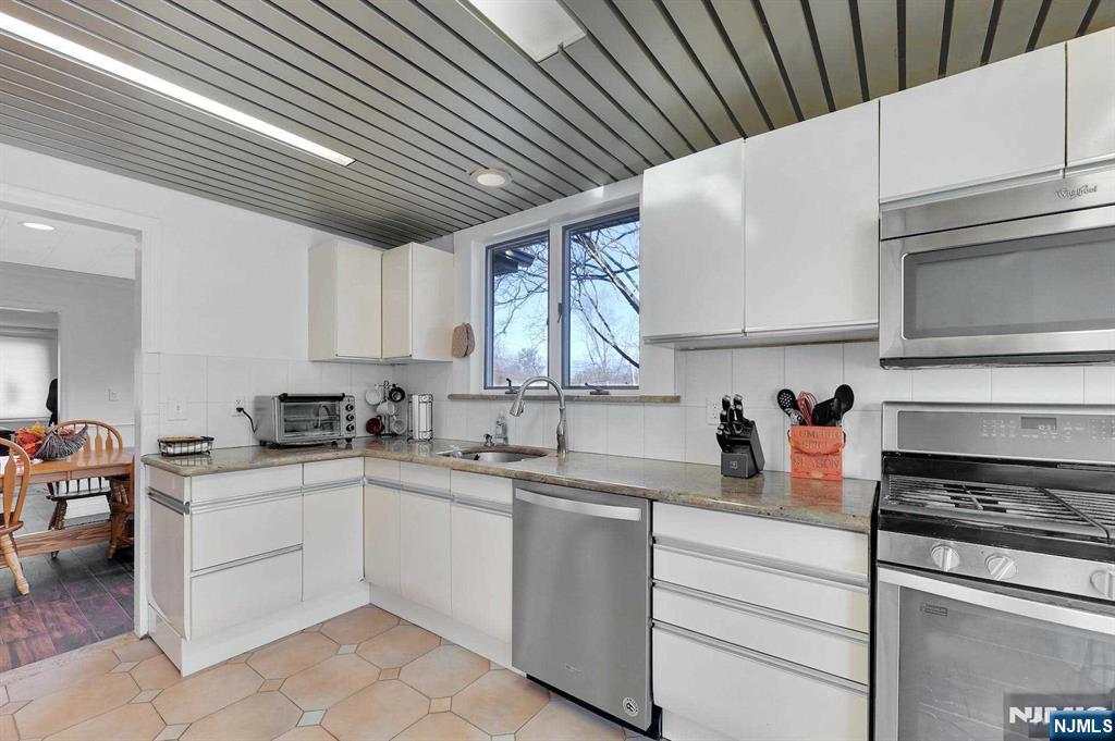 Welcome. Cul de sac location, large property. This lovely expanded ranch style home is light and airy, nicely updated with open floor plan. Fenced in park like back yard. Enter into large living room, dining room with a bay window. The kitchen has an eat in peninsula, stainless appliances. 3 sided large window dining nook overlooking the back yard. 2 bedrooms one with attached half bath and full renovated bath complete the main floor. Second floor-2 bedrooms, full renovated bath. The baths have been nicely updated with marble vanities. There is a family room in the finished basement, washer and drier, ample storage. Detached garage with long driveway, parking for at least 4cars in tandem. Neighborhood is conveniently located off Kinderkamak Road. It is a short distance from bus transportation and located near the Pascack Valley train line. Pets may be considered. Tenant pays first 150$ of any repair, maintains yard and snow removal. Application, NTN report, Tenants insurance, 1.5 months rent Security Deposit