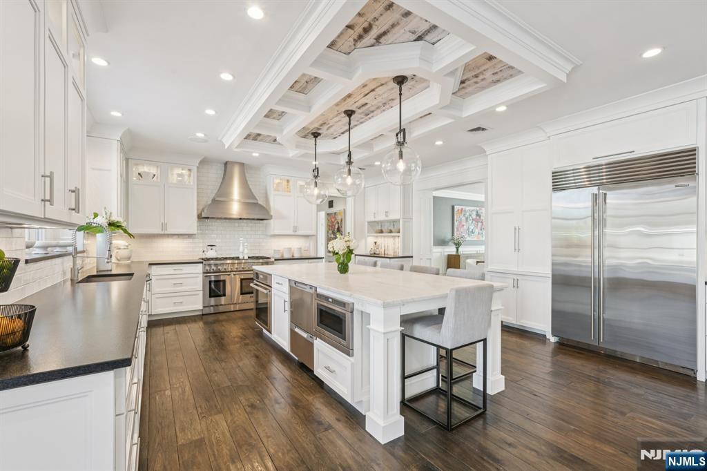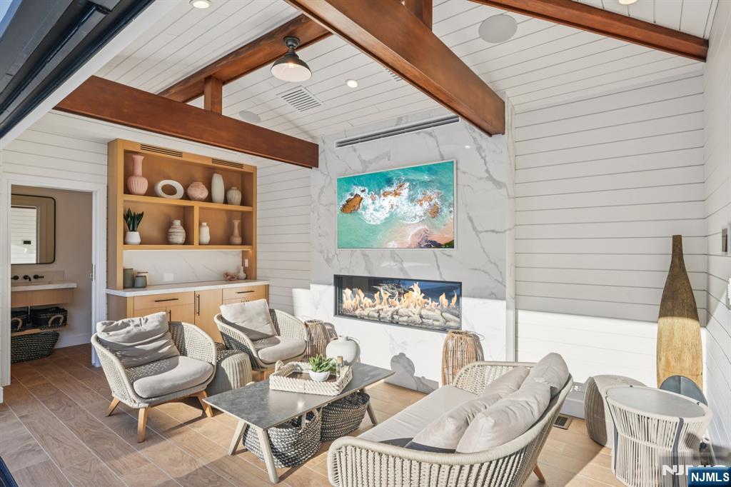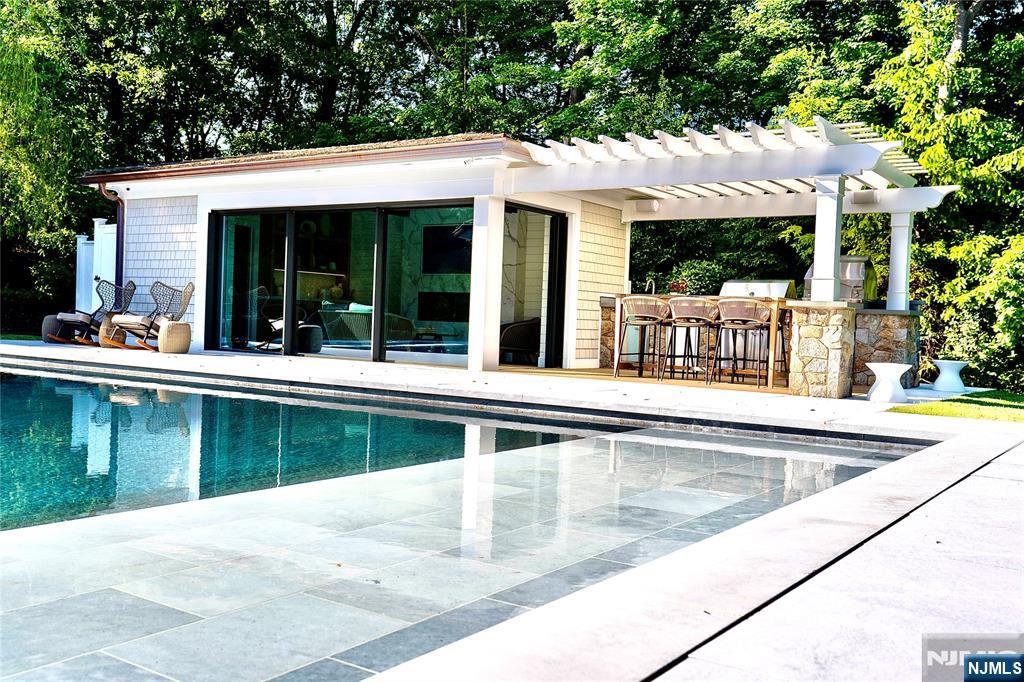 Experience the epitome of opulence and sophistication in this one-of-a kind residence. Set in a prime Franklin Lakes neighborhood. A show-stopping Hampton style cedar and stone estate offering over 9,000 sq ft of magazine-worthy living with a chic and contemporary edge. Thoughtfully designed to accommodate daily life and special occasions. Enter the sun drenched foyer, to open living spaces with clean lines and modern esthetics. The main level features generous open living spaces that connect to beautifully landscaped grounds with stunning heated pool house featuring a full bath, wall of glass, a spacious living room with fireplace. The outdoors also offers a saltwater oversized beach entry pool with spa. Beautifully designed great room with built-ins, a fireplace and French doors flows seamlessly to expansive bluestone covered patio. First floor includes a beautiful dining room with butler's pantry, a stunning chef's kitchen with oversized island, leathered granite, reclaimed wood accents. Gorgeous library. Upstairs the primary suite offers a private retreat complete with sitting area by the fireplace, spa-like bath and double closets. The second floor also includes 4 additional e-suite bedrooms. A fully finished lower level features a rec/media room with custom built wet bar, gym studio and guest quarter. Lush landscaping, dramatic lighting, whole house generator and Sonos complete this extraordinary offering. Luxury living at it's finest.