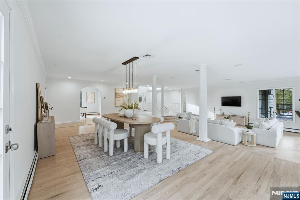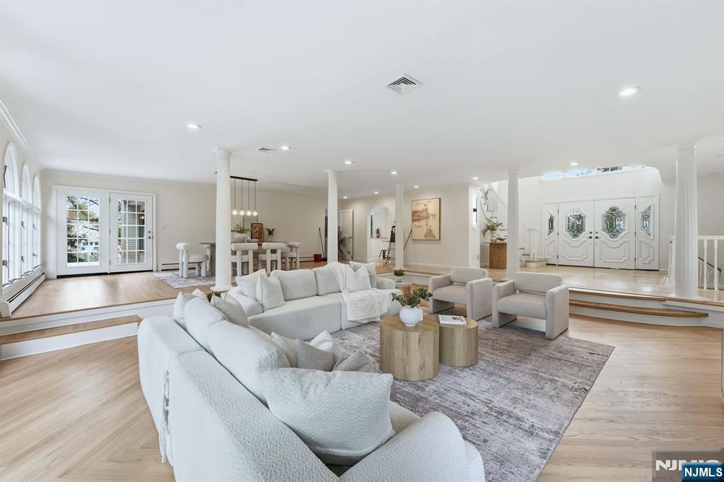 Experience 5807 sqft of refined living space in this majestic single family home located in highly desirable Franklin Lakes. Perfectly positioned along the border of the Franklin Lakes Country Club, this residence is a true masterpiece featuring 6 bedrooms and 6 full bathrooms, meticulously maintained by the owner with several recent upgrades including beautifully renovated bathrooms. The grand two story foyer showcases a curved staircase that opens into an impressive living room with soaring arched windows offering panoramic views of the expansive yard. The property includes exceptional amenities such as an inground pool, built in sauna, circular driveway, and over 43124 sqft of outdoor space. The first floor offers 3 bedrooms, 2 full bathrooms, a formal living room, dining room, eat in kitchen, and a family room with a central fireplace and spectacular views with direct access to the deck and yard. The second floor includes 3 additional bedrooms and 3 full bathrooms, with a master suite that stands out as a true showpiece featuring a walk in closet, freestanding tub, stand up shower, double vanity, and private deck access. The ground level adds even more value with another living room, full bathroom, sauna, and a 3 car garage. Come and check it out.