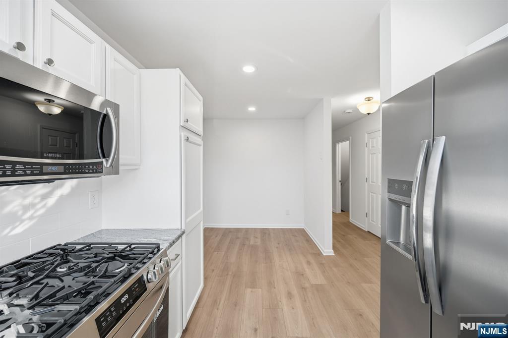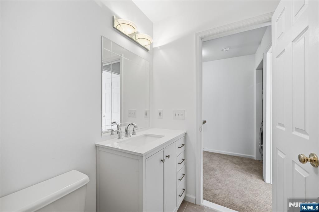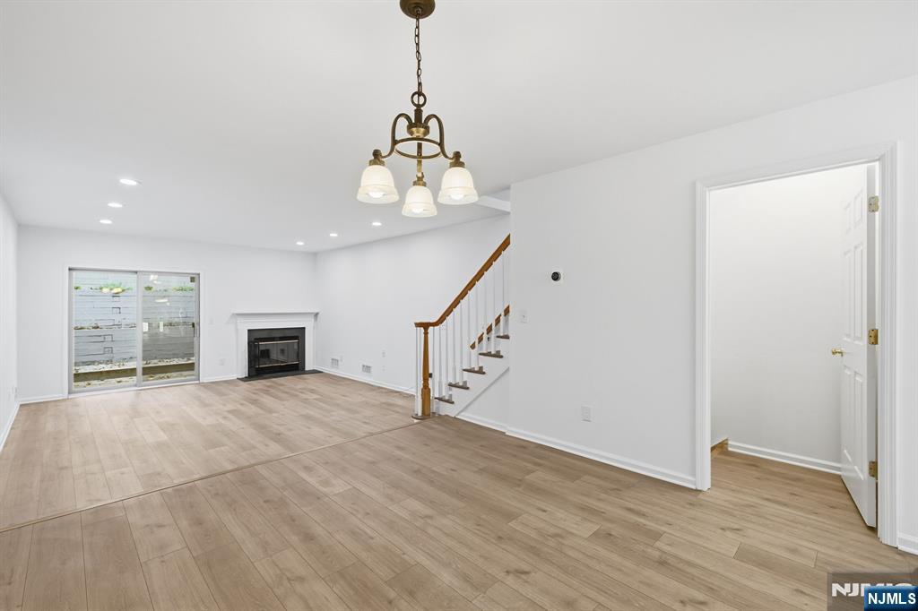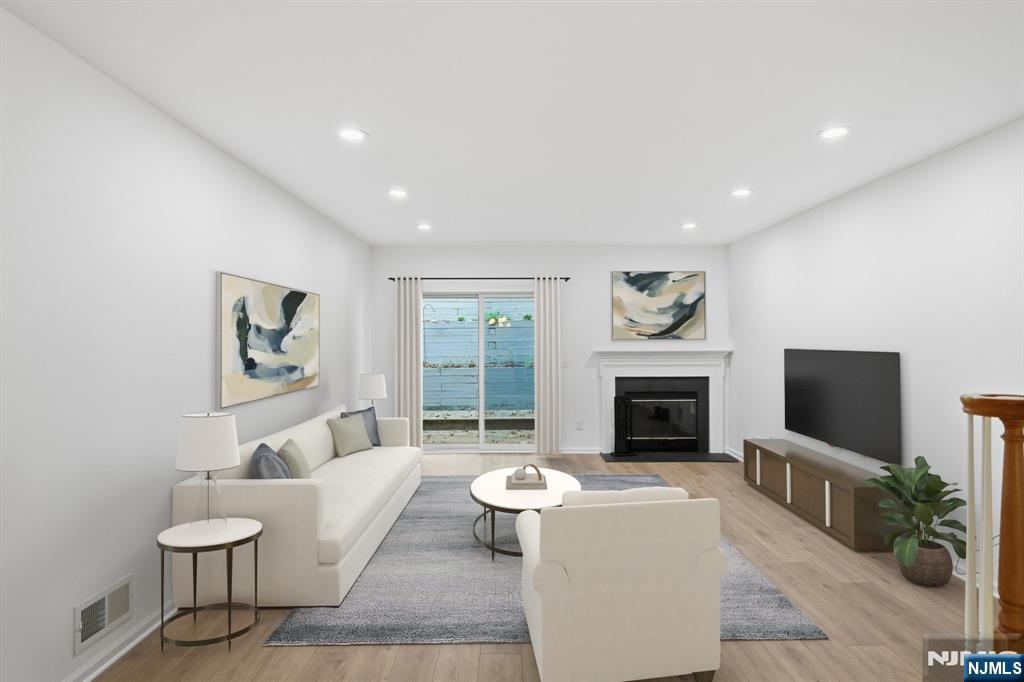 Beautifully refreshed, light and bright interior unit at desirable Mountain Ridge Townhomes in Bloomingdale, NJ! Fully repainted in White Dove and ready for your design inspo! First floor with new white oak wide plank Aquaguard Performance floors. Kitchen with new stainless appliances, granite counters, and separate dining area. Dining room to sunken living room with fireplace and slider to deck overlooking multi-tiered gardens. Updated half bath rounds out the first floor. Second floor with brand new lush berber carpet. Hallway laundry closet. Spacious primary bedroom with multiple closets and fully renovated primary bath with subway tiled stall shower. Bedroom 2 with oversized double closet with built-in organizers. Main hall bath with new vanity, and tub shower. Unfinished full basement with utilities - ready for your ideas - and access to oversized attached garage with ample storage and plenty of room for a car + motorcycle! Sellers' contractor open to finishing basement for Buyer after closing.