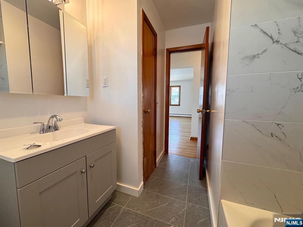 Sunny and updated apartment in a two-family home featuring 2 bedrooms and 1 full bath. This bright unit offers a spacious eat-in kitchen with brand-new cabinets, perfect for everyday dining and entertaining. The bathroom has been newly updated, adding a fresh, modern feel throughout the apartment. Additional storage is available in the basement, along with convenient washer and dryer hookups. A comfortable and well-maintained home with great space and functionality.