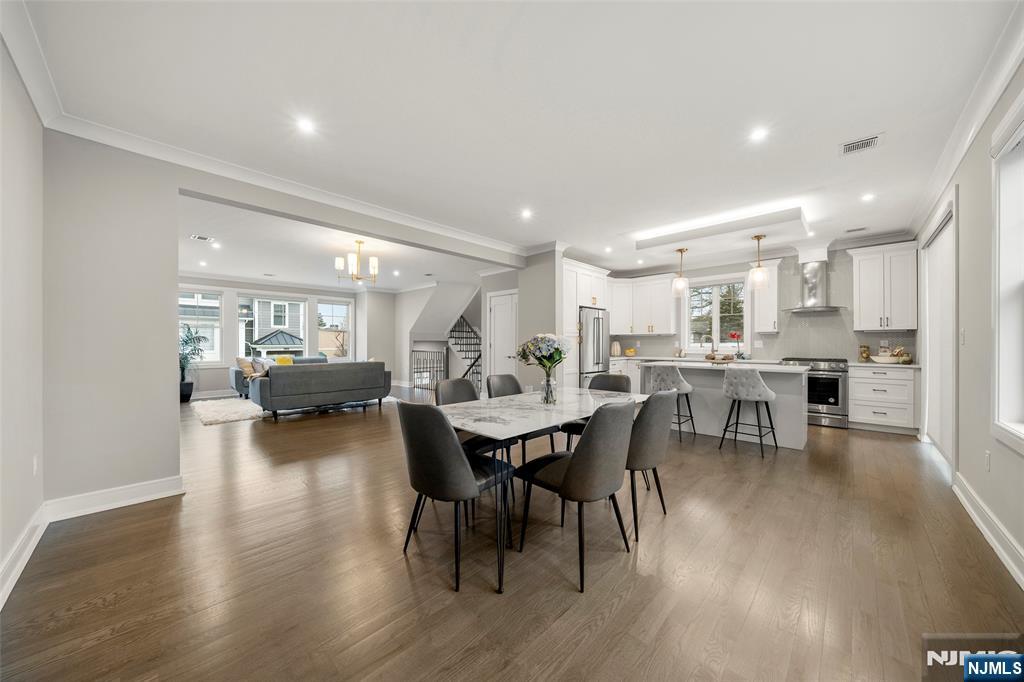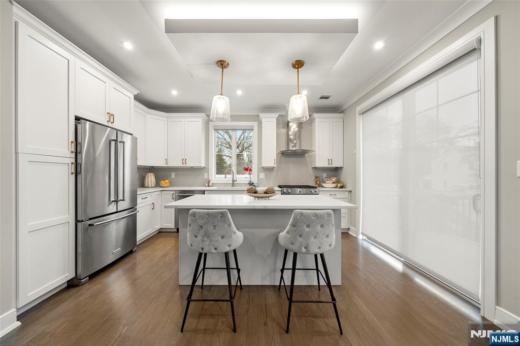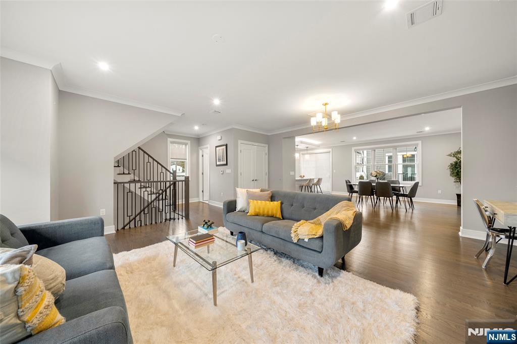 Renowned builder–built luxury townhome, just 3 years young, located in the sought-after town of Cresskill. Offering three levels of modern living space, including a finished ground-level recreation room, with an open and functional layout and upscale finishes throughout. Exterior showcases Hardy plank siding, brick, stone, and standing seam metal roofing. Interior features include a contemporary kitchen with stainless steel appliances, quartz countertops, oversized island, 9-foot ceilings, hardwood floors, spa-like primary bath, two-zone HVAC, central vacuum, and full LED lighting. The home is ready for immediate occupancy and welcomes pets. A two-car garage and two-car driveway complete the property.