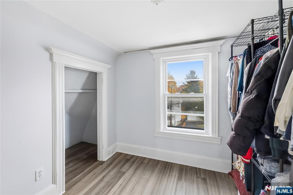 Ditch the car and head downtown. Grab dinner, coffee, shop local, or hop the train to NYC. Westwood living doesn’t get better than this! This three-story 3-bedroom, 2.5-bath home blends classic character with contemporary style. The sun-filled main level features an open living and dining area with gleaming hardwood floors, oversized windows, and plenty of room to entertain. The updated kitchen has clean lines, modern cabinetry, quartz counters, and a bold blue back door that leads directly to your deck for effortless indoor/outdoor living. The convenience continues with main-level laundry (a total game-changer). On the second level, you’ll find two comfortable bedrooms and a stunning five-piece hall bathroom. Think spa vibes: large glass-enclosed shower, double vanity, and a deep soaking tub perfectly positioned near a sunny window! Go ahead, picture yourself relaxing there. On the third level you have another bedroom with en suite half bath, office space, and large storage area. Need more room? The unfinished basement offers great storage or future expansion potential. Outside, the fully fenced large backyard is where this home really flexes. There’s room for everyone and a deck that's ready for summer! The 2 Car detached garage adding extra storage or workshop potential, is being sold AS IS.