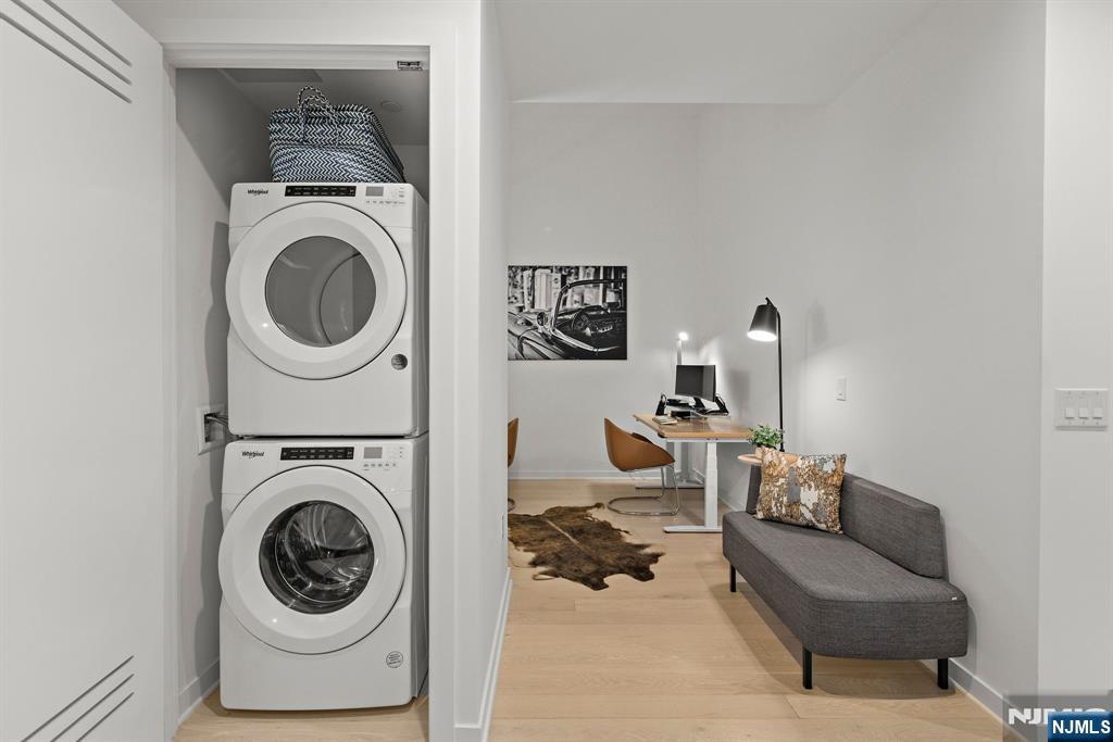 Residence 808 at 155 Bay Street is a 1-of-1 floor plan offering the finest downtown Jersey City has to offer just moments to the Grove Street PATH! Impeccably maintained, offering 2 bedrooms + den and 2.5 baths, and a rare value-add: two EV garage parking spaces plus a private storage unit. Ideally positioned within the community in a private hall near the building’s pool, fitness center, and co-working space, this residence pairs minimalist design with elevated lifestyle - soaring 13ft ceilings, both bedrooms with en-suite bathrooms and walk-in closets, abundant kitchen space and storage plus den/office roomy enough for two. Enjoy resort-style amenities, including the 34th floor Sky Lounge and rooftop terrace with breathtaking NYC and Statue of Liberty views, 24/7 attended lobby, grills, fire pit, children’s playroom, arcade-style game room, pet spa, dog run and more! Set in the Powerhouse Arts District surrounded by Jersey City’s best dining, shopping, and waterfront parks, offering a seamless NYC commute and access to all major highways. A standout in one of JC’s most sought-after addresses.