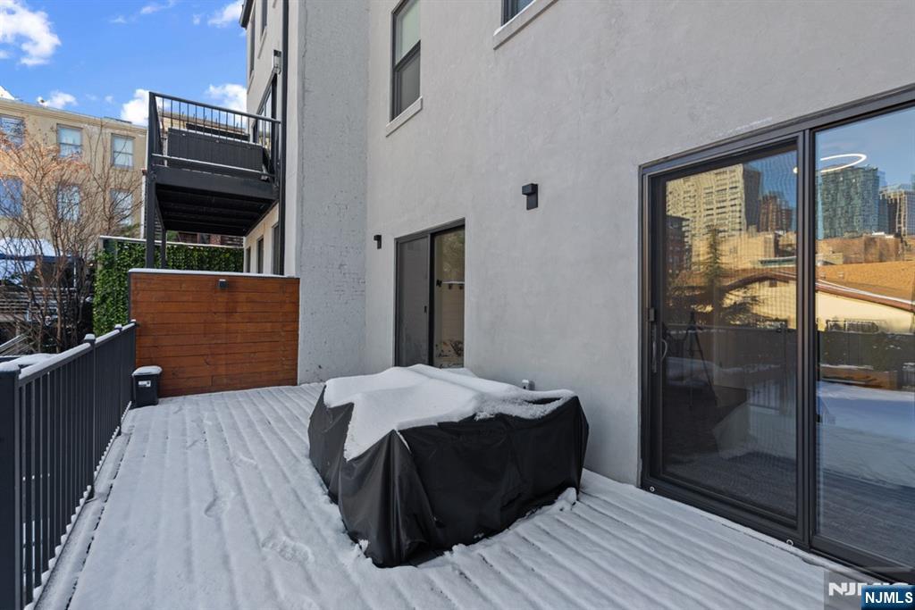 Experience refined urban living in this exceptional condo duplex offering seamless indoor–outdoor flow and a private, expansive backyard retreat. Both levels provide direct access to the outdoors, with an all-weather Trex deck off the main floor leading down to the beautifully landscaped yard—perfect for entertaining or quiet relaxation. The sun-filled, south-facing layout features high ceilings, hardwood flooring throughout, and smart lighting for modern convenience. The custom kitchen is a standout, appointed with bespoke cabinetry and premium Fisher & Paykel and Bosch appliances. Comfort meets efficiency with Navien high-efficiency, gas-powered tankless water heaters, while a video front-door security system adds peace of mind. The lower level is ideal for visiting family and friends, offering a private, flexible living area with direct ground-level access to the backyard—perfect for entertaining while maintaining separation from the main living space. Thoughtfully designed custom storage is integrated throughout the home to maximize functionality without sacrificing style. Located in an incredible neighborhood just moments from the Grove Street PATH and all the dining, shopping, and culture downtown has to offer, this duplex delivers the rare combination of privacy, luxury, and unbeatable convenience.