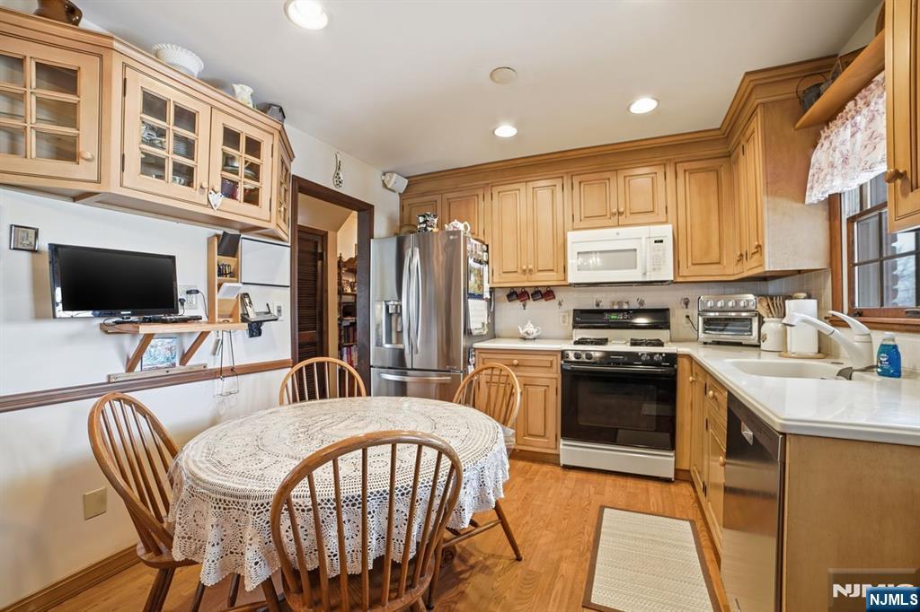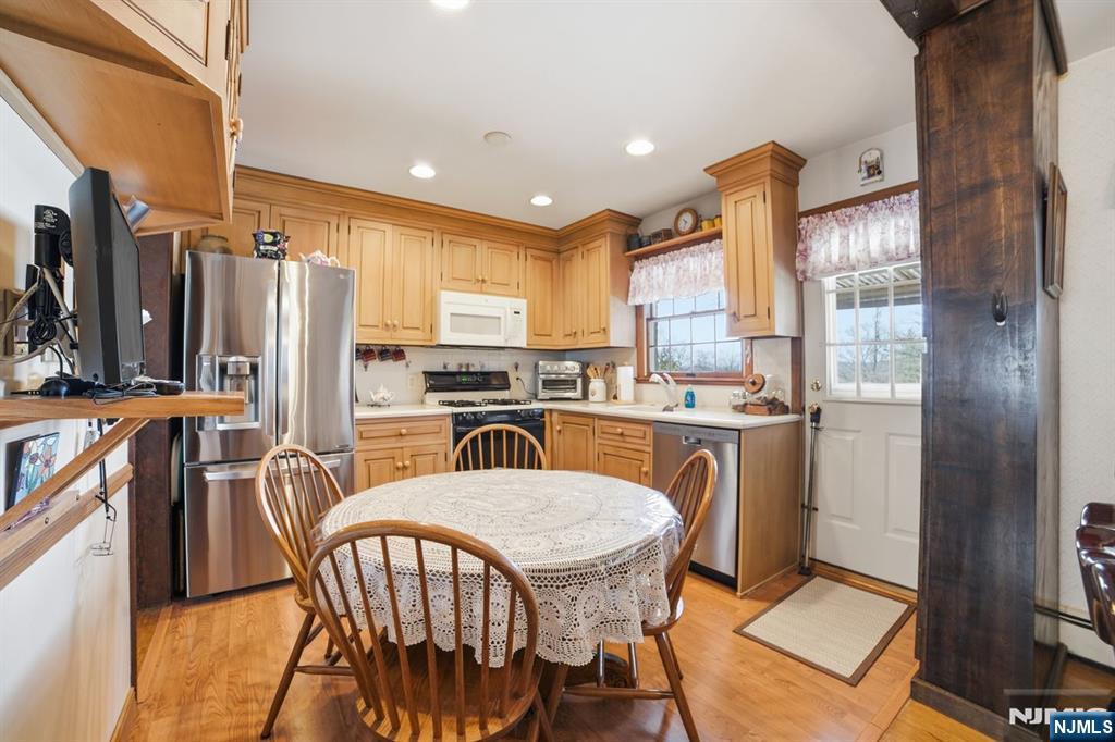 Welcome to this beautifully maintained and versatile home located on a quiet residential street in desirable Oakland. This home offers the rare opportunity of a legal two-family property currently being enjoyed as a spacious single-family home, providing flexibility for a variety of living arrangements or potential rental income. This move-in ready home features 5 bedrooms and 2.5 bathrooms with gleaming hardwood floors throughout and an ideal layout for comfortable everyday living. The main level offers 3 generous bedrooms, a full bathroom, and a beautifully maintained kitchen & dining room with direct access to the deck perfect for outdoor dining and entertaining. The second floor functions as its own private living space with two bedrooms, a full bathroom, a kitchen, and a bright living room, offering excellent flexibility for guests, private living space, or potential rental use.. The finished walk-out basement adds even more functional space and includes a half bath, laundry area, and direct access to the backyard. Outside, enjoy a long private driveway, a 2-car attached garage, and a rare two-story detached garage in the rear perfect for car enthusiasts, hobbyists, or storage. The backyard is an entertainer's dream featuring a fully fenced-in in-ground pool, offering privacy and space to relax all summer long. Combining flexibility, space, and excellent condition, this unique property offers endless possibilities in one of Bergen County's most sought-after communities.