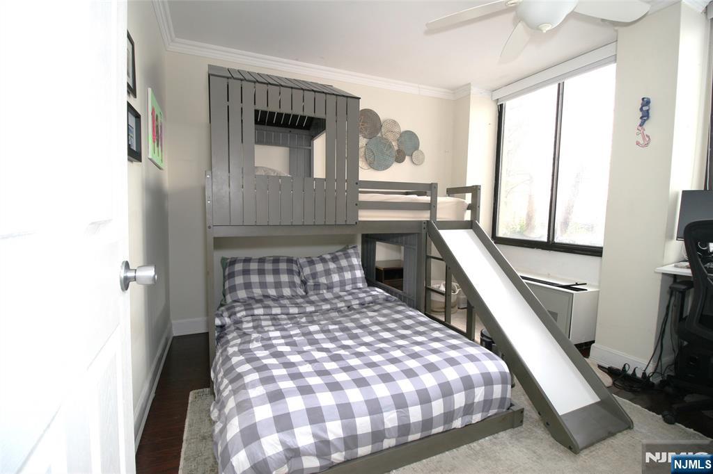 Experience luxury living in the desirable Winston Towers community with this immaculate 3-bedroom, 2-bath residence. The bright and inviting living area features an updated kitchen with granite countertops and stainless steel appliances, complemented by gleaming hardwood floors and elegant crown molding throughout. Enjoy the bonus of an enclosed terrace with tile flooring, perfect for relaxing or entertaining. The spacious primary bedroom offers abundant natural light, a large walk-in closet with custom organizers, and a private en-suite bath. Two additional bedrooms also feature hardwood flooring and generous closet space. Easy access to NYC via bus service and the NYC Waterways Ferry, located just outside your door, adds exceptional convenience for commuters.