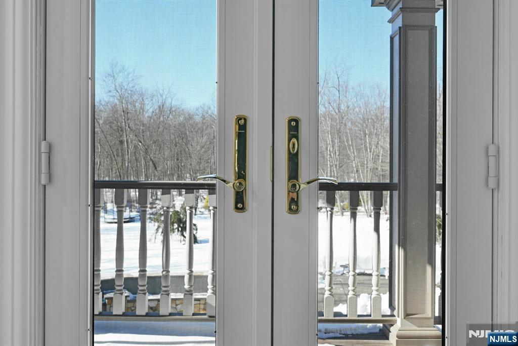 Great location! Welcome to this beautiful over 4800sf custom colonial on .96 acres which is backed by an additional 1.6 acre private wooded lot. (Saddle River-See notes below) A welcoming lemonade wrap around porch w/ gazebo opens to the foyer which is flanked by a cozy living room and spacious dining room. Oak flooring in both rooms. The kitchen flows seamlessly into the sun-filled great room with Australian cypress flooring and large windows. There is a 1st floor Bedroom/Office with mahogany flooring and a full bath. Also on the main floor is a powder room, Mud room, which leads to a 4 car heated garage with 10 ft ceilings and no columns. Two staircases take you to the 2nd floor which offers 4 bedrooms, 2 full baths, and a primary ensuite with 2 large dressing rooms and walk out balcony. Laundry is also on the 2nd floor. Lowe level features office, full bath, large entertainment room with built in bar, exercise rm. Double doors exit to lower patio. An upper patio features a full outdoor kitchen, and freestanding bar with full electric. There are 3 rear door entrances to the patios. Radiant heat in the Great Room, kitchen and all the bathrooms. The circular driveway is new asphalt with Belgian block. A large pond with 3 waterfalls offers complete privacy for the front of the house. Yard is custom landscaped. ***Rear lot in Saddle River, taxes $1772.28, included. Block 1202/Lot 13, which is only accessed via WCL side is included in the Sale.