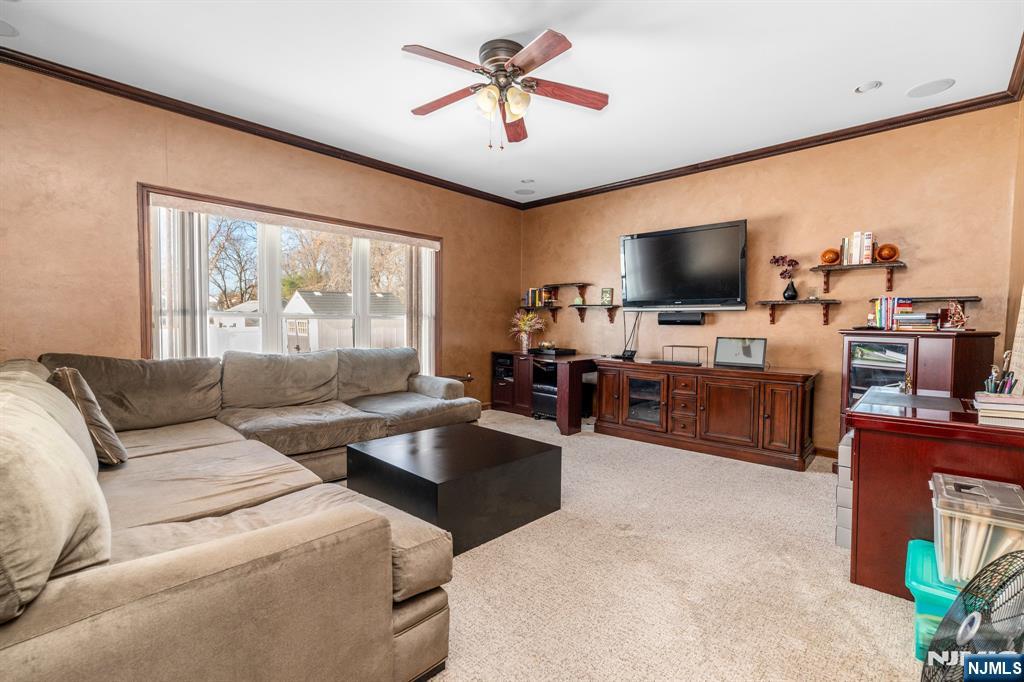 Custom-built 2009 Colonial featuring quality construction, soaring ceilings, and a spacious, well-designed layout. This 5-bedroom, 3.5-bath home is conveniently located near NYC transportation and major highways, offering both comfort and accessibility. Upon entry, you’re immediately greeted by exceptional attention to detail, appliances, premium materials, and modern systems throughout. The welcoming entrance hall leads to a large living room, formal dining room, and an expansive, modern eat-in kitchen. Sliding glass doors open to a huge partially covered deck with kitchen.  perfect for entertaining or relaxing outdoors. The main level also features a generously sized den/family room, powder room, and direct access to an oversized two-car garage. The second floor offers three well-proportioned bedrooms, a full bath, and a convenient laundry room. The spacious primary suite includes a walk-in closet and a private full bath. The fully finished basement is designed for entertainment and recreation, featuring a home theater area, a large bedroom with proper egress, and a full bathroomâ€â€ideal for guests or extended living. This unique home is truly move-in ready and waiting for its next owner to enjoy.