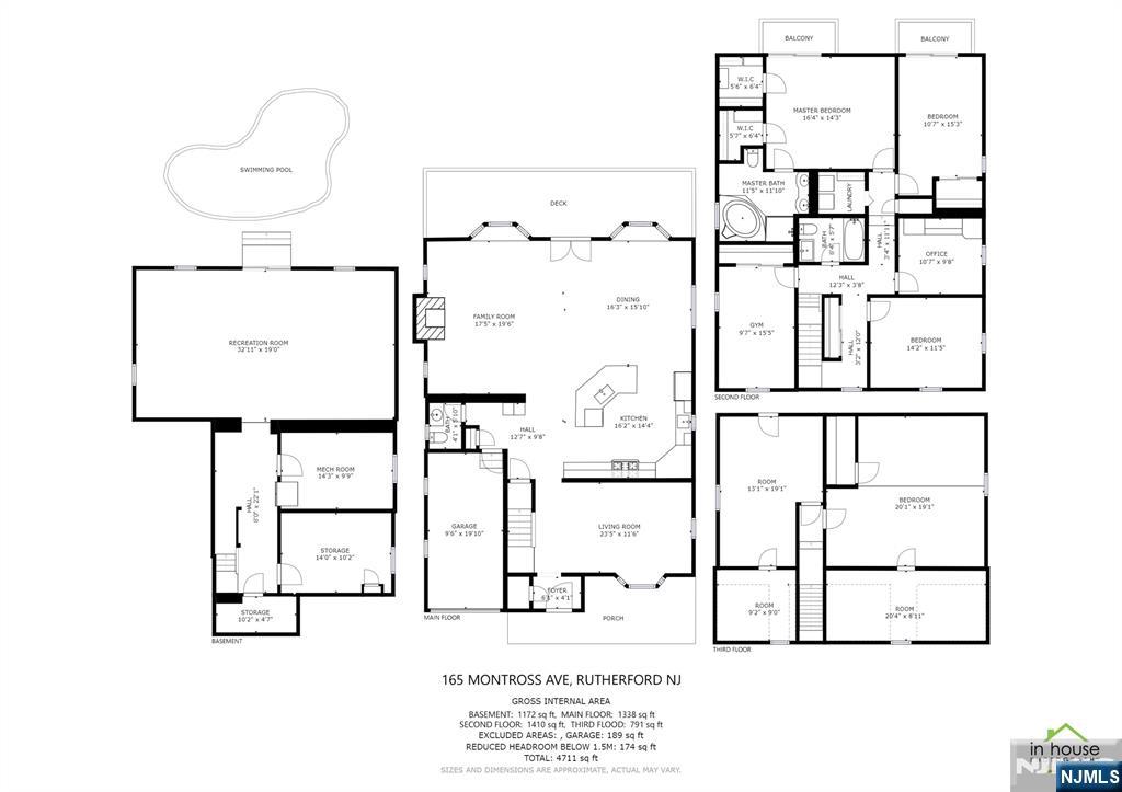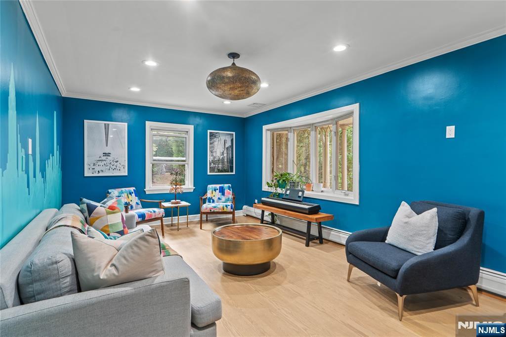 Prepare to be wowed by this stunning 6-bedroom residence in Rutherford, perfectly situated to blend modern luxury with a resort-style retreat. This home has been transformed with a completely renovated first floor that exudes sophistication. Step inside to find beautiful new hardwood floors sweeping through the open-concept living space. The centerpiece is a chef’s kitchen featuring custom cabinetry and top-of-the-line stainless steel appliances, including a professional Wolf stove and oven. Gather in the living area around the beautiful fireplace, framed by a striking custom accent wall, or refresh in the stylishly updated powder room. The luxury extends to the upper levels, offering six spacious bedrooms, including a primary suite with a steam shower and Jacuzzi tub. The finished basement adds incredible value with a home theater and surround sound for movie nights. Outside, your private oasis awaits. The backyard is an entertainer's dream, featuring a heated in-ground pool, patio, and bar area designed for summer enjoyment. Located just minutes from the Rutherford train station and bus lines to NYC, this home offers the perfect balance of suburban tranquility and commuter convenience.