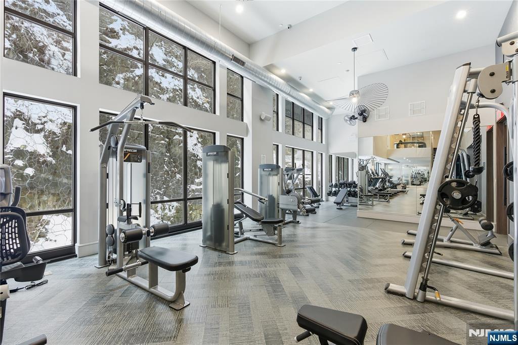 Indulge in unparalleled luxury and breathtaking views at Solaia, where this exquisite 3-bedroom, 3-bathroom condo offers a sophisticated penthouse-style living experience on the 14th floor. Designed for those who appreciate holistic and balanced living, this residence boasts a 55-foot wraparound balcony and dramatic floor-to-ceiling windows, all enhanced by upgraded automatic blinds, providing sweeping vistas of the iconic New York City skyline. The heart of this home is its designer kitchen, a culinary enthusiast's dream, featuring custom Italian cabinetry, SapienStone countertops, a stunning waterfall island, and top-of-the-line luxury appliances. The primary bedroom serves as a serene retreat, complete with a custom closet and a lavish en-suite bathroom adorned with Seedwood tile feature walls, a soaking tub, and premium bidet systems in all bathrooms. Solaia offers an array of wellness-focused amenities across five floors, including a state-of-the-art gym, yoga studio, spa with dry and steam saunas, Himalayan Salt Therapy, a jetted vitality tub, a residents' lounge, and a rooftop deck equipped with BBQs. This is not just a home; it's a lifestyle. Enjoy the convenience of two deeded indoor parking spaces and an unbeatable location with easy access to NYC via ferries from Port Imperial, the Hudson-Bergen Light Rail, and major routes like the George Washington Bridge and Lincoln Tunnel.