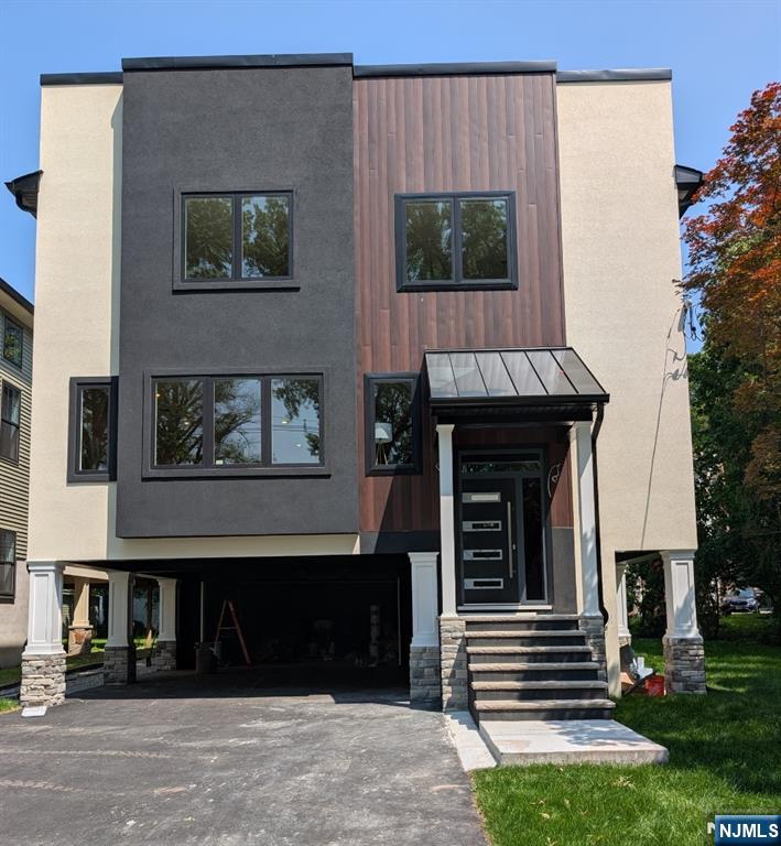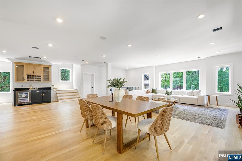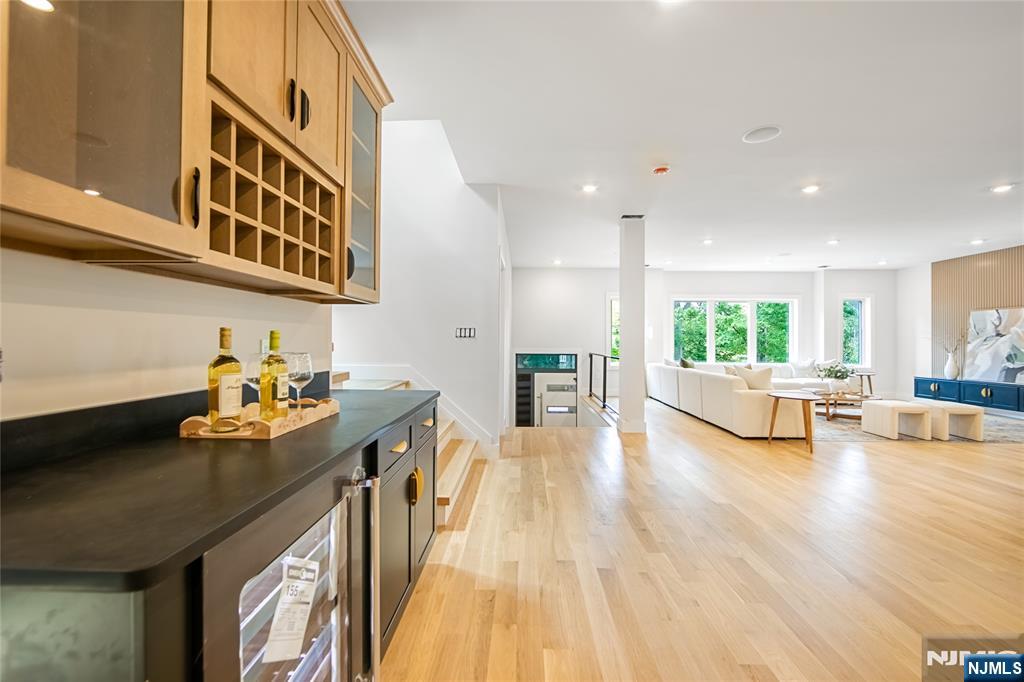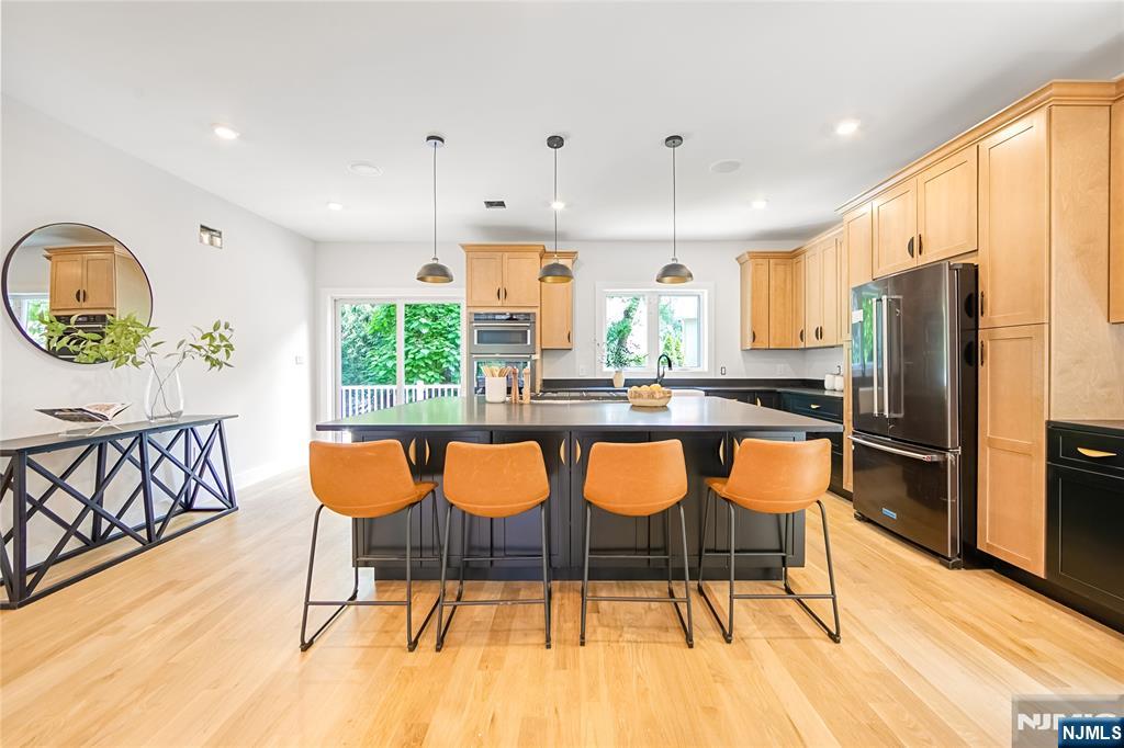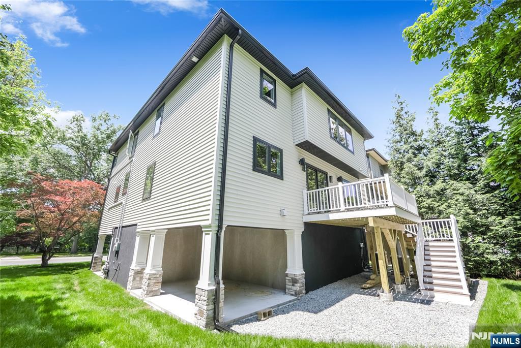 Great opportunity to purchase below market value. Stunning brand-new construction single-family home in the heart of Rutherford with approximately 3,000 sq.ft. of luxury living space, offering 5 spacious bedrooms and 3.5 designer bathrooms. The first floor features a grand living room, formal dining room, and a chef's kitchen with matte black quartz countertops, high-end cabinetry, and premium KitchenAid stainless steel appliances, opening to a rear deck through sliding glass doors. A custom bar area adds the perfect touch for entertaining, and a first-floor master bedroom includes a private full bath. Upstairs, you'll find three generously sized bedrooms with a full bathroom, plus a luxurious master suite with spa-like master bath, his and her walk-in closets, and a dedicated laundry room. The home sits on a large lot with a big backyard and side yard offering scenic river views. The oversized two-car garage is complemented by a driveway with parking for six additional vehicles. It also features a built-in central speaker system throughout the interior and deck area, with waterproof outdoor speakers for seamless audio both indoors and out. This home includes beautiful 4-inch white oak select hardwood floors throughout, designer finishes, and energy-efficient systems, all in a prime location close to top schools, parks, major highways, and NYC transportation. Elevation certificate to avoid flooding.