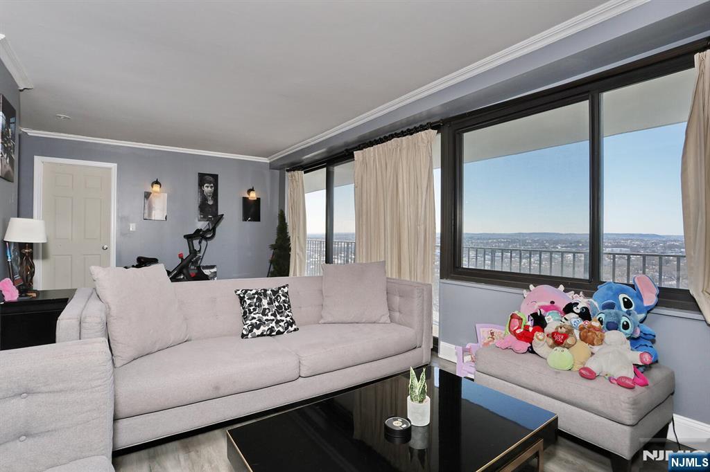 Stunning 18th-floor unit with breathtaking, unobstructed horizon views and spectacular sunsets. This turnkey home features a custom kitchen with floor-to-ceiling cabinetry, granite island, custom flooring, and top-of-the-line built-in appliances including a Viking range. Bright living area with built-in entertainment cabinetry, floor-to-ceiling windows, and oversized sliding doors leading to a private balcony. Updated tile bath. Newer Terrace windows. Building updated all terraces. Two deeded indoor parking spaces (#27 & #129), laundry on floor, saltwater pool, and NYC bus service at the door. Owner-occupied for two years prior to rental eligibility.