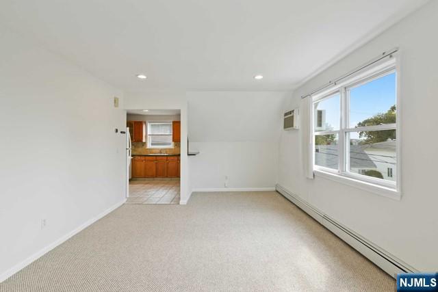 Recently updated 2 bedroom 1 bath in Hasbrouck Heights. This second floor apartment has newer carpet/paint, recessed lighting, updated bathroom with new marble counter, full kitchen with dishwasher, laundry on the ground floor, and includes 1 car garage with 1 parking spot in the driveway. It is commuter friendly with bus at the end of the street and close distance to Wesmont Train Station. Laundry in basement. Beautiful sunset views make this a must see! Tenant is responsible for electric and gas (separate utilities). Baseboard gas heat and wall AC. 1st month rent and 1.5 month security due at signing. No application fee. NO PETS.