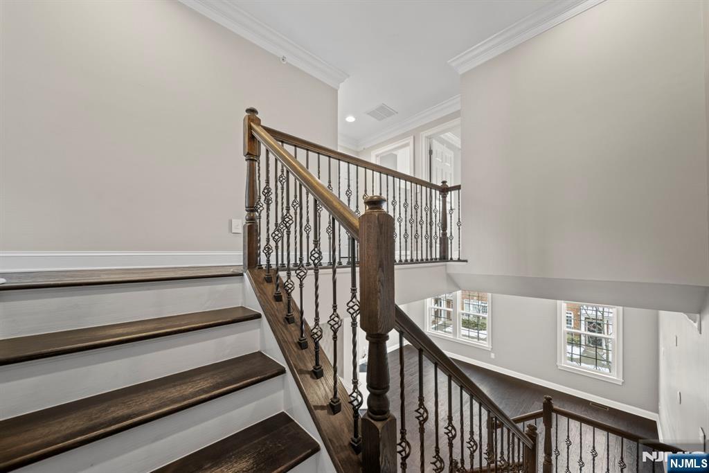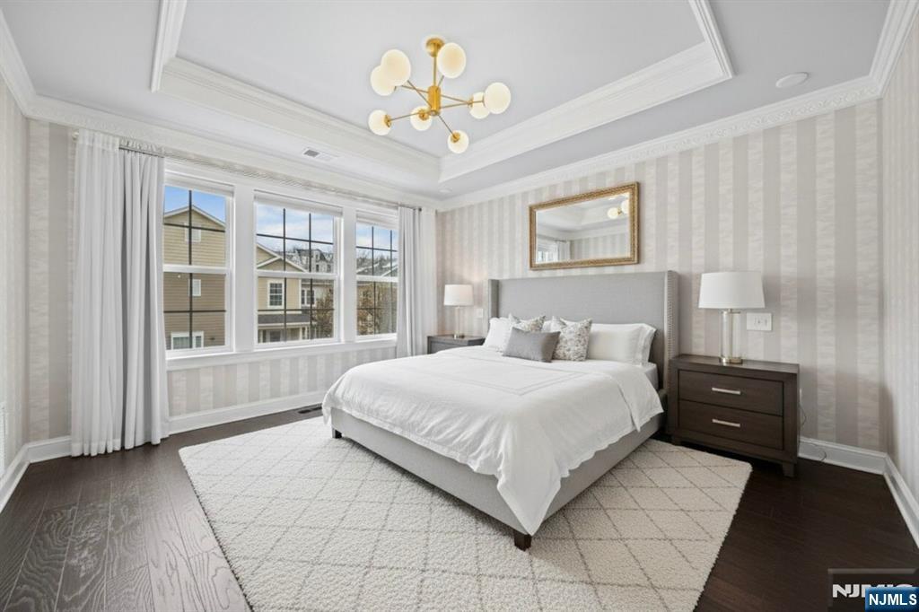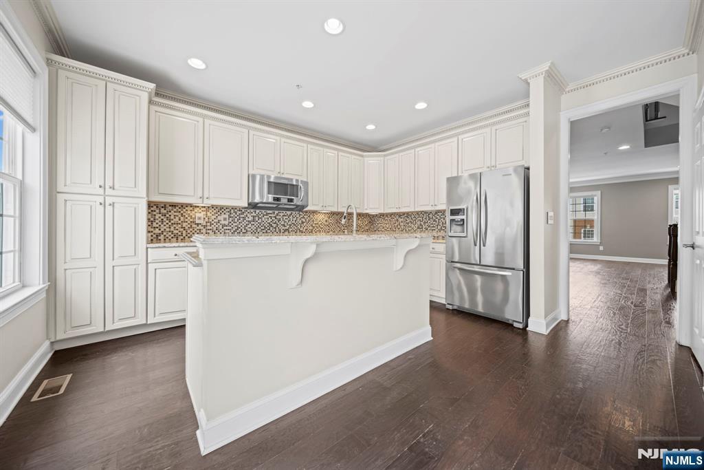 Call Mital Kataria @ 732.789.0670 to schedule a tour. Experience a convenient lifestyle at one of the most sought after communities in Bergen county. Step into your beautiful NORTH WEST FACING townhme w/ over 2000 sq ft to experience a bright & spacious interior. The home is tastefully upgraded on all levels featuring 4 generous size bedrms, 2.5 baths with 2 car garage + 2 car driveway parking. The 1st floor welcomes you with a spacious entry foyer and a generously sized bedroom, storage space with sink & direct access to the attached garage & private driveway. The 2nd floor showcases a stunning oversized kitchen featuring a large center island, dedicated eat-in dining space, pantry, modern upgraded cabinetry, and premium KitchenAid gourmet appliances. Step out onto the expansive deck — perfect for entertaining or enjoying outdoor relaxation. This level also offers a convenient powder room, a formal dining area & a spacious living room complete with a fireplace, creating the perfect setting for cozy evenings. Head upstairs to huge Master bedrm which offers huge BUILT-In walk-in closet. Master bath offers dual vanity, standing shower & JACUZZI. Spacious 3rd & 4th bedrms w/ guest bath completes this level. Conveniently Located From NJ Transit Train & Bus Stops. Bonus Features: Brand new AC unit, built in ceiling speakers, under cabinet light, SS farm sink, wooden flooring throughout, smart doorbell, smart lock & 2 zone thermostats & much more