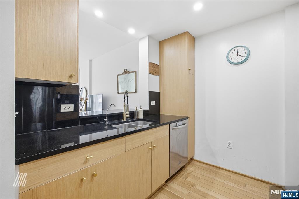 Discover refined urban living in this sun-drenched one-bedroom, one-bathroom residence at City Place, where contemporary elegance meets unparalleled convenience. Bathed in natural light, this thoughtfully designed home features gleaming hardwood floors throughout & an open-concept layout that seamlessly connects living & dining spaces. The modern kitchen boasts sleek light wood cabinetry, polished granite countertops, and stainless steel appliances, perfect for both everyday living & entertaining. The generous living area opens to a private balcony with expansive skyline views-an idyllic setting for morning coffee or evening relaxation. The serene bedroom provides ample space and natural light, complemented by generous closet storage. The updated bathroom showcases contemporary finishes with modern tilework and fixtures. Additional conveniences include in-unit washer/dryer and two coveted parking spaces. City Place residents enjoy ground-floor retail including dining and services, creating a true live-work-play environment. Located in the heart of Edgewater's vibrant waterfront community, you're moments from premier shopping at The Shops at Riverside and River Road's renowned dining scene. Commuters will appreciate effortless access to NYC via nearby ferry service, express buses, and major highways, making Manhattan just minutes away. Experience the perfect balance of sophisticated suburban living with big-city accessibility at one of Bergen County's most desirable addresses.