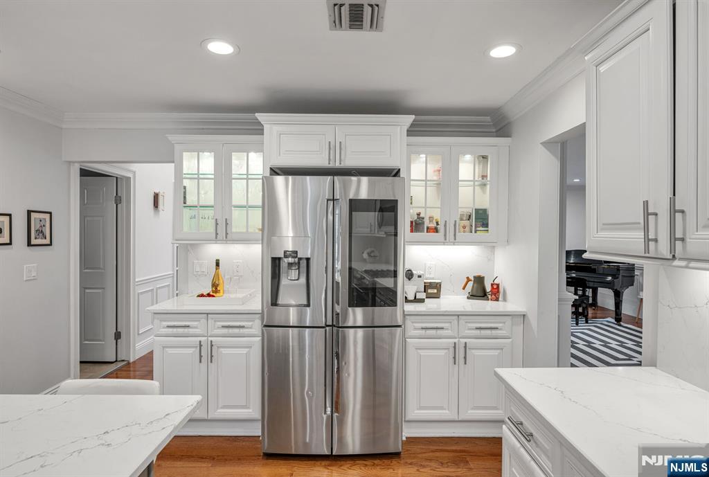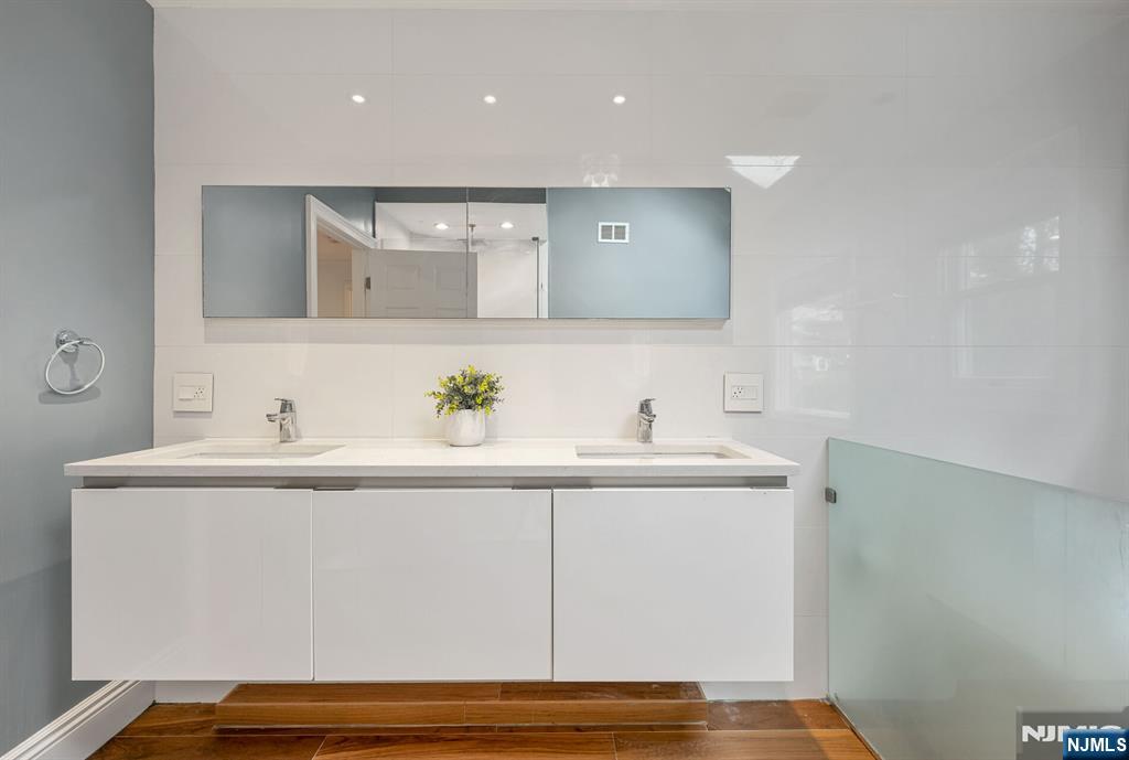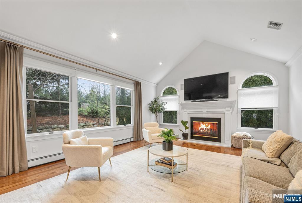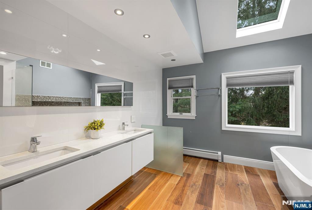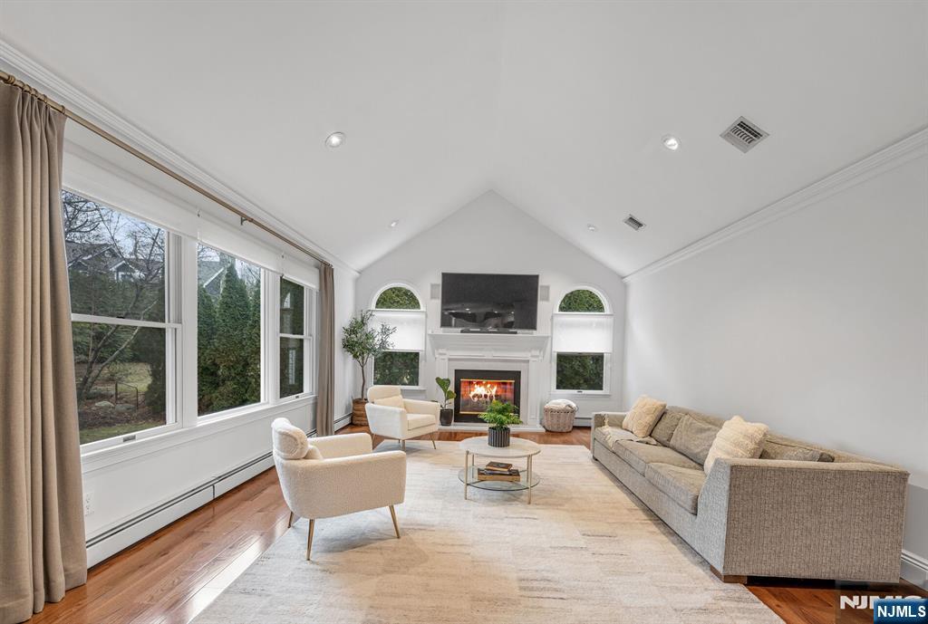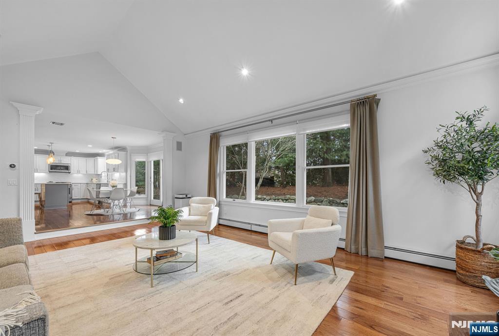 Gorgeous, fully renovated Colonial set on a prime cul-de-sac location close to transportation, shopping, and everyday conveniences. This move-in-ready home blends timeless elegance w/ modern upgrades & thoughtful design throughout. A welcoming 2-story entry foyer sets the tone. The main level features a private home office, formal living & dining rms accented w/ extensive custom moldings, & a stylish powder rm. The beautifully updated chef’s kitchen boasts quartz countertops, a seated center island, pantry, & premium appliances including Samsung refrigerator, dishwasher, & microwave, plus a GE range & oven. The sunlit breakfast area opens through sliding doors to a paver patio, perfect for indoor/outdoor entertaining. Adjacent is the impressive great rm w/ cathedral ceilings & a wood-burning fireplace. A convenient laundry rm & access to the 2-car garage complete the first floor. The second level features 3 generously sized BRs w/ large closets & built-ins. A hall bath features a double vanity & linen closet. The serene primary suite is a true retreat, featuring a spa-like bath w/ radiant heat, skylight, oversized tiled shower, soaking tub, Porcelanosa double vanity, & a large walk-in closet w/ storage system. The finished lower level expands your living space w/ a recreation room & two versatile bonus rooms, ideal for a gym, playroom, or media space. This exceptional home offers elegance, functionality, & an unbeatable location, an outstanding opportunity in Woodcliff Lake