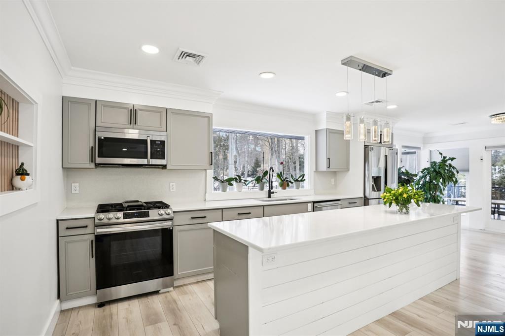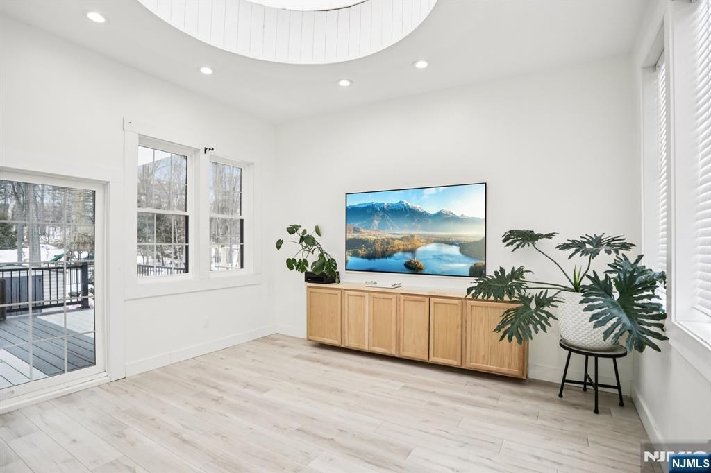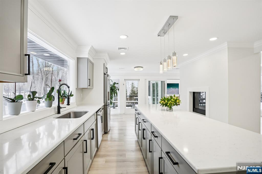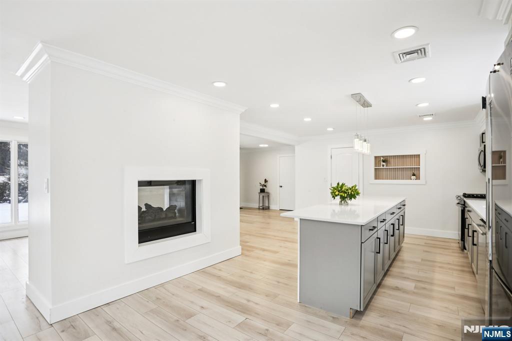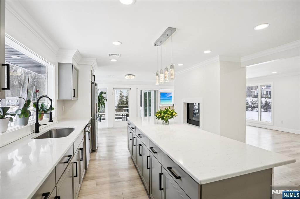 Beautifully renovated, move-in ready 3-bed, 3-bath ranch offering thoughtful design and exceptional indoor-outdoor living. Set among homes of significantly higher value in one of Upper Saddle River’s most desirable areas, with low property taxes. Welcoming foyer featuring a built-in aquarium sets the tone for the home’s unique character. The expansive great room incorporates kitchen, dining, and living areas. This open space centers around a striking double-sided gas fireplace, creating warmth and ambiance throughout. Fully updated kitchen showcases an oversized island with quartz countertops; right off the kitchen is a large walk-in pantry with a second refrigerator and extended counter space. Newly added Family room offers a dramatic round skylight that fills the space with natural light. Adjacent expansive covered new deck overlooks the property. All bathrooms throughout the home have been tastefully renovated with modern finishes. Convenience is elevated with two laundry roomsâ€â€one on each level. The walkout lower level expands the living space with a kitchenette, living room, office, bathroom and storage. Step outside to enjoy a new paver patio, walkways, and a serene pond with a fountainâ€â€your own private retreat. Updates include new roof, gutters, hardie plank siding, stone veneer, windows, new paver & blue stone walkways & retaining walls, new septic (2022), HVAC, major electrical & plumbing upgrades. 25 year warranty on roof & siding included.