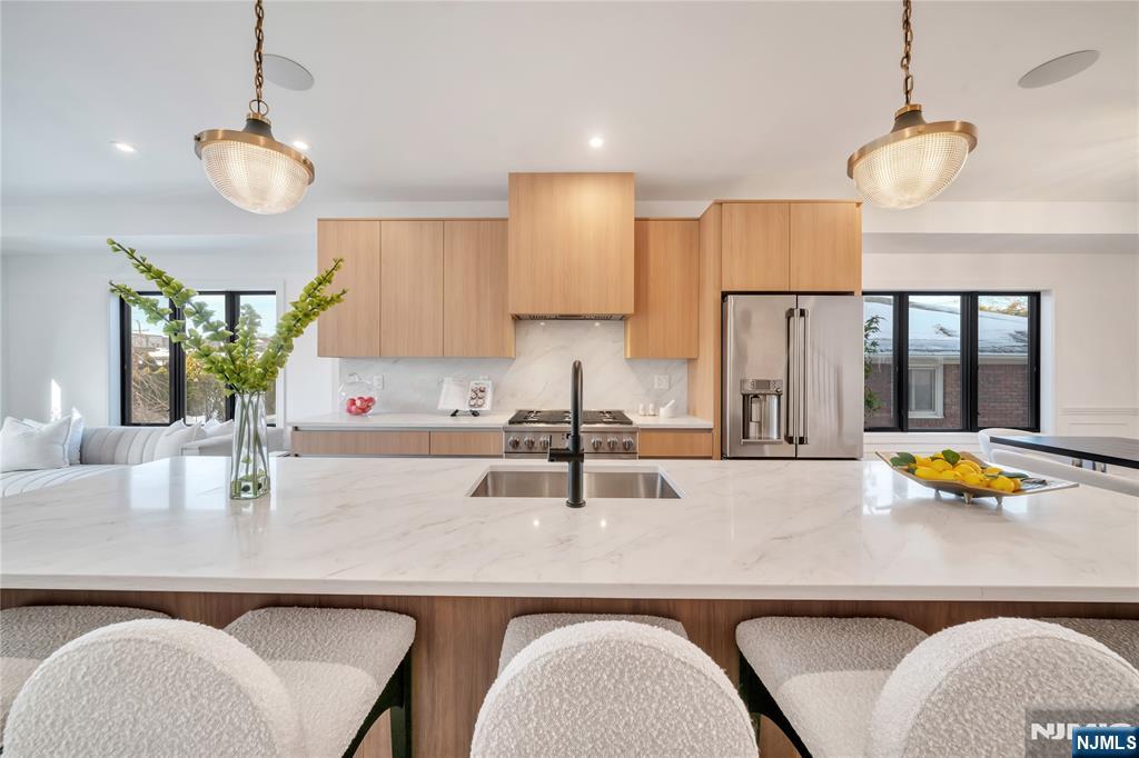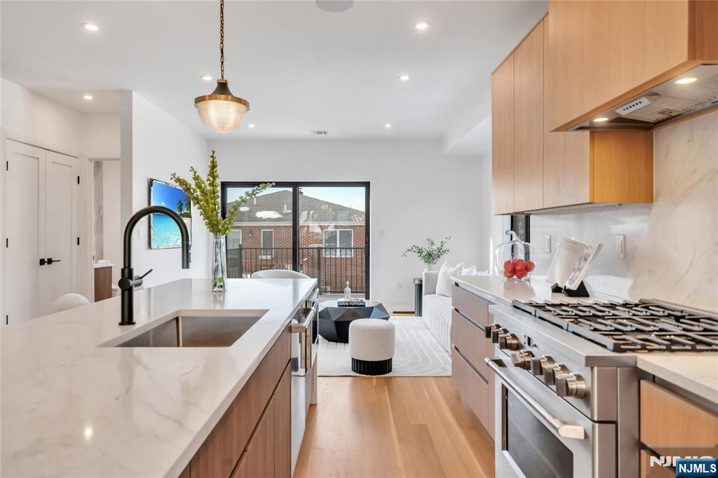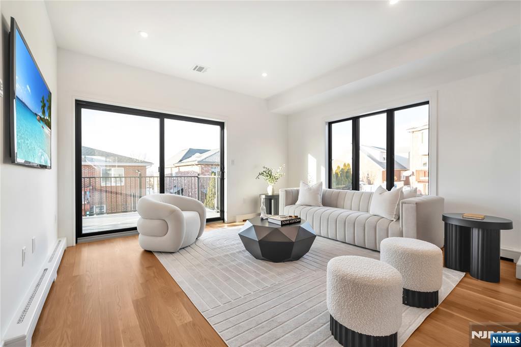 Introducing 267 13th Streetl, a one-of-a-kind, brand new four-story townhome on the border of Palisades Park and Fort Lee. This modern residence offers three levels of living space, plus a rooftop terrace with Meadowlands and sunset views. Main Level features 9' ceilings and open-concept design w a spacious living room w a linear gas fireplace and built-in shelving, dining room, modern kitchen w oversized island, GE Cafe appliances, and under-mount lighting, and family room w sliding doors to private deck. 2nd Floor: Primary bedroom complete w double closets, oversized windows, and spa-like bathroom. Two additional well-sized bedrooms share a hallway bath, offering plenty of space for family or guests. Rooftop Terrace: staircase leads to the rooftop terrace providing a perfect spot for entertaining, enjoying views, or unwinding in privacy. Ground Floor complete w recreation room, office/bdrm, full bath, and side entrance out to the yard.