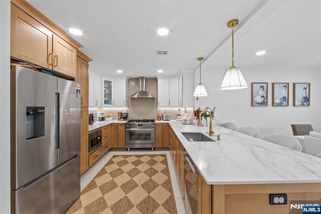 A rare offering... Immaculate, fully renovated 3-bedroom home ideally located close to all schools with easy access to Route 208. Truly one of the best rentals you will see, this exceptional home offers a designer feel with meticulous attention to detail and outstanding use of space throughout. Step inside to a bright, open-concept layout featuring a stunning custom kitchen with quartz countertops, stainless steel appliances, gas range, sleek vent hood, custom cabinetry, under-cabinet lighting, and an oversized center island with seating -perfect for everyday living and entertaining. The seamless flow into the dining area creates a modern, functional space that lives larger than expected. Every inch of this home has been thoughtfully renovated with high-end finishes, recessed lighting, updated flooring, and a clean, contemporary aesthetic. The spacious bedrooms offer comfort and flexibility for today’s lifestyle, whether you need guest space, a home office, or additional room for family. The beautifully updated exterior showcases striking curb appeal with stone accents and a welcoming entry along with ample space for fun in the private yard, along with a park across the Street. Enjoy attached garage. Conveniently located near Fair Lawn schools, major highways, shopping, dining, and commuter routes, this move-in ready home offers the perfect blend of style, comfort, and location. This rental won't last! Showings begin 3/15 -Must see virtual tour