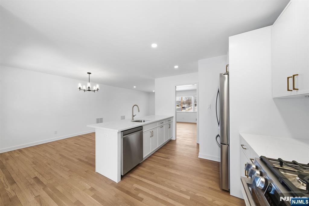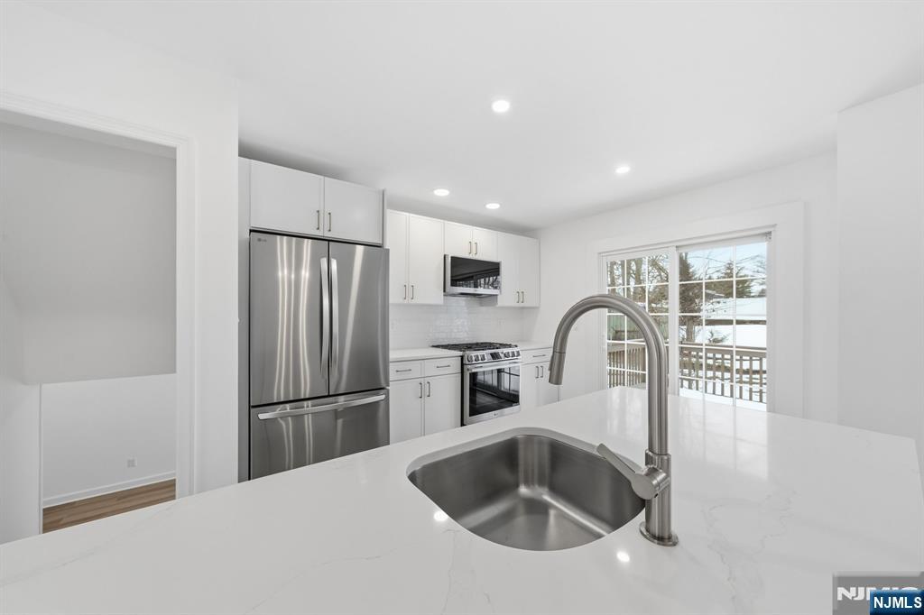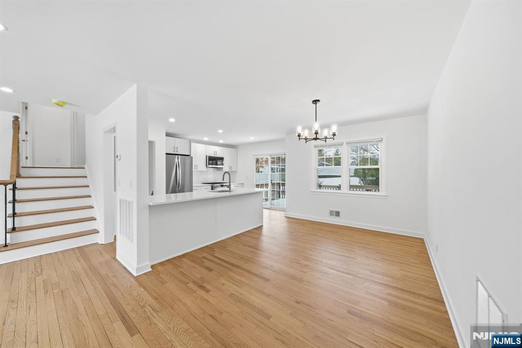 Welcome to this beautifully renovated split-level home offering modern finishes, an inviting entry foyer that leads to a spacious living room and formal dining room, ideal for both comfortable living and elegant entertaining. The modern eat-in kitchen is beautifully appointed with stainless steel appliances and Quartz countertops. Just a few steps down, the inviting family room features sliding doors to the backyard and is complemented by a full bath, offering excellent flexibility for guests or extended living. The finished basement provides valuable additional space for a playroom and Laundry. The second floor offers a generous primary bedroom, two additional bedrooms, and a full bath. Additional highlights include central air, hardwood floors throughout, and a one-car attached garage. Situated in a desirable neighborhood within walking distance to schools, shopping, parks, and NYC transportation. A true move-in-ready home.