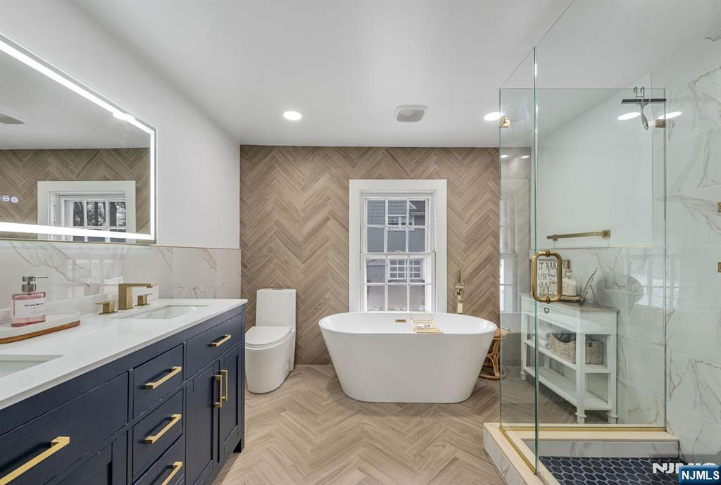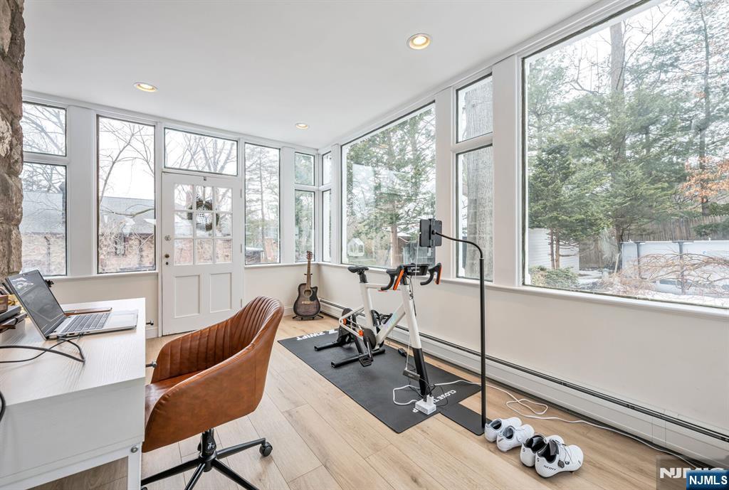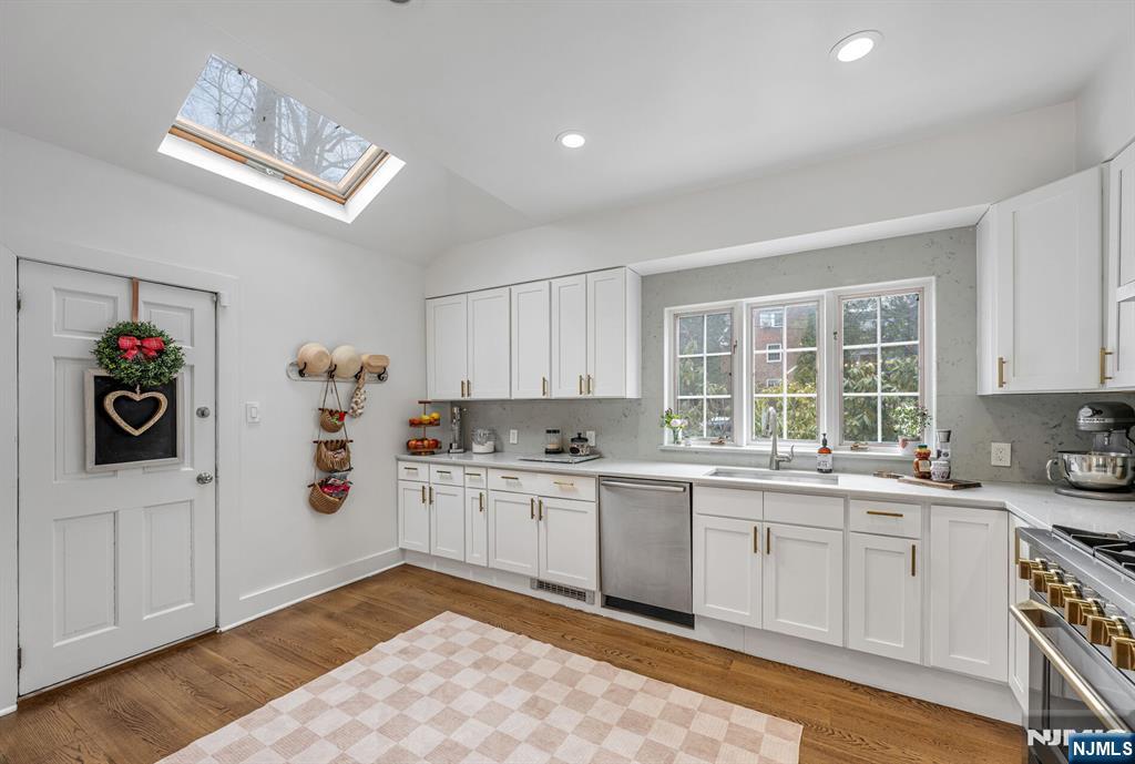 Located on a quiet cul-de-sac in Englewood’s sought-after East Hill neighborhood, this beautifully updated home sits on a 120x139 landscaped lot. Offering approximately 2,200 sq ft, the home features 3 bedrooms, 2 full baths, and 1 half bath. The main level includes a living room with a wood-burning fireplace and custom built-ins, a sun-filled sunroom ideal for an office or gym, an updated kitchen with white cabinetry, stainless steel appliances and a skylight, plus a formal dining room and powder room. Upstairs, the primary suite spans front to back with a renovated bath and a private deck overlooking the backyard. Two additional bedrooms and a full bath complete the second level. Features include two patios, a detached 2-car garage, a large driveway, an unfinished basement, and an attic. Close to downtown Englewood, houses of worship and NYC transportation.
