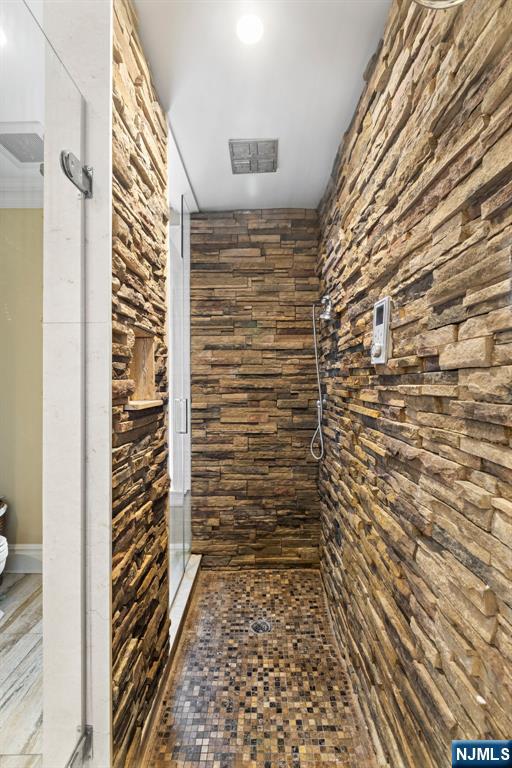 Welcome to this exceptional custom-built estate, completed in 2014 and set on over an acre of meticulously manicured private grounds in one of Montvale’s most desirable settings. A grand circular driveway and impressive three-car attached garage create a striking first impression, while the home offers over 7,600 sq ft of beautifully finished living space across all levels. This remarkable residence features 5 spacious bedrooms and 6 full bathrooms, including rare primary suites on both the main and second levels. Generous bedrooms offer walk-in closets and multiple en-suite baths. A dramatic two-story foyer and soaring great room anchor the main living spaces, complemented by a private cherry-paneled office. The expansive eat-in chef’s kitchen is designed for entertaining with two oversized islands, leather-finished countertops, and seamless flow to living and dining areas, plus a dedicated second-floor laundry room. The fully finished walk-out lower level offers a massive rec room, wet bar, gym, sauna, and full bath. Outdoor living is equally impressive with sweeping views, multiple terraces and balconies, outdoor kitchen, brick oven, lounge area with outdoor TV and heaters, and fire pit. Quality construction includes 4-zone HVAC, full-house generator, radiant heated bathroom floors, smart lighting, speakers and camera systems, irrigation, and more. Exceptional opportunity in a premier Montvale location.