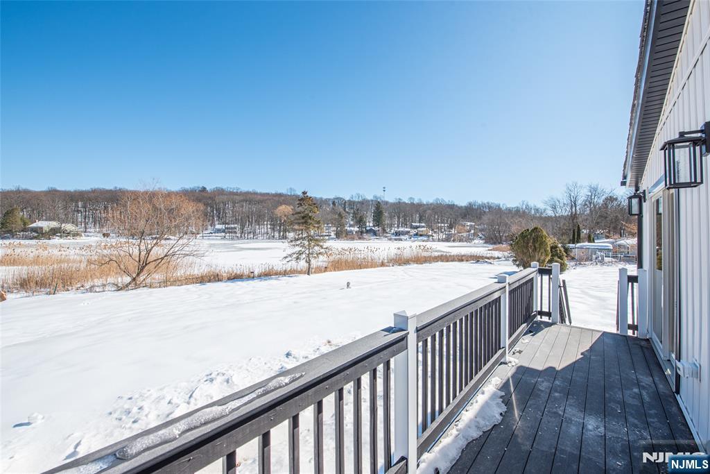 Welcome to this fully renovated lakefront gem in the desirable Mount Glen Lakes section of West Milford. Set on an oversized, level 0.40-acre lot with direct lake frontage and year-round water views, this 3-bedroom, 2-bath ranch offers the perfect blend of modern design and effortless one-level living. Completely redesigned in 2025, every detail has been thoughtfully updated for today’s lifestyle. Step inside to a bright, open living/dining area with beautiful wood floors and abundant natural light. Sliders off the living room lead to a deck overlooking the lake — the perfect place to relax or entertain while enjoying peaceful waterfront scenery in every season. The stunning new kitchen features sleek cabinetry, stylish countertops, and stainless steel appliances, including a gas range. One bedroom features its own private full bath, while two additional bedrooms share a second beautifully renovated bath. A convenient main-floor laundry closet is located in the hallway for easy access. The lower level offers excellent storage space and houses the utilities. With central air, natural gas heat, a blacktop driveway, lake privileges, and turnkey condition throughout, this is true one-level lake living at its finest.
